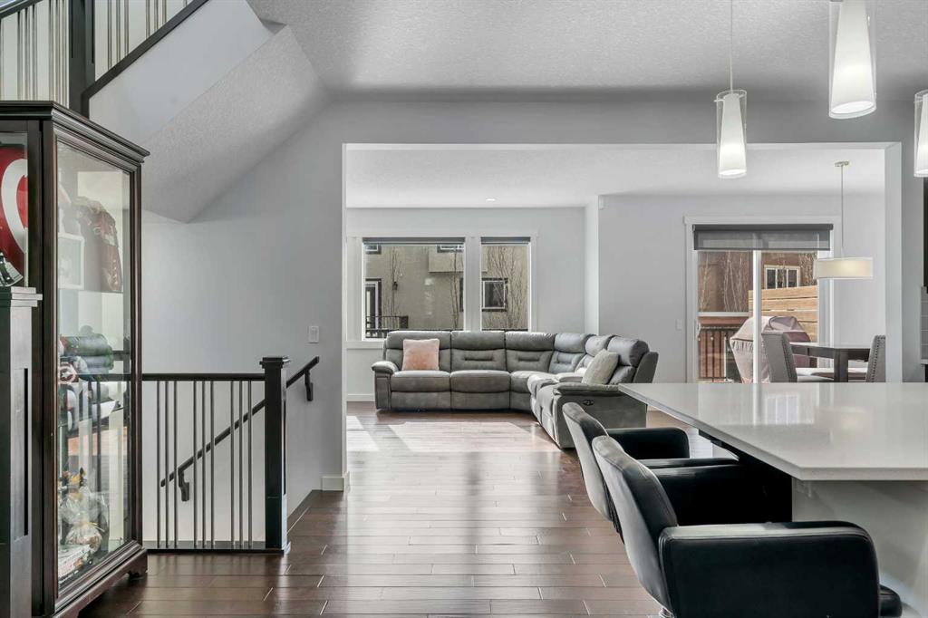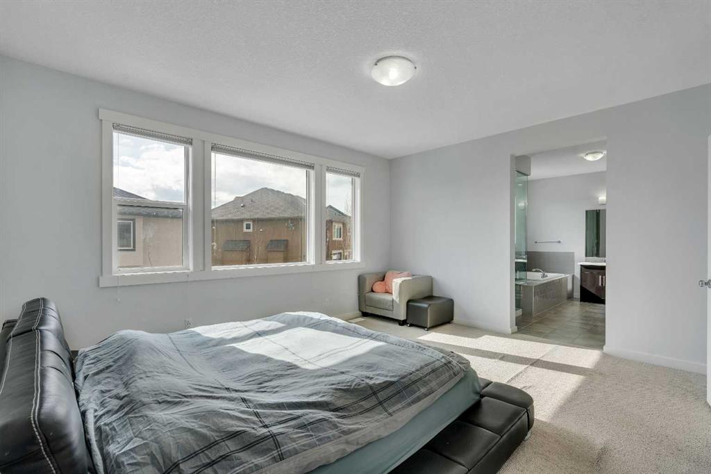 Welcome to an EXCEPTIONAL family home where refined design, thoughtful upgrades & an unbeatable location come together to create a truly elevated living experience. Situated on a quiet, family-friendly street in the sought-after community of Westmere in Chestermere, just steps from the shores of Lake Chestermere, this immaculate residence offers over 3,500 sq ft of beautifully developed living space, 5 bedrooms, 3.5 bathrooms, central air conditioning, and a RARE heated quad attached garage. From the moment you step inside, you’ll appreciate the pride of ownership & attention to detail showcased throughout. Rich hardwood floors, high ceilings, and an abundance of NATURAL LIGHT set the stage for the home’s inviting open-concept layout. Designed with both everyday comfort and entertaining in mind, the main floor seamlessly connects the living room, kitchen, and dining area to create a warm and welcoming gathering space. At the heart of the home is a STUNNING chef-inspired custom kitchen, featuring ceiling-height cabinetry, premium stainless steel appliances, and a large centre island with breakfast bar seating — perfect for morning coffee, casual dining, or hosting friends & family. The adjoining dining area overlooks the beautifully landscaped backyard and EXPANSIVE composite deck, creating a seamless transition between indoor and outdoor living. A stylish powder room, spacious mudroom, and welcoming front foyer complete the main level. Upstairs, the home continues to IMPRESS with a thoughtfully designed upper level highlighted by a spacious bonus room — ideal for movie nights, a kids’ retreat, or a home gym. The LUXURIOUS primary retreat offers a private SANTUARY complete with a generous walk-in closet and a beautifully appointed 5-piece ensuite featuring dual vanities, a spa-inspired soaker tub, and an elegant glass shower. Two additional bedrooms and a well-appointed full bathroom provide plenty of space for a growing family. The fully finished basement expands your living space even further, offering an expansive recreation room, two additional bedrooms, and a modern full bathroom — perfect for guests, teenagers, or extended family. Step outside to your SUNNY south-facing backyard, thoughtfully designed for low-maintenance living and effortless entertaining. The MASSIVE composite deck provides the ideal setting for summer barbecues, outdoor dining, or simply relaxing in the sun, while artificial turf ensures a lush green space without the upkeep. A large storage shed adds additional functionality. Car enthusiasts and hobbyists will appreciate the fully insulated and HEATED quad attached garage, complemented by a spacious concrete driveway offering ample additional parking. Located just a short stroll from Lake Chestermere, parks, schools, shopping, and local dining, this exceptional & rare property offers the perfect balance of lifestyle, luxury, and convenience. Book your PRIVATE TOUR TODAY!!