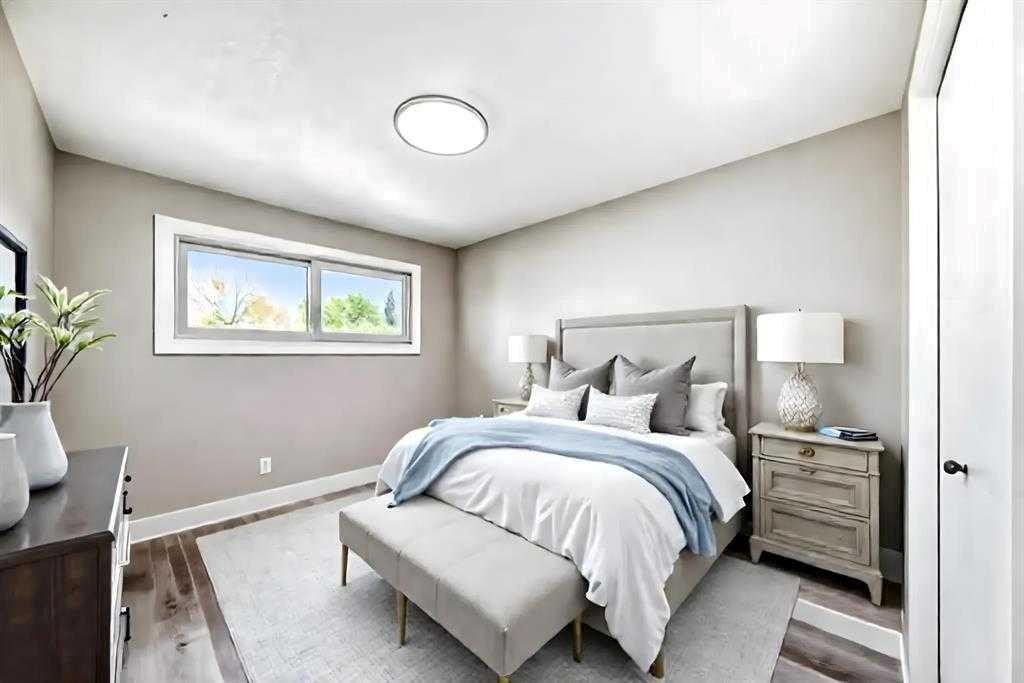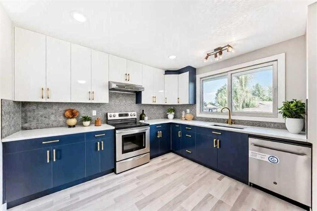 Welcome to 15104 1 Street SE, a beautifully renovated 4 level split in the established lake community of Midnapore, now priced at $669,900. This move in ready home features 5 bedrooms and 2 fully updated bathrooms across four functional levels. The main floor is bright and open with luxury vinyl plank flooring, modern lighting, and a stunning kitchen complete with quartz countertops, high gloss white upper cabinetry, royal blue matte lower cabinets, stainless steel appliances, tiled backsplash, and custom pantry storage. Upstairs you will find three bedrooms including a spacious primary suite with walk in closet and renovated 4 piece bath. The third level offers a large family room with electric fireplace feature wall, a fourth bedroom, and a 3 piece bathroom. The basement includes a fifth bedroom with egress window plus a generous laundry and utility space. Major updates include new triple pane windows, new roof, new eaves and gutters, new doors, fresh interior and exterior paint, updated plumbing, and a high efficiency furnace. Outside, enjoy a landscaped yard, new fencing, a two tier deck, and a brand new double detached garage. Located just a 5 minute walk to Fish Creek Provincial Park, close to schools, shopping, C Train access, and with full lake privileges at Midnapore Lake, this home delivers space, upgrades, and lifestyle in one of Calgary’s most established communities. Call today to book your private showing!