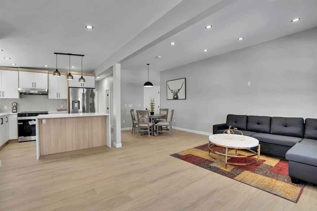 Upon entry, you are welcomed by a spacious foyer leading into a bright and modern open-concept main floor. The upgraded kitchen showcases brand-new stainless steel appliances and a stunning waterfall island, overlooking the spacious living and dining areas—perfect for everyday living and entertaining. Large windows allow an abundance of natural light to fill the space, enhancing the open and airy feel. The main level also offers two generously sized bedrooms, a 4-piece bathroom, and conveniently located laundry, completing this level.
