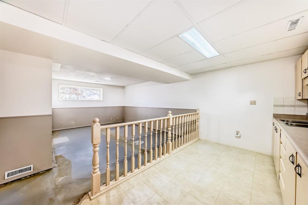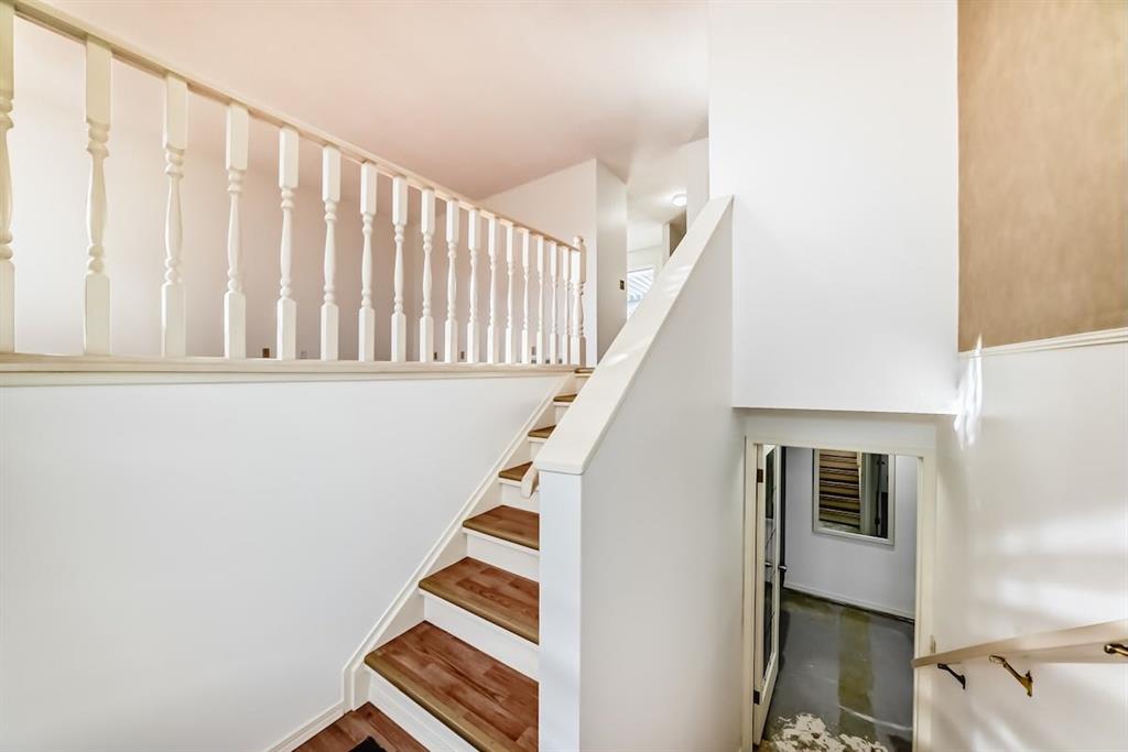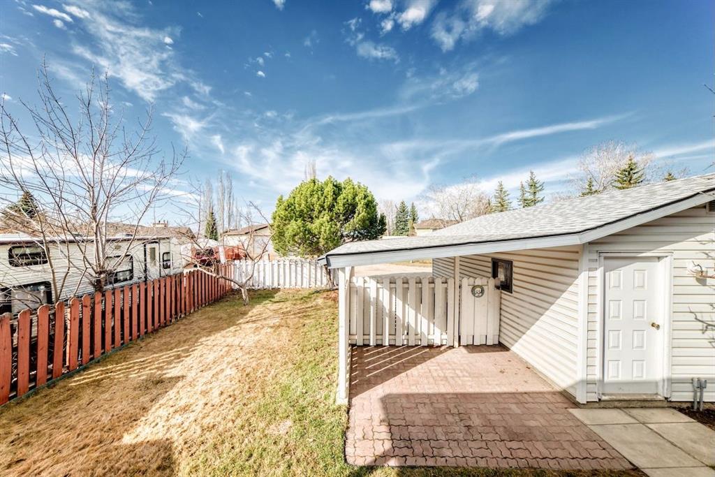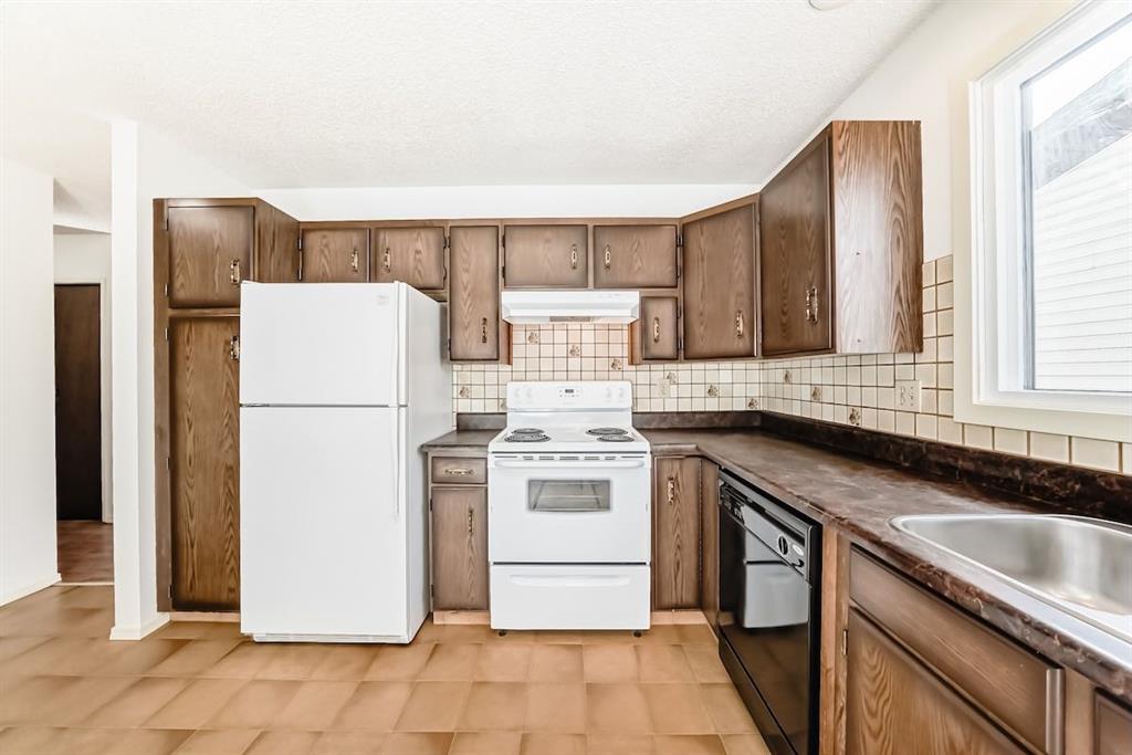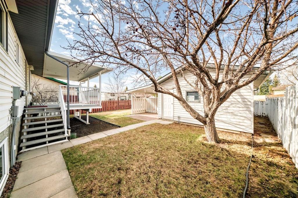 Handyman special in Ranchlands! Beautiful location with large lot within the community with views of the mountains from the back yard and aluminum covered Duradeck . Private back yard with mature trees including double grafted crabapple tree is kitty corner to playground with no neighbours behind. Walk into bright living room with three oversized window overlooking raised front yard. Kitchen has hardwood cabinets with ceramic backsplash. Main floor laundry closet off the kitchen. Tow good sized bedrooms up and one down. Open concept basement with kitchenette. Most windows were replaced in 2021/2022 and shingles were replaced 2021. newer renovated basement bathroom. Good bones with a little elbow grease. New paint and some updates in the home. Carpet has been removed from the basement. Close to schools, pathways and all amenities.