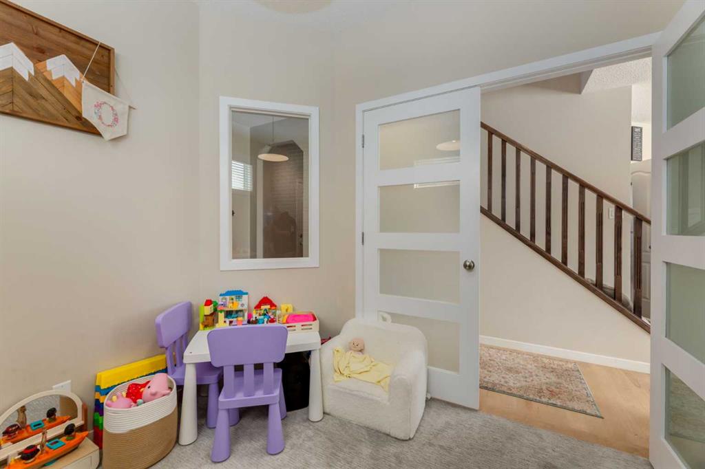 The main floor boasts fantastic flow, anchored by a well-appointed kitchen that truly serves as the heart of the home. Featuring refinished cabinetry (2020), granite countertops, stainless steel appliances, a large centre island with seating, and a convenient walk-through pantry, this space is ideal for both everyday living and entertaining. The kitchen seamlessly opens to the dining area and a spacious, inviting living room complete with a cozy fireplace. A dedicated home office with elegant French doors provides the perfect work-from-home setup, while a 2-piece bathroom and main floor laundry add everyday convenience.