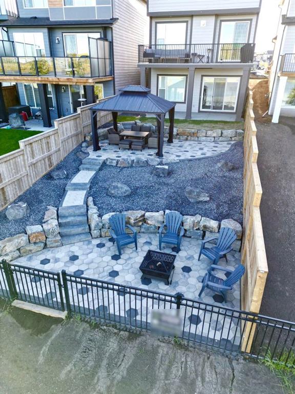 Outdoors, the extensively landscaped tiered backyard is a private oasis, featuring multiple seating areas, brushed concrete steps, unique hexagonal paving stones, and striking rock walls. A full-width balcony enhances your outdoor living experience.