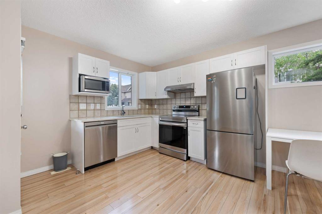 Welcome to this beautifully updated 4-bedroom, 2.5-bath corner-unit townhouse in the family-friendly community of Royal Oak. Offering a smart layout across all three levels, this home provides comfort, convenience, and style in a low-maintenance setting—perfect for families, first-time buyers, or anyone seeking a move-in ready home close to life’s essentials. Step inside to find a bright, open-concept main floor with laminate flooring throughout and a freshly renovated kitchen featuring upgraded cabinetry and stainless steel appliances. The kitchen seamlessly connects to the spacious living and dining areas, creating an inviting space for daily living and entertaining. A convenient 2-piece powder room completes the main floor. Upstairs, you’ll find three generously sized bedrooms, including a sunny primary suite with a large walk-in closet and direct access to a well-appointed 5-piece bath. This bathroom is cleverly designed with dual access—ensuring privacy for the primary suite while remaining easily accessible to the other two bedrooms via the main hallway. The fully finished basement extends your living space with a fourth bedroom, complete with a private 4-piece ensuite—ideal for guests, teens, or a home office—plus plenty of storage for seasonal items or hobbies. Enjoy outdoor time on your private patio that backs onto a quiet, shared green space—without the hassle of yardwork, as landscaping is professionally maintained. The shared driveway leads to your single attached garage, and visitor parking is conveniently nearby. Located close to everything you need—schools, playgrounds, Royal Oak Shopping Centre, the YMCA, LRT station, bus lines, and major routes—this home offers a balanced lifestyle with unbeatable convenience. Don’t miss your opportunity to own a spacious, well-kept home in one of NW Calgary’s most desirable neighbourhoods!