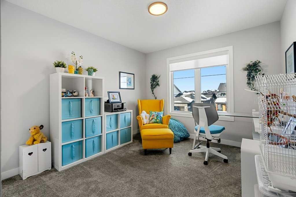 The professionally developed basement by the builder offers 9’ ceilings, a spacious recreation room, rough-in speakers, a bedroom currently used as a studio, storage under the stairs, and a rough-in for a future bathroom. The utility room includes a wash basin, HRV, sump pump, Kinetico water softener, high-efficiency dual-zone furnace, and ample storage.