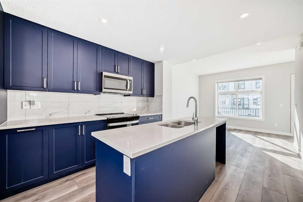 LIKE NEW but NO GST! Front GARAGE with developed OFFICE at the back and ground level WALKOUT to fenced ‘no maintenance’ patio/ back yard. IDEAL FOR INDEPENDENT SINGLES (2 Ensuites). Lovely contrasting plank flooring, quartz counter tops, triple glazed windows, ‘ON DEMAND’ hot water, natural gas BBQ hookup and many more extras. Includes all appliances (upgraded fridge and stove) as viewed, including wall SAFE, and convenient CODED front door locking system. Solar panels, R/I for EV, AC, BBQ. North edge location backing onto complex perimeter fencing and 2 doors down from GUEST parking. Includes access to fitness center in the apartment block. A Jayman project at its finest. NOTE: Townhome has front and back walk-in doors with ground floor OFFICE.. Handy to Quarry Park and is part of the established Douglas Dale community. NEW condition yet no GST on purchase. To view is to buy!!! NOT MUCH MORE THAN THE PRICE OF AN APARTMENT. OPEN HOUSE SUNDAY OCT 26 (2-4 pm). COME SEE THE LOWEST PRICED TOWNHOME IN THE COMPLEX.