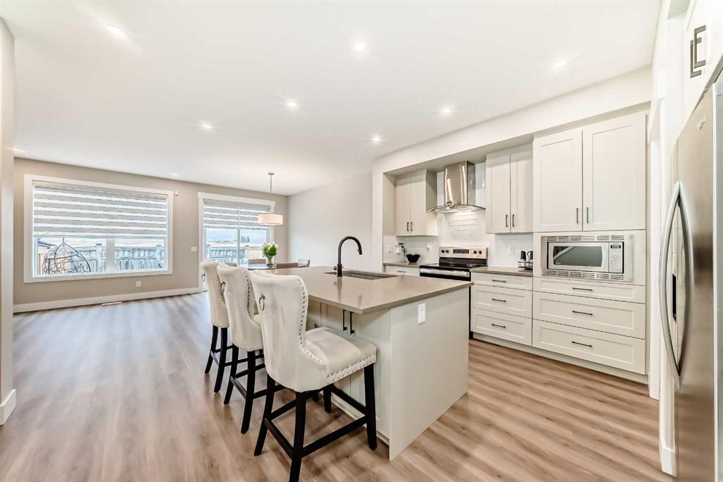 Beautifully crafted by Hopewell, this Mahogany home shows pride of ownership throughout. A custom front addition welcomes you with natural light and an extended foyer. Inside, enjoy soft tones, soaring ceilings, and an open layout. The chef’s kitchen features quartz counters, a large island, with a deep undermount sink, Whirlpool appliances, and a walk-in pantry. Step outside to a multi-tier composite deck, low-maintenance artificial turf, and an open field view. Upstairs offers a bright bonus room and 3 bedrooms, 2 full bathrooms with California style closets. The basement, with 1 bed and full bath adds exceptional quality living space. Central Air Conditioning. Move-in ready in Calgary’s premier lake community!