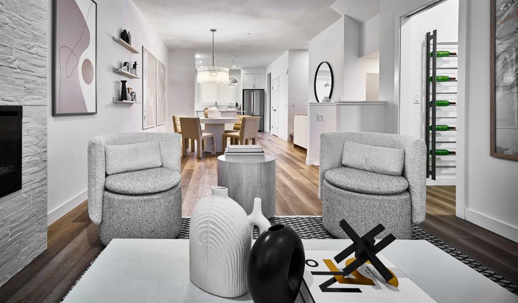 SHOW HOME FOR SALE! The beautiful ‘Alder’ show home by Brookfield Residential is now for sale! This brand-new home is situated on a west-facing rear lot and includes countless upgrades throughout. Featuring 2 living areas, 3 bedrooms, 2.5 bathrooms and a fully legal 1-bedroom basement suite with side entrance! The open concept main level features a central gourmet kitchen which opens to both the living and dining spaces – making this the perfect home for entertaining! The kitchen is finished with full-height cabinetry, and a suite of built-in appliances including an electric cooktop, range hood and a wall oven and microwave. A wall of windows in the front living room allows for natural light to pour into the home all day long. The expansive main level living space is complete with a central fireplace and access to a front office / flex space perfect for a home office. Completing the main level is a rear mud room and a 2-pc powder room. The upper level features a central bonus room that separates the primary suite from the secondary rooms for added privacy. The primary suite includes a large walk-in closet and is complete with a full ensuite with walk-in tiled shower. Two more bedrooms, a full bathroom and laundry room complete the upper level. The side entrances on the main level leads to a fully legal, 1-bedroom basement suite including all appliances! The suite includes a comfortable kitchen, living and dining area with a private bedroom with a full 4-pc bathroom and laundry area. Completing the property is a large fenced backyard with a generous double vehicle parking pad. The property comes fully move-in-ready with central A/C, custom window treatments, upgraded railing, lighting, and wallpaper are just some of the features of this professionally designed show home model. Builder warranty and Alberta New Home Warranty allow you to purchase with peace of mind! Don’t wait, these rare offerings never last.
