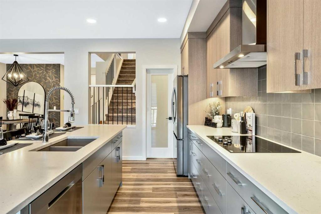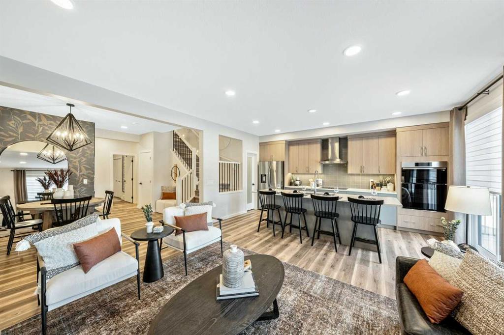Welcome to your new home! The “Maeve”, expertly crafted by Bedrock Homes, is situated in the community of Osprey Hill; one of Calgary’s newest and most desirable communities. Thoughtfully designed, this home offers spaces for friends & family to gather & share special occasions; as well as providing private areas to retreat to, and relax in. Tentatively scheduled to be completed in April of 2026. Gateway to mountain living with quick, convenient access to Canmore and Banff via Highway 1. Desirable walkout lot offering abundant natural light and seamless indoor-outdoor living. Walkout basement with extended concrete patio—ideal for entertaining or potential future development. Included 12’ x 10’ rear deck, providing additional outdoor living space. Upgraded kitchen features a chimney-style hood fan and full-height cabinetry to the ceiling. Luxurious 5-piece ensuite with dual vanity, soaker tub, and tiled walk-in shower. Spacious bonus room ideal for a family lounge, playroom, or media room. Versatile Main-Floor Flex room perfect for a home office, study, or additional living space. Expansive laundry room offering a refined design, custom sink, and side-by-side washer and dryer. 9’ knockdown ceilings on the main floor enhance the open, airy feel. Elegant railing with modern metal spindles throughout. Convenient walkthrough mudroom connected to a walkthrough pantry. 9’ basement foundation. All photos are representative.