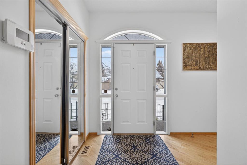 Welcome to this beautifully maintained and recently updated custom Cedarglen-built bungalow with over 3,123 sq ft of total developed living space, featuring a fully developed walk-out basement and located on a quiet cul-de-sac in the highly desirable community of Signal Hill. Situated on a large corner lot with many large windows, this home is filled with natural light and offers exceptional space, comfort, and functionality. The open-concept main floor features 10-foot ceilings, maple hardwood flooring, a large welcoming foyer, and a stunning crystal chandelier above the staircase leading to the lower level. The bright kitchen is designed for both everyday living and entertaining, showcasing ceiling-height cherry wood cabinetry, stainless steel appliances, pantry storage, and an impressive 9-foot granite island. The kitchen nook offers beautiful mountain views and access to a front-facing balcony. The living and dining areas are centred around a three-sided gas fireplace, creating a warm and inviting atmosphere. The spacious primary bedroom includes a walk-in closet and a private 4-piece ensuite, while the second bedroom also features its own walk-in closet. A separate main floor laundry room and an additional full bathroom complete the main level. The fully developed walk-out basement provides incredible additional living space with two more bedrooms, a renovated bathroom with granite countertops and stand-up shower, and a large recreation area with kitchenette. The walk-out leads to a beautifully landscaped backyard designed as a peaceful outdoor retreat with natural stone steps, a cement patio, and second upper deck seating area. The yard showcases a variety of mature landscaping including a Japanese cherry tree, evergreen trees, mugo pines, juniper, rose bushes, lavender, hostas, hydrangea, daylilies, ferns, and spirea, creating a colourful and private garden setting. Elegant custom wrought iron fencing and railings add the finishing touch to the outdoor oasis. Additional highlights include Avia permanent exterior lighting, energy-efficient triple pane UV-protected windows, solar panels, alarm system, stucco exterior, and an oversized double attached garage. The driveway accommodates parking for three vehicles, with additional space available in the cul-de-sac. This exceptional location is just minutes from Westhills and Signal Hill shopping centre, offering convenient access to shopping, restaurants, groceries, and everyday amenities including; Safeway, Superstore, Shoppers Drug Mart, The Keg, Earls, McDonald’s, KFC, and other fast food places. Nearby schools include Battalion Park School within walking distance and Ernest Manning High School, along with transit near Westside Recreation Centre. Enjoy nearby parks and playgrounds, beautiful westside mountain views, and quick access to Stoney Trail, Sarcee Trail, and Glenmore Trail. A rare opportunity to own a spacious walk-out bungalow in one of Calgary’s most sought-after westside communities.