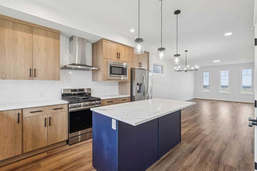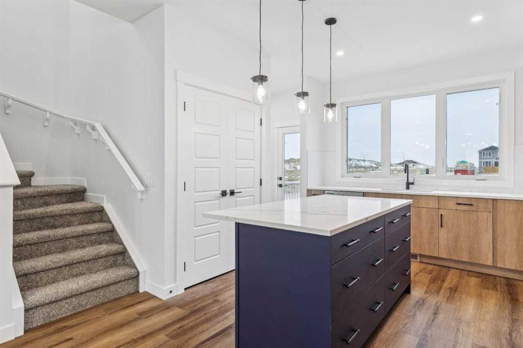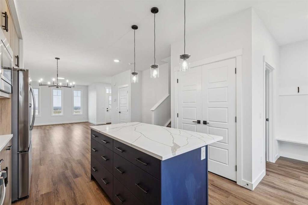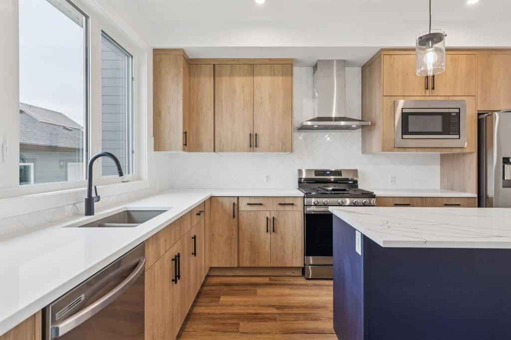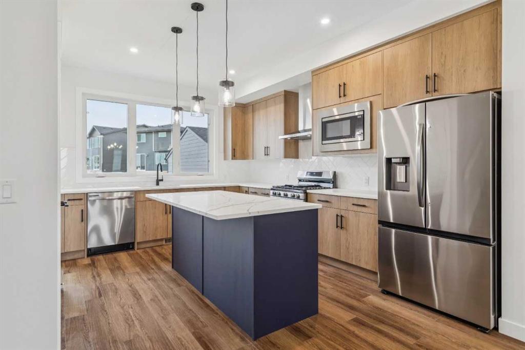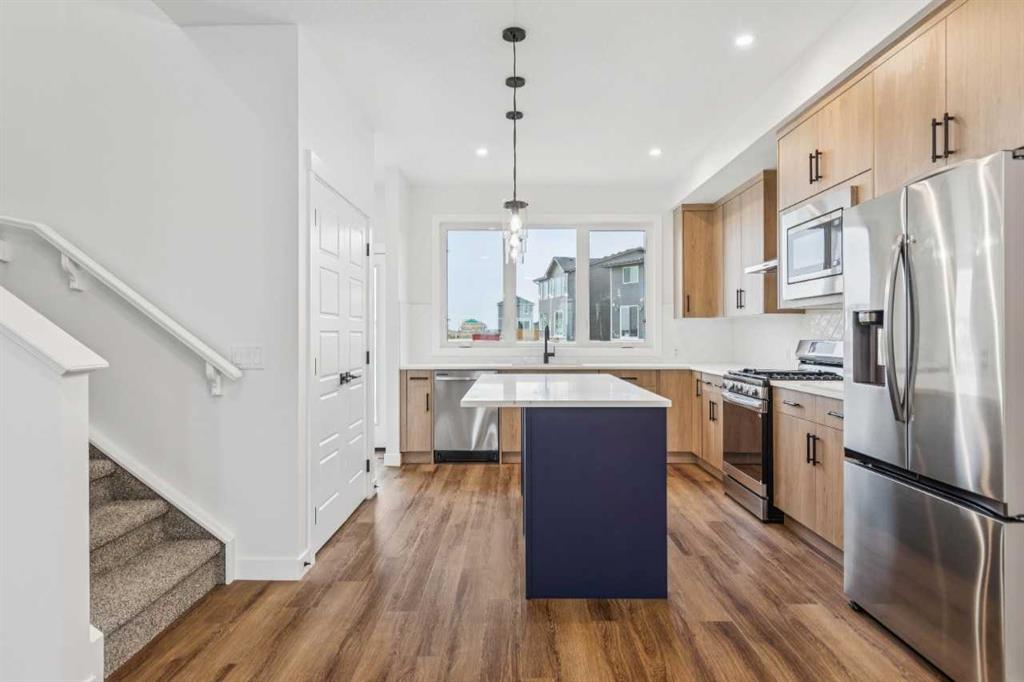 Discover a thoughtfully designed home at 15477 45 Street SW in the community of Vermilion Hill. The Elliott II by NuVista Homes offers 1,709 sq ft with 3 bedrooms and 2.5 bathrooms, combining modern finishes with functional design. The main floor features 9’ ceilings, luxury vinyl plank flooring, and an open-concept layout ideal for both everyday living and entertaining. The kitchen includes quartz countertops, extended cabinetry, and upgraded Samsung appliances with a gas range. Upstairs, the primary retreat offers a walk-in closet and private ensuite, alongside two additional bedrooms and upper-level laundry. A side entrance and 9’ foundation add future flexibility. Complete with a 20’ x 20’ detached garage and convenient access to parks and amenities.