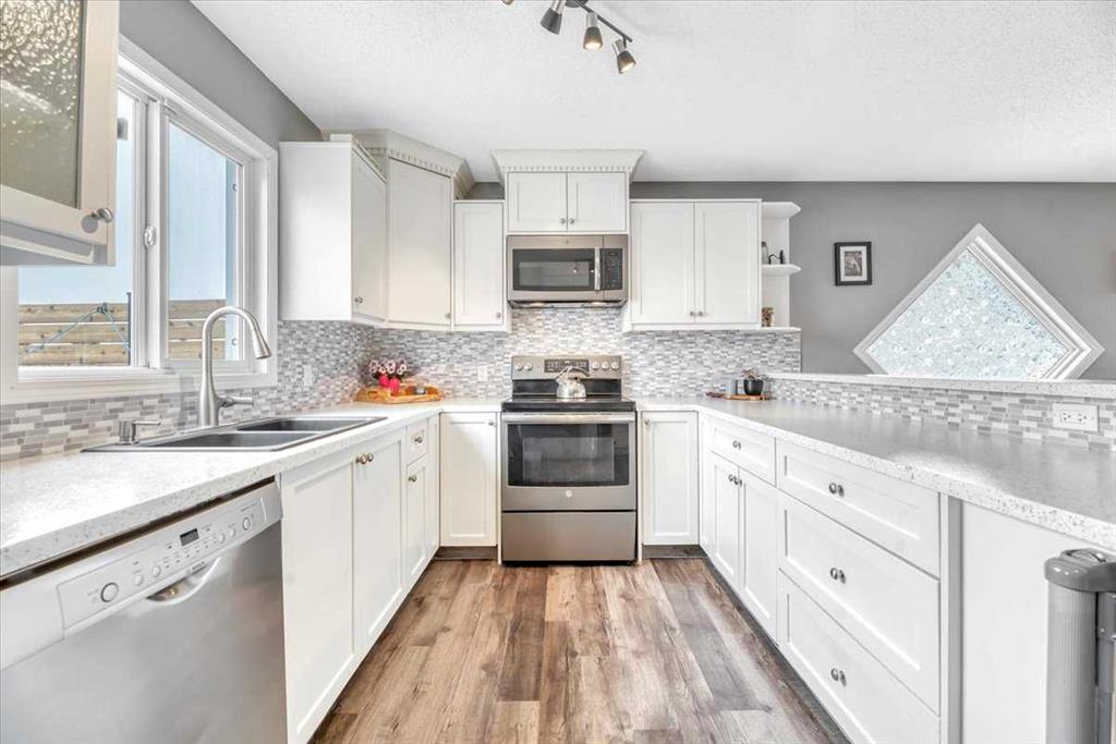 Backing onto the canal with a heated double attached garage, this updated 3 level split offers a great mix of space, comfort, and location. The bright main level features high ceilings, a spacious living room, and a beautifully updated white kitchen open to the eating area, making it a great space for both everyday living and entertaining. Upstairs you’ll find 3 bedrooms including the primary bedroom with its own ensuite. The developed lower level adds even more room to enjoy with a large rec room, bar area, and a cozy family room with fireplace. Outside, the maintenance free backyard is designed for relaxing with a 2 tiered deck and canal views. Additional updates include a newer hot water tank and new roof, adding peace of mind for years to come.