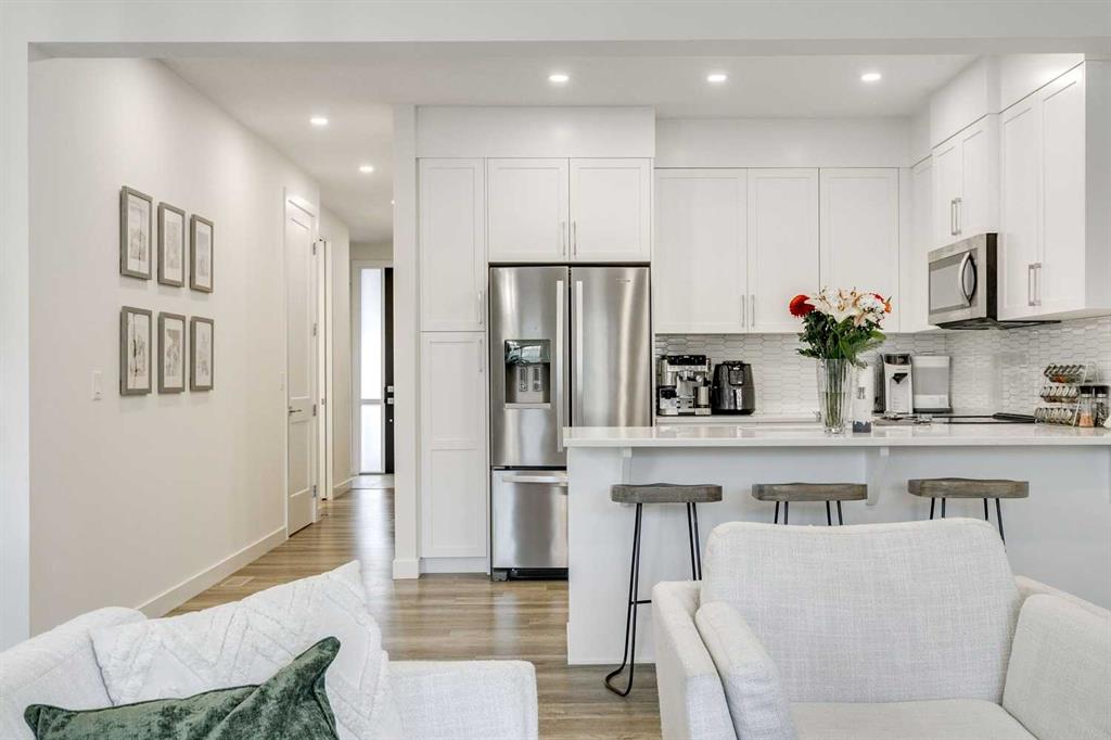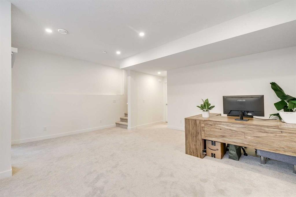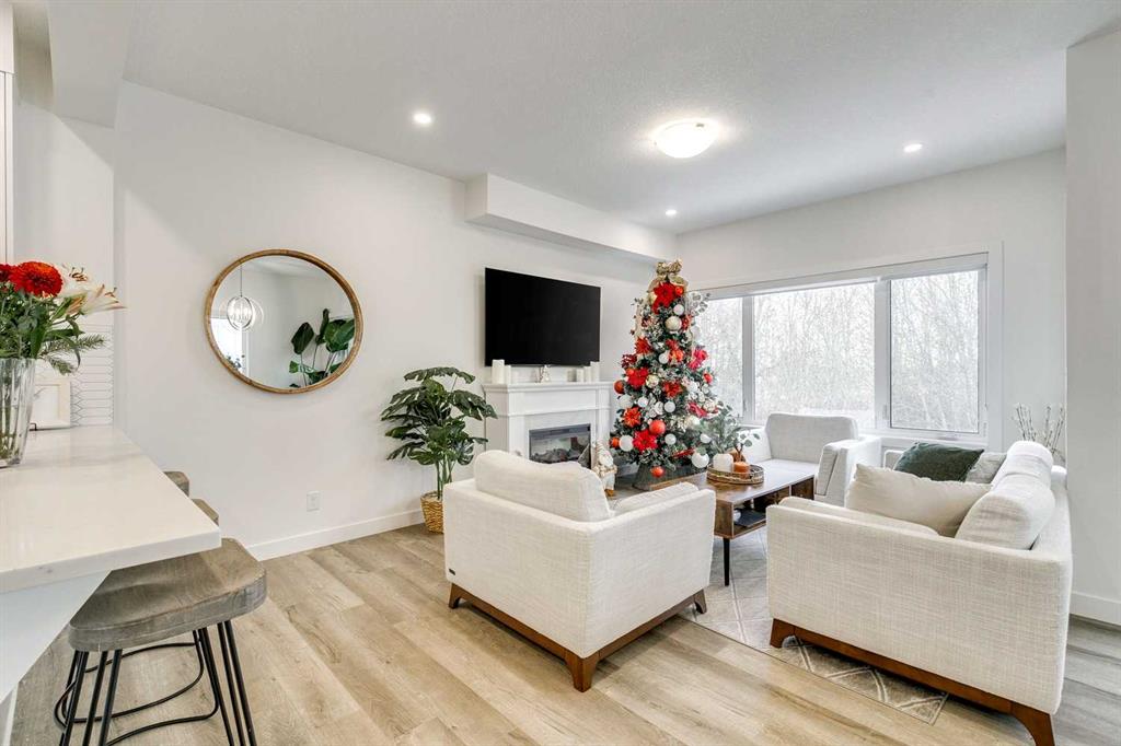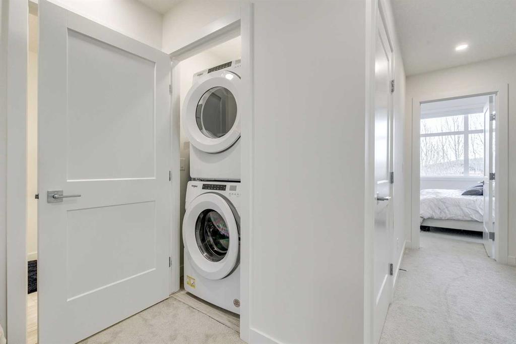 Here it is! Exceptionally private and quiet ravine-backing home. Original owners have meticulously maintained this home, it’s in excellent condition. Rare corner unit offering extra privacy, more natural light, and fewer shared walls. The ravine offers an extremely private and quiet setting with peaceful views and no neighbours behind. Fully-developed walk-out basement with a private concrete patio — ideal for additional living space, a home office, or guest suite. 1,470 sq. ft. above grade, plus a fully developed basement with an additional 543 sq. ft.; over 2000 developed. Basement includes a 4-piece bathroom. 9-foot ceilings throughout the main living areas with a modern, open-concept design. Vaulted ceilings in the primary bedroom, creating a bright and spacious retreat, and includes a private ensuite washroom with dual sinks. Large windows throughout the home, flooding the space with abundant natural light. Extra-large single attached garage with more than sufficient space for storage. Upgrades include: bright lighting throughout the home, kitchen cabinets and backsplash, stair railing, quartz countertops in the kitchen and all washrooms, modern appliances and more. Neutral, clean colours throughout, making it easy to decorate or maintain a modern design. Backing onto natural green space with two scenic ponds just steps away, perfect for walks or biking with extensive trails nearby, ideal for families, pet owners, and outdoor enthusiasts. Located in the highly family-friendly Crestmont community, known for its welcoming atmosphere; multiple playgrounds, and a shared community centre hosting regular events and activities, including a playground and a splash-park. Daycare and local shops just a 1-minute walk away, offering unmatched convenience. Multiple quick and easy access points to Highway 1, making mountain getaways effortless. Canmore in under 1 hour, Bragg Creek in under 30 minutes. Winsport just minutes away. Proactive condo board. Condo management handles snow removal and landscaping year-round, doing an excellent and timely job, always completing tasks as soon as possible. Extremely low utility bills thanks to ultra-efficient heating, insulation, and an HRV system. High-capacity water softener included. Rough-in for air conditioning already in place. Visitor parking available for friends and family. Gas BBQ hookup on the upper balcony. Lower walk-out patio on a private concrete pad, ideal for relaxing while enjoying the ravine’s privacy and quiet.