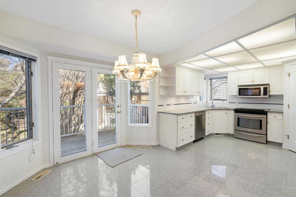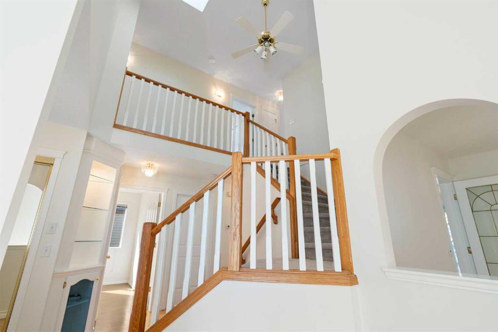 Welcome to this lovingly maintained 2-storey home, offered for the first time by its original owners. Spanning nearly 2,100 sq. ft. of functional living space, this residence perfectly combines pride of ownership with a prime location just steps from the scenic trails of Nose Hill Park. This home has been revitalized with brand-new paint and modern new carpets upstairs, providing a clean, move-in-ready canvas for its next chapter. The main floor offers a bright and open flow, with a formal living room and a dining room space ideal for both daily life and entertaining guests. The kitchen is drenched in sun with windows to the West and a sunshine ceiling, newer appliances and tile floors. The sunken family room has cathedral ceilings with large windows and a gas fireplace. There is a main floor office for all of the days you work from home. Upstairs you will find a very large primary bedroom complete with ensuite and large closet space. Two kids bedrooms and a laundry room complete the upstairs. The basement is vast and ready for your finishing touches. The sunny West backyard will ensure you enjoy long summer evenings and stunning sunsets in your private backyard. It really is a dream for gardeners and outdoor enthusiasts alike. The roof was redone just over a year ago. This is a great opportunity to own a large, move-in-ready home in a sought-after community with park access. Book your private showing today!
