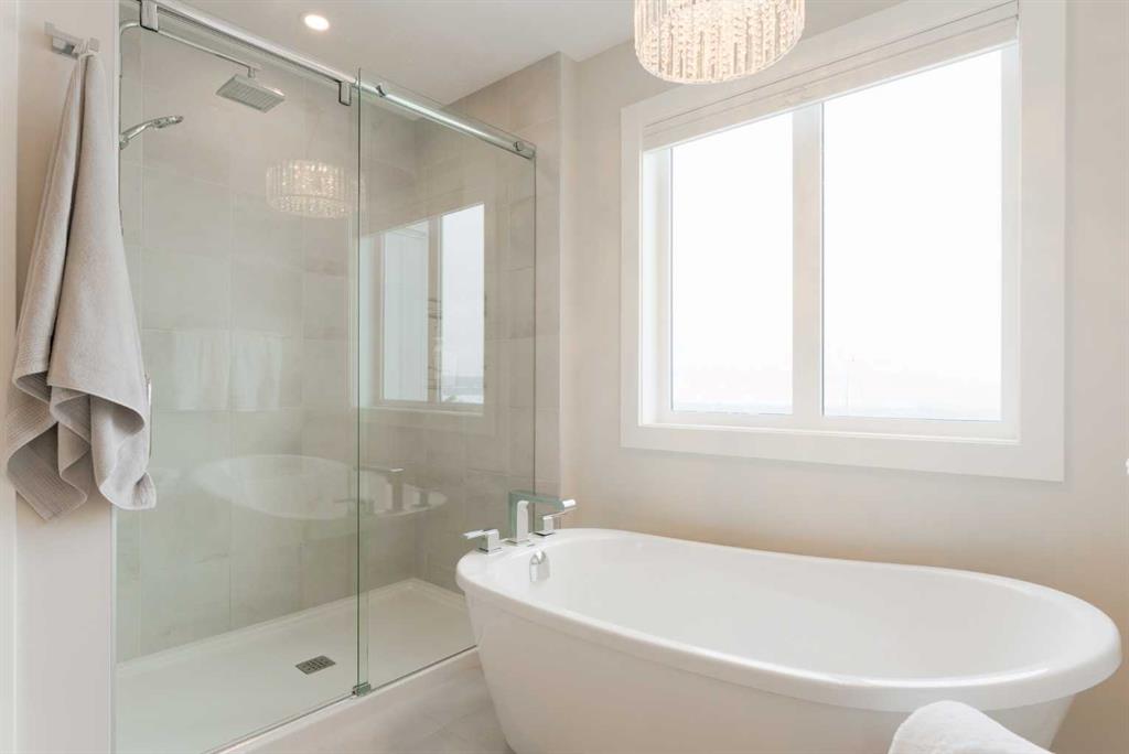 Upstairs offers three bedrooms, upper laundry, and a spacious bonus room. The primary retreat includes a large walk-in closet and a spa-inspired 5-piece ensuite with dual vanities, freestanding tub, walk-in shower, and private water closet.