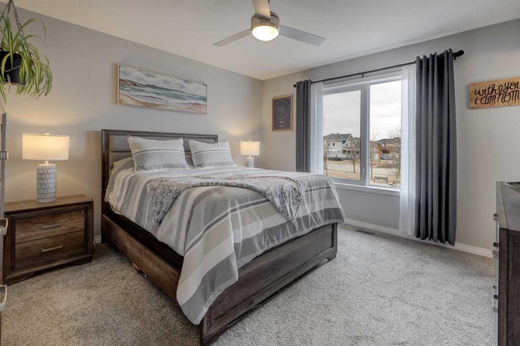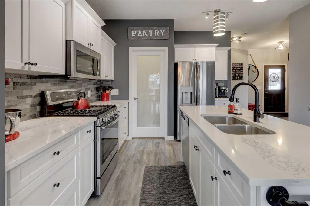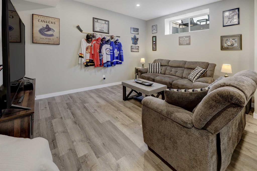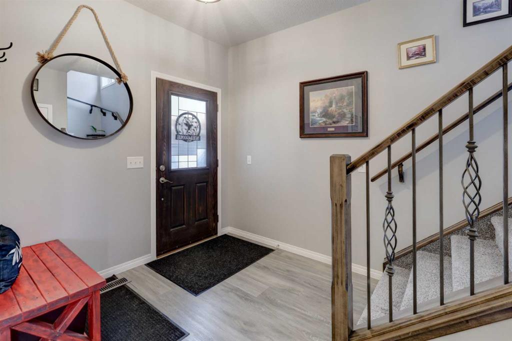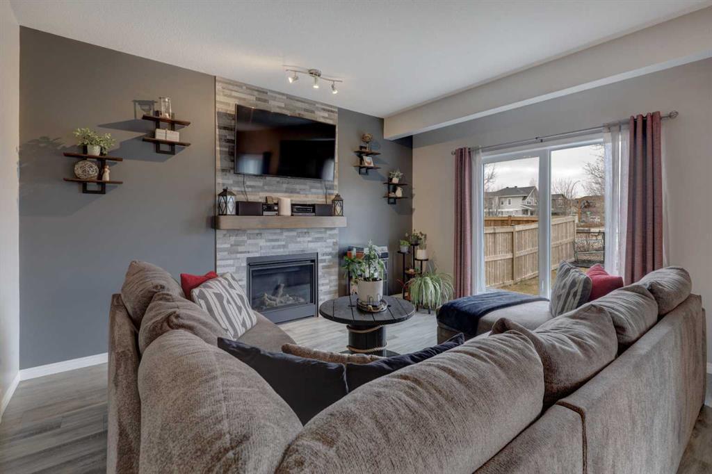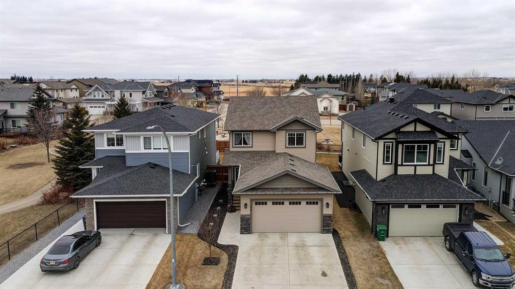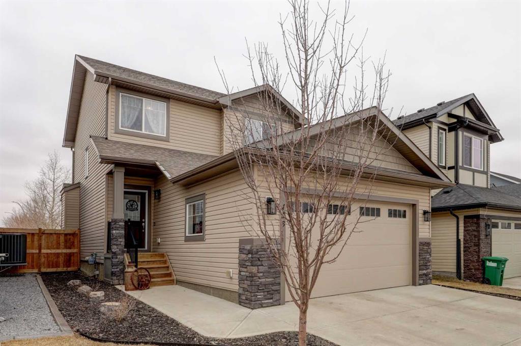 HOME SWEET HOME! Welcome to this outstanding, custom-built, and RECENTLY UPDATED FORMER SHOWHOME situated in the quiet and family friendly community of Wildflower backing on to a picturesque green space/playground in the heart of the charming town of Strathmore. This magnificently modern home offers 3 bedrooms, 4 bathrooms, 2,179 fully developed, sophisticated SQFT of living space throughout, central air conditioning and an oversized double garage. Heading inside the home you will be blown away by the amazing pride of ownership, luxury vinyl plank flooring, custom lighting upgrades and the well maintained living space offering a bright foyer, formal dining area with access to the spacious deck and patio, 2 piece vanity bathroom, mud room, sun-drenched living room perfectly complimented by a floor to ceiling rustic, stone gas burning fireplace and the gourmet chef’s kitchen complete with quartz countertops, a large quartz island, convenient walk through pantry, sleek soft close cabinets, upgraded stainless steel appliances and built-in vacuum system. Heading upstairs you will find 3 great sized bedrooms including the dreamy primary bedroom complete with a spacious walk-in closet and upgraded 3- piece ensuite bathroom with an oversized shower with a bench. Completing the upstairs is a large laundry room and a wonderful 4-piece main bathroom. The recently developed basement contains a 2-piece vanity bathroom, huge recreation/living/games room and an office nook perfect for a growing family and tons of storage space. Outside you will find the oversized double attached garage with additional driveway parking and the beautifully landscaped and partially fenced backyard with an upgraded, new patio, deck with new rails, cedar plant boxes and built in firepit. Upgrades in the works include a new window in the bathroom and new eves, downspouts, and some soffits. Unbeatable location steps from 9 miles of pathways, high School, Kinsmen and Gray Parks, Outdoor Rink, Skatepark, Strathmore Stampede Grounds, shopping, the Recreation Centre, the Strathmore Golf Club, hospital and so much more. You are a short 25 minutes from Calgary city limits! Strathmore is known for it’s quieter and slower pace of living and strong community ties. Don’t miss out on this amazing opportunity! Book your private viewing of this GEM today!
