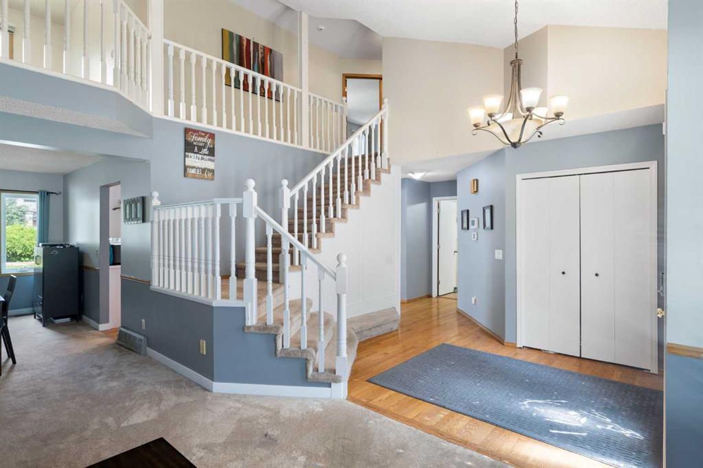 This stunning custom-built home in the highly sought-after community of Woodbine offers the perfect mix of elegance, comfort, and convenience. With soaring vaulted ceilings, an open-concept floor plan, and beautiful hardwood & ceramic tile flooring, this home is built to impress. The main floor is designed for living and entertaining with a spacious living room & dining room, a bright kitchen with island & breakfast bar, cozy family room with a gas fireplace, and a sunny breakfast nook with patio doors leading to your oversized deck. You’ll also love the convenience of a main floor laundry and a stylish half bath. Upstairs, a charming loft welcomes you to the bedroom level, where you’ll find three spacious bedrooms including a luxurious primary retreat complete with a walk-in closet, jetted tub, separate shower, and dual sinks. The fully finished lower level offers even more living space with a rec room & second fireplace, a 4th bedroom, and a smart walk-up entry to the garage—perfect for families or guests. Outside, enjoy your oversized lot with private deck and take advantage of being just steps from Fish Creek Park’s walking & biking trails, plus quick access to shopping and Costco!… Also a roof that only a year old!