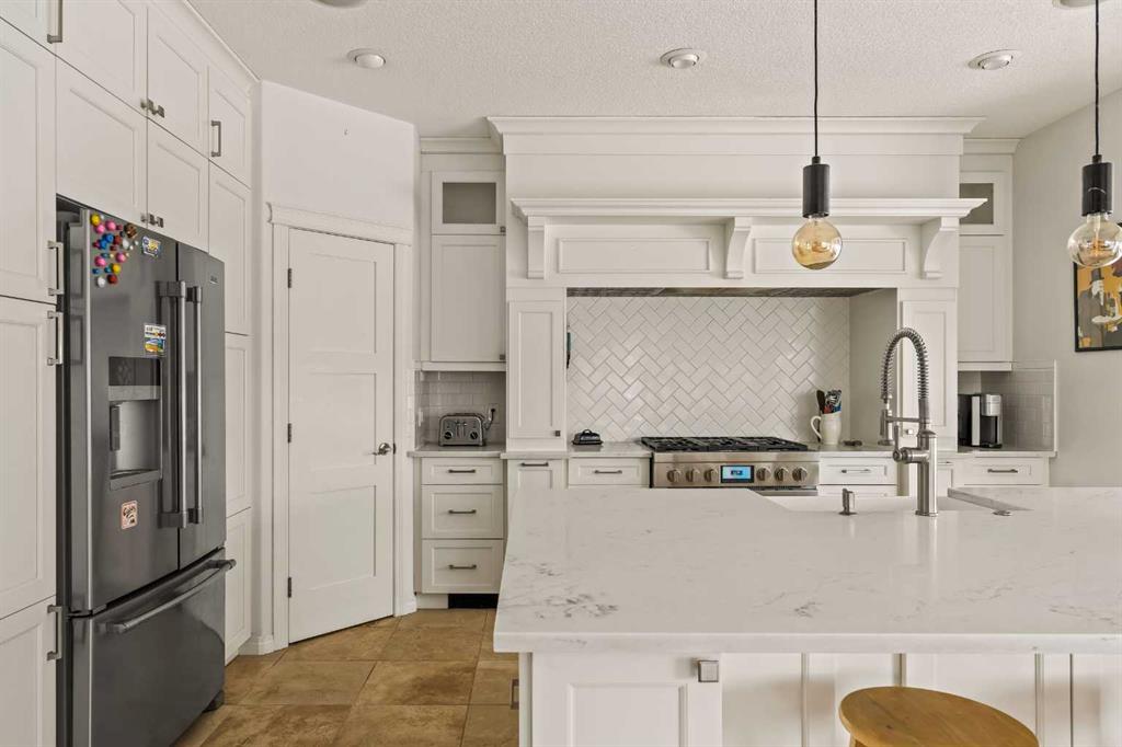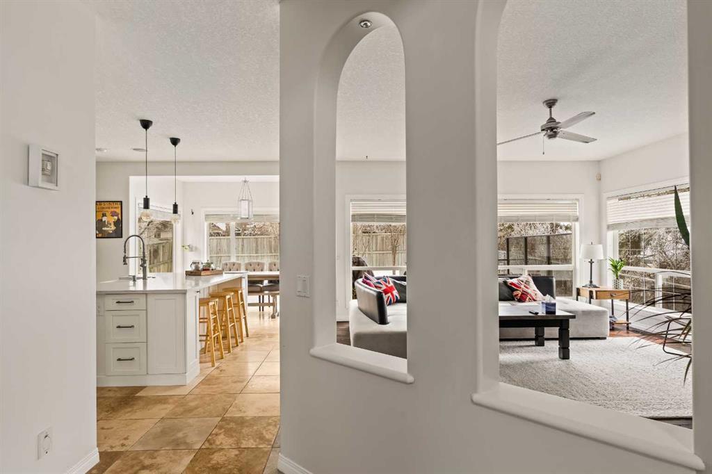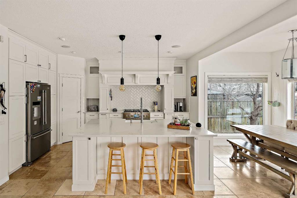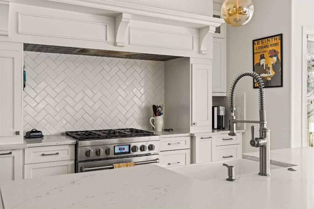 Welcome home to this beautifully renovated and lovingly maintained executive residence in Strathcona Park, one of Calgary’s premier west-side communities. Offering over 3,500 sq. ft. of developed living space, this exceptional home is perfectly suited for a growing family or professional seeking space, comfort, and refined living. Ideally positioned on a mature corner lot with a desirable southwest-facing backyard, the property enjoys an outstanding location within walking distance to Dr. Roberta Bondar School, parks, and scenic pathways. A soaring double-volume foyer welcomes you into the open-concept main floor, where expansive windows flood the home with natural light, creating a warm and inviting atmosphere throughout. At the heart of the home is a chef-inspired kitchen designed for both entertaining and everyday functionality. A 36” JennAir six-burner gas range is beautifully set into a custom alcove with a professional-grade hood fan, anchoring the space with both style and performance. An oversized central island, extensive cabinetry with pull-outs, and a spacious walk-in pantry provide exceptional storage and convenience. The generous dining nook overlooks the private backyard and flows seamlessly into the inviting family room, where rich hardwood flooring and a cozy gas fireplace create the perfect gathering space. At the front of the home, a formal dining room offers flexibility as a sitting area or den, while a private office with French doors provides an ideal work-from-home environment. The main level is thoughtfully completed with a mudroom, a 2-piece powder room, and a convenient laundry area. Upstairs, a spacious front bonus room with large windows creates the perfect setting for a media area or children’s play space. The expansive primary suite is a true retreat, featuring a private sitting area with mountain views and a beautifully renovated 5-piece ensuite designed for relaxation. Dual sinks, a freestanding soaker tub, a walk-in shower, and dual walk-in closets provide both luxury and practicality. Two additional well-sized bedrooms and an updated full bathroom complete the upper level. The developed lower level further expands your living space, offering a large recreation area with a fully equipped wet bar complete with fridge, dishwasher, and sink. This level also includes a 3-piece bathroom, exercise room, and generous storage space. Outdoors, the southwest-facing backyard is framed by mature trees and shrubs, creating a private setting. Enjoy summer evenings on the rear deck or unwind in the hot tub, with seamless access from the kitchen for effortless indoor-outdoor living. An oversized side-access double garage provides ample storage and comfortable space for vehicles year-round. Perfectly located near walking paths, parks, and top-rated schools, this exceptional Strathcona Park home offers a rare blend of luxury, functionality, and timeless appeal in one of Calgary’s most sought-after neighbourhoods.
