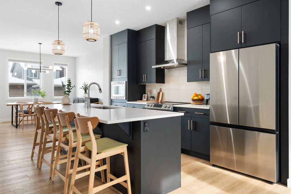 The main floor is centred around a beautifully upgraded kitchen designed for real life, featuring full-height cabinetry to the ceiling, quartz countertops, an oversized island, and upgraded appliances. The open layout keeps everything connected and comfortable, whether you’re easing into your morning or hosting friends.