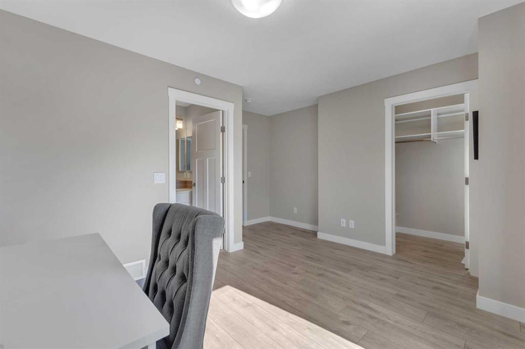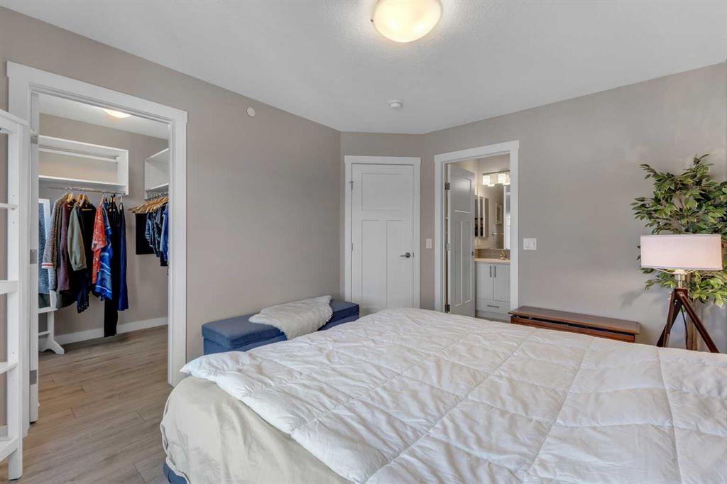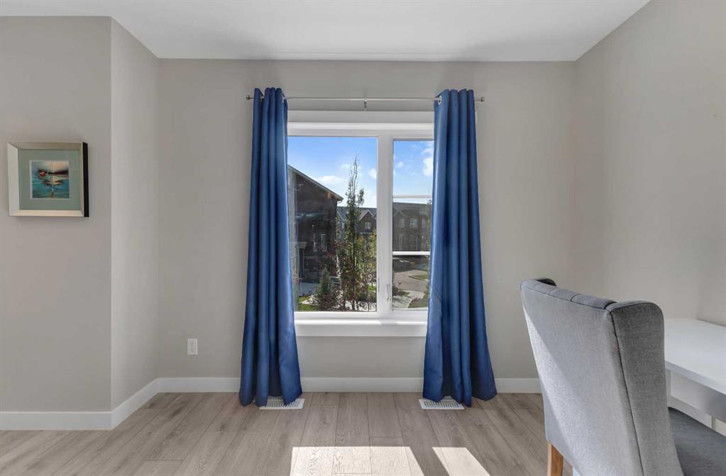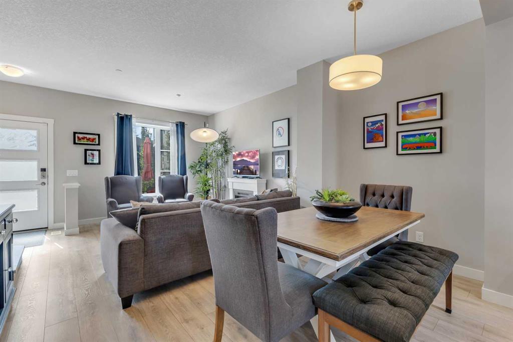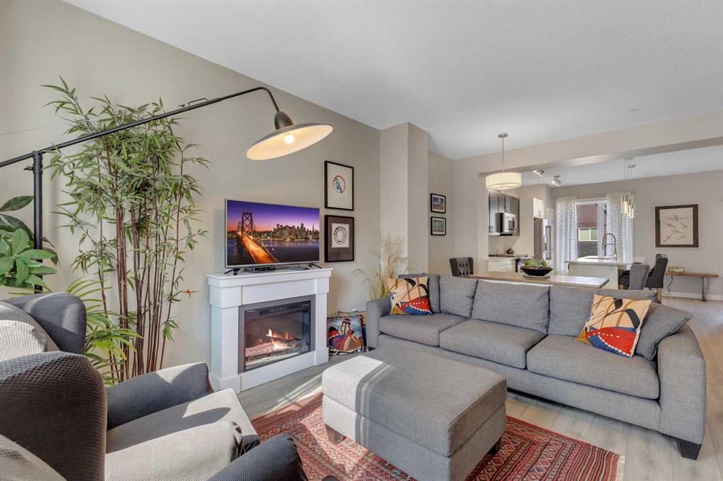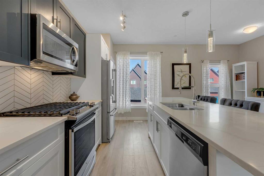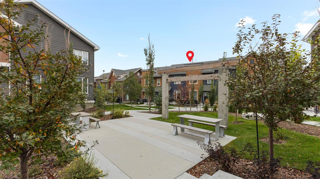 **OPEN HOUSE, SUNDAY, OCTOBER 26, 12PM TO 2PM.** Situated in the innovative and vibrant community of Livingston, this beautifully designed, open-concept home combines modern style with everyday comfort. Nestled in one of the most peaceful corners of the complex and overlooking a serene courtyard, this home offers its own private front-yard retreat. With 1249 sq. ft. of developed living space, high-quality finishes, and thoughtful upgrades throughout, this home is sure to impress. Bright and airy, the interior showcases oversized windows, 9-foot ceilings, and luxury vinyl plank flooring that extends gracefully through every room. The stylish kitchen is masterfully designed for efficiency and entertaining. Featuring premium upgraded quartz countertops, elegant herringbone tile backsplash, shaker-style two tone cabinets, stainless steel appliances including a gas stove, and a sprawling island. The kitchen flows seamlessly into a refined dining area and living room, centered around a cozy fireplace, ideal for entertaining and relaxation. A versatile flex space, perfect for a home office, and powder room complete the main floor. Upstairs, the second floor continues to impress with dual primary bedrooms, each with their own ensuite and walk-in closet. Enjoy the practicality of the upper-floor laundry room paired with extra storage space, keeping your home organized and efficient. Step outside to a spacious private patio complete with a cozy fire table, perfect for relaxing evenings or morning coffee. The double attached garage provides plenty of room for parking and storage, while the unfinished lower level awaits your personal touch. Just steps from your front door, the LIVINGSTON HUB offers endless recreation and fun for families. Enjoy the tennis courts, skate park, ice rink, playground, splash park, gymnasium, and a variety of community programming—everything you need to stay active and entertained.