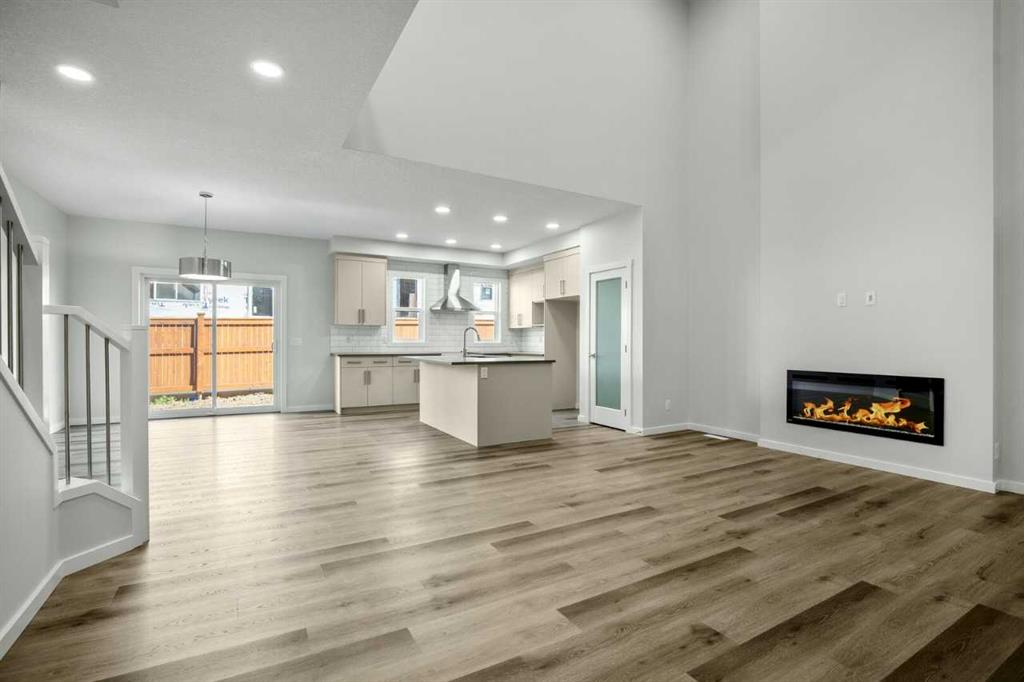 Open concept main floor allows for a spacious L-shaped kitchen at the back of the house that comes with 41″ soft close upper cabinets and a rough-in for a chimney hood fan. Every Bedrock Home comes complete with a modern smart home technology system (Smart Home Hub), Ecobee thermostat, Ring video doorbell & Weiser Halo Wi-Fi Smart keyless lock with touch screen. Side entry is added for , the basement ceilings are upgraded to 9′. Upgraded Spindle railing on the stairs and upper hall creates an open feel from main floor to upper level. Built with a 4-piece ensuite with upgraded walk-in shower and dual sinks. Double compartment stainless steel undermount kitchen sink, complete with a chrome finish faucet with pull down sprayer, and 1.5gpm aerator. 50″ Linear Ortech LED electric fireplace. All LED disc lights were upgraded to 5000k white light. Photos representative.