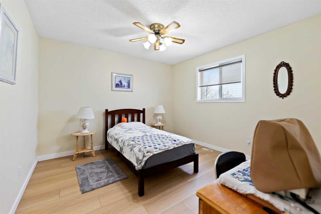 Original Owner. Need a clean home? This one might be it. Well looked after home. Shows excellent with many features. Upper floor has three good sized bedrooms, two full baths with three piece en-suite . Main level with big front entrance, family room with fireplace, large kitchen with loads of counter space. Walk through pantry to double attached garage, patio doors to a covered enclosed sunroom (10×13.5) with south facing rear yard. There is also a two piece bath on the main floor. The lower level has a games sitting room with another fireplace with its own thermostat. Another bonus room, plus a work shop. Outside you will find fully landscaped yard, underground sprinklers, 10×10 tool shed, plenty of flowers and shrubs. Home comes with all appliances and has air conditioning. Quick possession is possible. Other features include,, Roof, siding and garage door replaced in 2021. Electrical panel replaced in 2023. Call your Realtor to Show.
