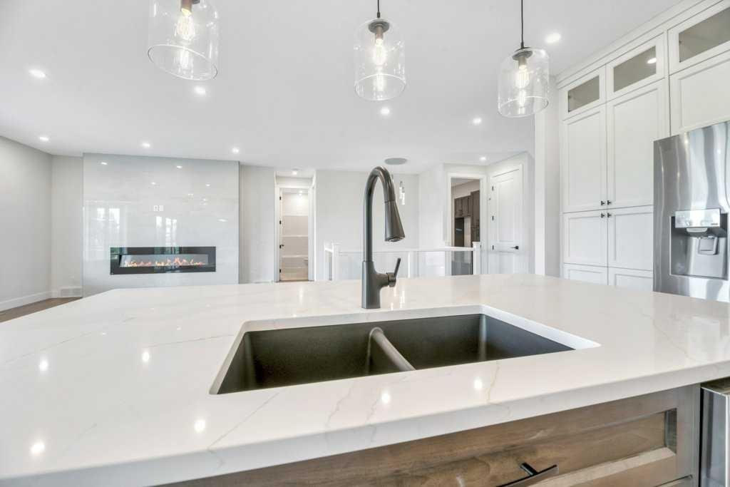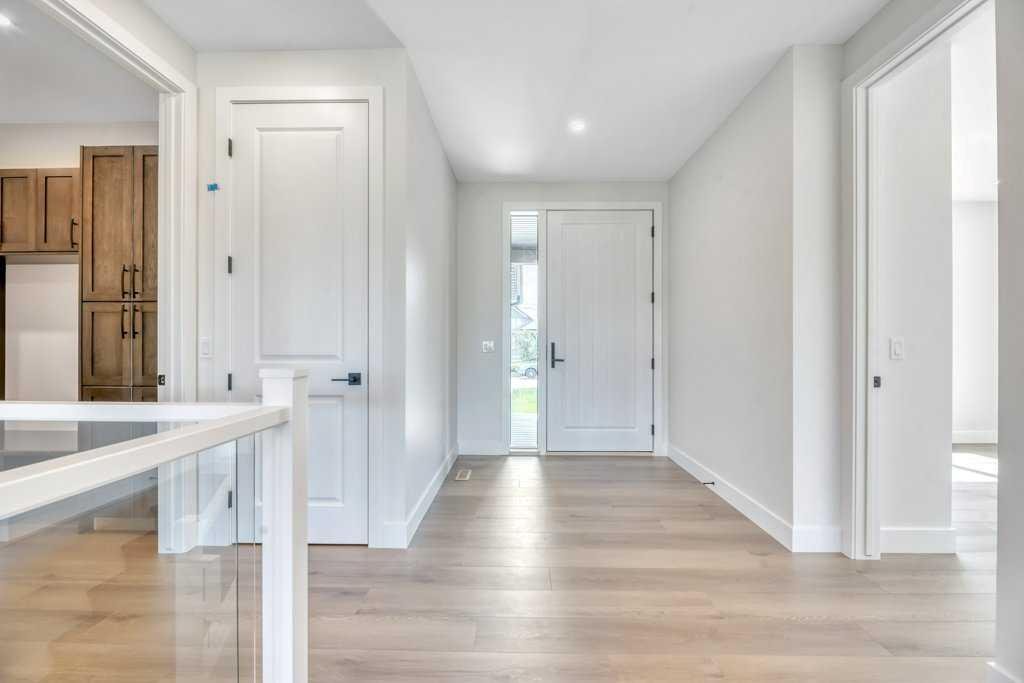 Brand-New Walkout Bungalow Backing on the 11th Green at Speargrass Golf Course. Experience luxury living in this beautifully crafted 4-BEDROOM, 4-BATHROOM DESIGNER BUNGALOW, offering over 3,100 sq. ft. of exquisite, thoughtfully designed space. Ideally located just 40 minutes east of Calgary, this stunning walkout home backs directly onto the 11th green of the Speargrass Golf Course and boasts a TRIPLE ATTACHED GARAGE with soaring 11 FT CEILINGS and 9 FT DOORS. Step through the impressive 42” FRONT DOOR into a bright, open-concept layout enhanced by PREMIUM WOOD LAMINATE AND TILE FLOORING. The gourmet kitchen is a true showstopper, featuring QUARTZ COUNTERTOPS, CUSTOM CABINETRY, DESIGNER BACKSPLASH, A LARGE ISLAND, HIGH-END APPLIANCES, AND A SPACIOUS PANTRY. The open DINING AREA, accented by STRIKING LIGHT FIXTURES, is ideal for hosting, while the INVITING LIVING ROOM with a sleek ELECTRIC FIREPLACE provides a cozy setting for everyday comfort. Step out to the COVERED UPPER DECK, finished with DURADEK and GLASS RAILINGS, perfect for BBQs and enjoying the panoramic golf course views. The primary suite is a luxurious retreat, complete with a SPA-INSPIRED ENSUITE featuring a massive tiled shower and dual sinks. A spacious second bedroom, full bathroom, and mudroom with custom bench and cabinetry enhance the main level, along with a large laundry room offering a deep sink, custom cabinetry, and side-by-side washer and dryer. The FULLY DEVELOPED WALKOUT BASEMENT is an entertainer’s dream with a wet bar, second fireplace, two additional bedrooms, two full bathrooms, and direct access to the beautifully landscaped backyard with retaining walls and sweeping golf course views. Built with quality and durability in mind, this home features Hardie board siding, Lux triple-pane aluminum-clad windows, central air conditioning, LED lighting, Level 4 impact-resistant shingles, fireguard drywall, Rockwool insulation, and 8-foot interior doors throughout. Don’t miss this rare opportunity to own a stunning home in an unbeatable location—book your private showing today!