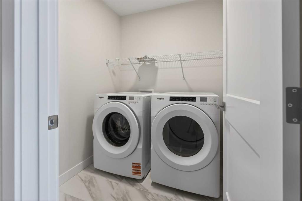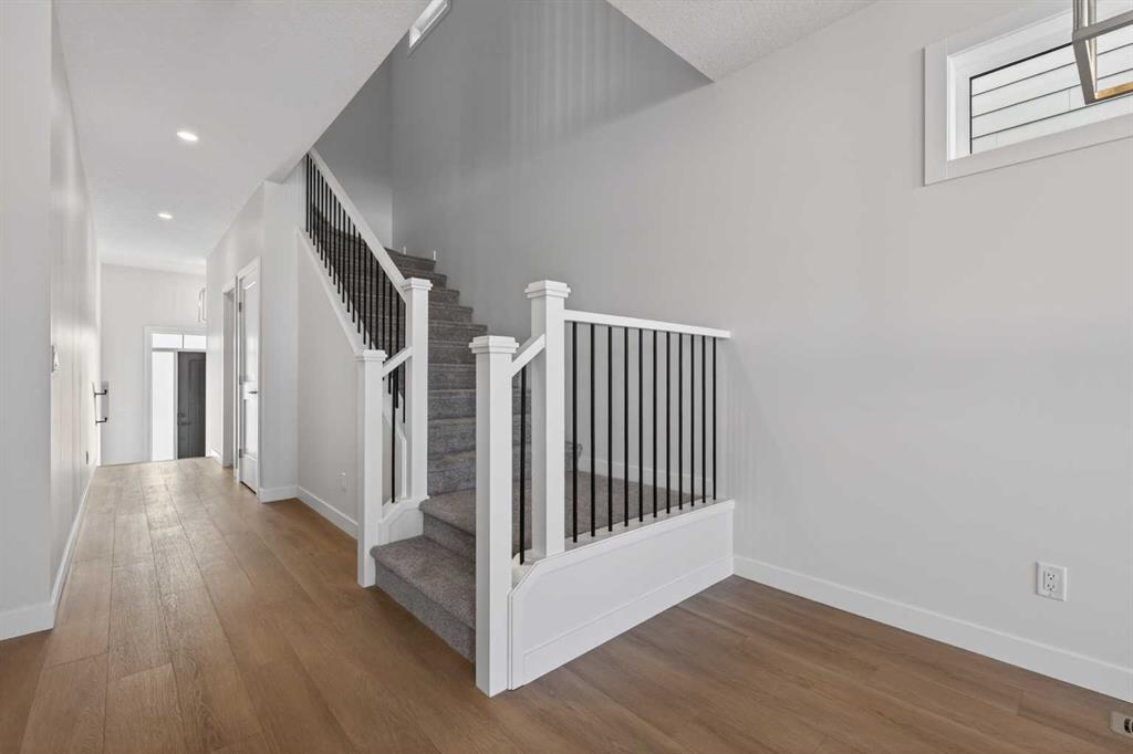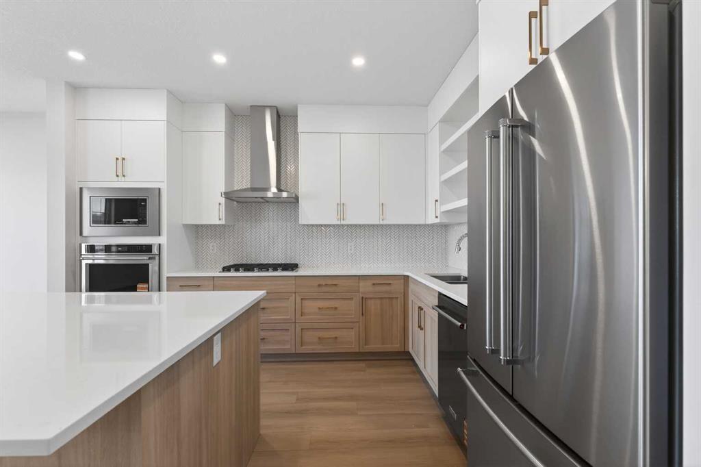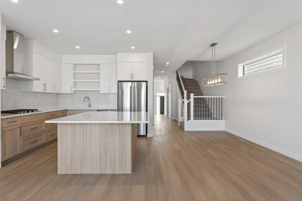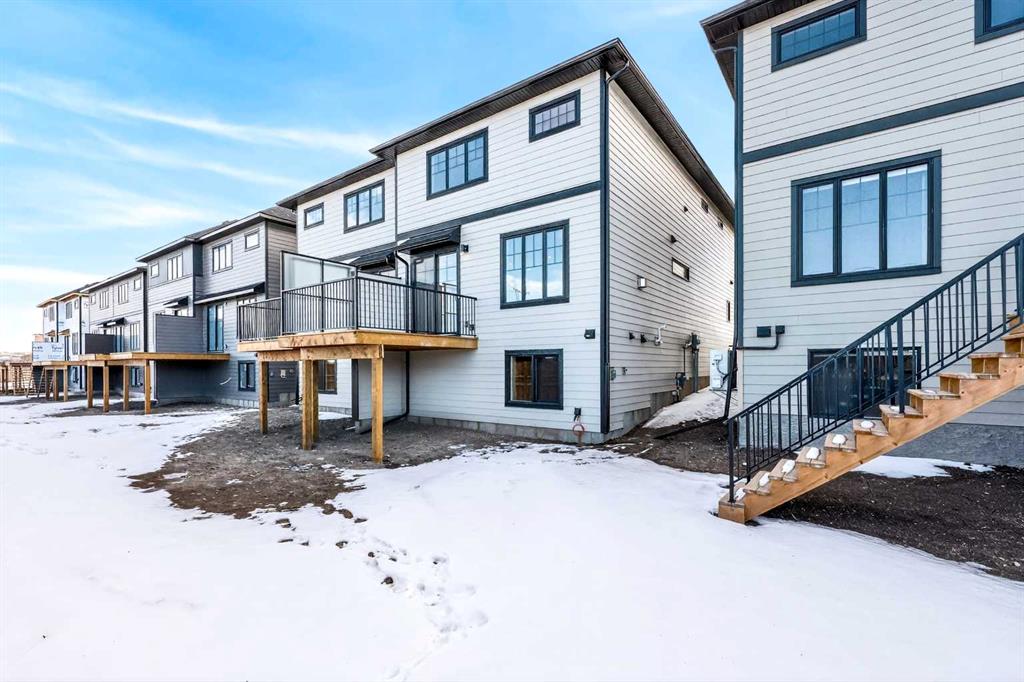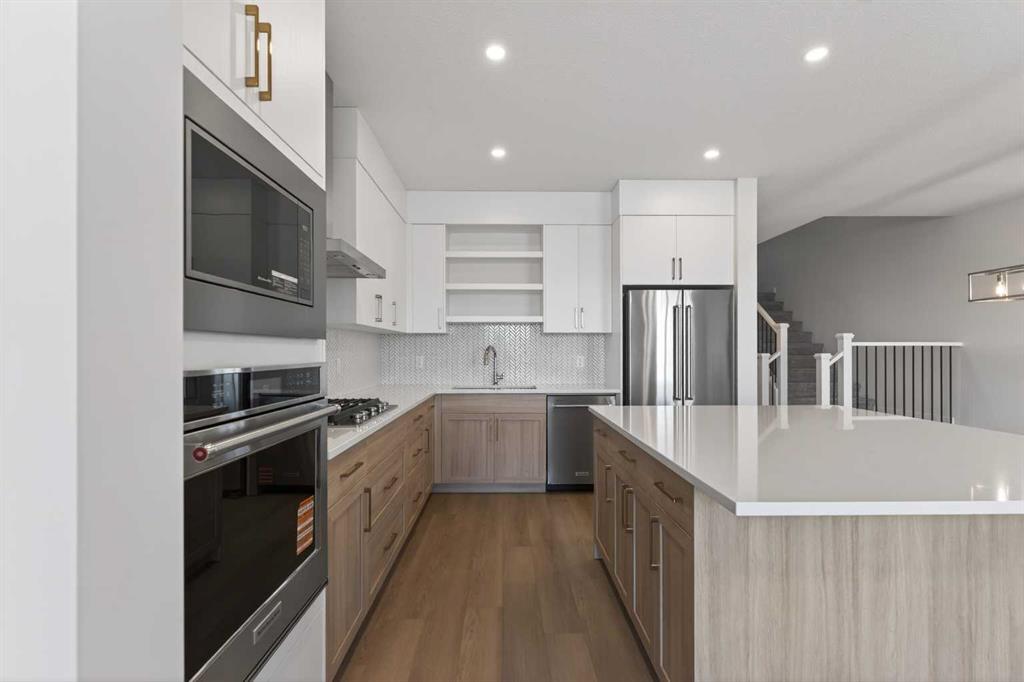 OPEN HOUSE, March 1, Sunday 2-4pm**New Luxury home with many upgrades! Stunning 3 bedroom, 2.5 Bath Home is ready for immediate possession. Built by Partners with Full New Home warranty. Entering in the front door you will notice beautiful upgraded LPV flooring. Stepping into the BRIGHT OPEN Main floor the stunning Chef’s kitchen will get your attention with it’s Huge island, Upgraded cabinets with soft close drawers & doors, Quartz counters, Walk-in pantry, ALL Kitchen Appliance are High-End Stainless Steel “Kitchen Aide” Gas stove top, built-in convection oven, Built-in microwave, Refrigerator & Dishwasher. The Dining room is family size, and the Generous Livingroom has a gas fireplace with gorgeous front facia and Mantle. The fireplace also has a fan for circulating warm air. There are garden doors to the deck that has a gas-line for Bar-B-Q. All light fixtures are LED. Completing the main floor is a Powder room. Up the stairs you will notice the wide staircase with upgraded railings. Luxury appointments continue on the second floor starting with a large family Bonus room with extra LED lighting. The Primary suite is King sized, with a large walk-in closet, The En-suite has been upgraded and is gorgeous with it’s walk-in shower, separate soaker tub and Quartz counters. There are 2 more large bedrooms with large closets and a 4 piece bath. The laundry is complete with high end washer/dryer, conveniently located on the second floor. Home is equipped with “hot water on demand” for those long hot showers. The lower level is unfinished but has been well laid out to create more living space, with High ceilings, plumbing & electrical neatly tucked in, home is roughed in for Central AC, Basement has a rough -in for full bath. HUGE Egress window has been added. The garage is insulated & drywalled. All this plus a Great Location. A short walk or bicycle ride to the Farmer’s market. Plenty of shopping and Great Restaurants close by. Easy access to Stony Trail and Crowchild Trail.