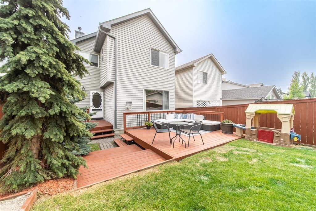 Welcome to this fantastic detached home offering exceptional value in the highly desirable community of Tuscany. With four bedrooms, three bathrooms, and a fully developed layout on all levels, this home is perfectly suited for a growing family and is truly move-in ready. The main floor features a bright, open-concept design with beautiful hardwood flooring throughout. The kitchen is both stylish and functional, showcasing stainless steel appliances, granite countertops, updated cabinetry, and a modern tile backsplash that complements the cozy corner fireplace in the living room. Designer paint colours add a fresh, contemporary feel throughout the space. A functional dining area, convenient two-piece bathroom, and a versatile main floor office/flex space complete this level. Upstairs, the spacious primary suite is its own private oasis featuring a walk-in closet, a four-piece ensuite with a large soaker tub, and a relaxing private sitting area. Two additional generously sized bedrooms and another four-piece bathroom complete the upper level. The fully developed lower level offers a massive recreation area—perfect for a home gym, theatre space, or family games room. You’ll also find a fourth bedroom, laundry room featuring a sink and two separate areas ideal for storage. Step outside to enjoy the fully landscaped, spacious yard featuring a massive deck; ideal for entertaining. There is also a storage shed and ample space off the alley to build your dream garage. Recent updates include a new stove (2025), washer and dryer (2023), shingles (2021), granite countertops throughout (2023), tile backsplash (2023), and new faucets. The furnace and fireplace were also regularly maintained and recently serviced in December 2025. This move-in ready home offers space, comfort, and incredible potential in one of northwest Calgary’s most sought-after communities. Residents enjoy access to the fantastic Tuscany Club, featuring a splash pad, skating rink, skateboard/bike track, gymnasium, and a wide variety of kids’ programs. The home is also just steps from miles of walking, jogging, and cycling pathways overlooking stunning Rocky Mountain views, and is conveniently close to schools, parks, and shopping. Don’t miss out on your opportunity to call this incredible property home!