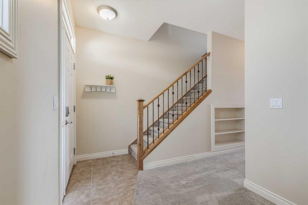 Wake up every day to sweeping Rocky Mountain views from this two-storey townhouse condominium in Rocky Ridge, featuring two titled underground heated parking stalls. Offering 985 sq ft of well-designed living space, this two-bedroom, two-bathroom home combines comfort, convenience, and an unbeatable location. The main level opens with a welcoming entryway leading to a flexible den or home office. The primary bedroom features a closet with built-in organizers, a private four-piece ensuite, and incredible west-facing mountain views. This level also includes a storage area and laundry with a stacking washer and dryer. Upstairs, large windows and a vaulted ceiling create a bright, airy feel in the open-concept kitchen, dining, and living areas. The kitchen boasts dark maple cabinetry, a tile backsplash, stainless steel appliances, plentiful cupboard space, and a breakfast bar. The dining area flows out to a 6×13 ft southwest-facing balcony with a gas line for a BBQ, the perfect spot to soak up the sunshine and mountain scenery. An additional bedroom with two closets (each with built-in organizers) and a second four-piece bathroom complete this level. This pet-friendly complex (up to two pets with board approval, dogs must weigh less than 15kgs) offers a fully equipped fitness centre and abundant visitor parking. The location is hard to beat, steps to walking and biking paths, parks, and playgrounds, plus access to the Rocky Ridge Ranch Homeowner’s Association with tennis courts, skating rink, splash park, and a lake for canoeing and kayaking. A 15-minute walk brings you to Calgary Co-op, while Crowfoot Crossing’s shops and restaurants, Royal Oak schools, and the Shane Homes YMCA are just minutes away. Commuting is simple with quick access to Crowchild Trail, Stoney Trail, and the Tuscany LRT station, connecting you to the University of Calgary, SAIT, and downtown. You’re also only 10 minutes from Market Mall, Foothills Hospital, Alberta Children’s Hospital, Bowness Park, and Canada Olympic Park, with the gateway to the mountains right at your doorstep. Take advantage of your opportunity to see this incredible property in person, book your showing today! Be sure to check out the floor plans and 3D tour for a closer look before your visit.