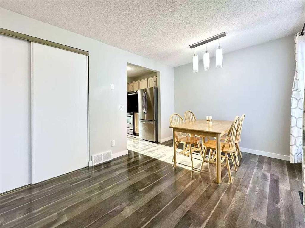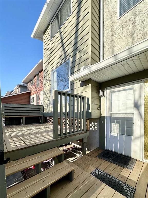 Welcome to your new home in the heart of Ranchlands! This beautifully renovated 3-bedroom end-unit townhome offers the perfect blend of comfort, style, and convenience. Enjoy a private, sunny backyard that backs directly onto scenic walking and bike paths—ideal for relaxing mornings or evening strolls. The main level features a convenient half bathroom and a functional galley-style kitchen complete with granite countertops and maple cabinetry. Just beyond, you’ll find two spacious sitting areas and a dedicated dining space, perfect for entertaining or everyday living. Upstairs, the home offers three well-sized bedrooms and a fully renovated 4-piece bathroom, thoughtfully designed with a modern shower niche. Fresh paint throughout (including walls and ceilings) 2024 gives the home a bright, refreshed feel. Step outside to your refurbished rear deck—perfect for morning coffee or summer BBQs. The front entrance is enhanced with a designer glass door, complemented by a beautifully maintained flower bed for added curb appeal. Additional upgrades include new door hardware throughout, custom built-in closets, stylish metal handrails on the staircase, and durable vinyl flooring in both bathrooms. The large, undeveloped basement offers over 1,500 sq.ft. of total living space and is a blank canvas ready for your personal touch—whether you envision a home gym, rec room, or additional living area. Plenty of storage space included. Conveniently located close to schools, shopping, public transit, and professional services—this home truly has it all.