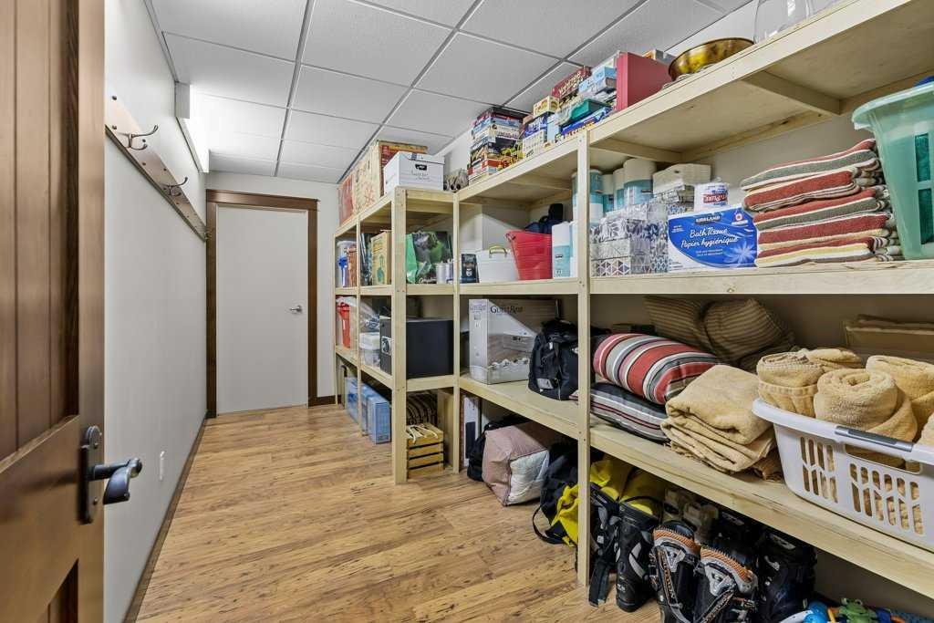 This 5-bedroom, 4046 sq ft home in the peaceful enclave of Blue Grouse Ridge offers space, comfort and mountain charm. The generous foyer opens into a spacious Great Room, featuring rich walnut flooring. In addition, select sections—such as the foyer, powder room, main-level hallway and mudroom, feature elegant travertine flooring, offering timeless natural stone appeal and durability. The living room boasts a striking Rundle stone gas fireplace and vaulted ceilings. The custom kitchen is thoughtfully designed with a premium Wolf Gourmet Range and a large island—perfect for culinary enthusiasts. Also on the main level is a spacious dining room that opens onto a large, sun-filled view deck—complete with a luxurious hot tub, rear yard, and an impressive outdoor stone wood-burning fireplace, ideal for entertaining or relaxing under the stars. The family room, with vaulted ceilings and a cozy Riverstone wood-burning fireplace, is framed by French doors that offer privacy. Up the Walnut staircase with elegant wrought-iron railings, you’ll find a serene master retreat with vaulted ceilings and a spa-like ensuite, featuring a steam shower and soaker tub. Two additional bedrooms and a four-piece bath complete the upper level. The lower level includes a home theatre room, a gym or games area, two additional bedrooms and a 4-piece bathroom, a wine cellar, an enormous storage room—and in-slab heating throughout for year-round comfort.