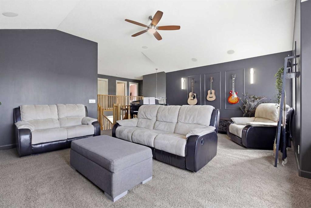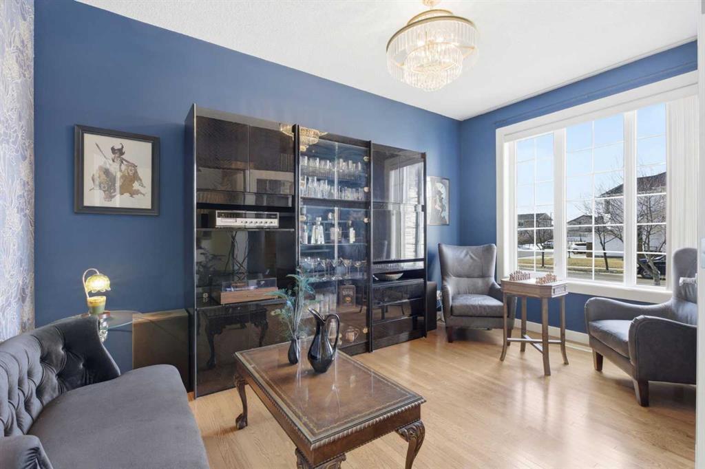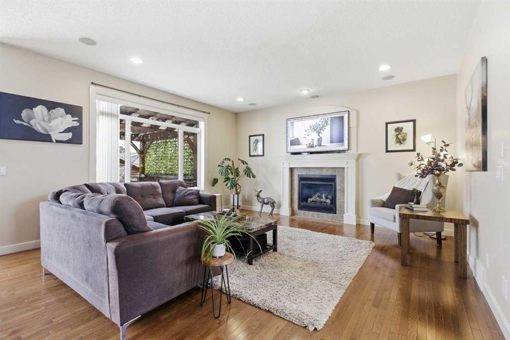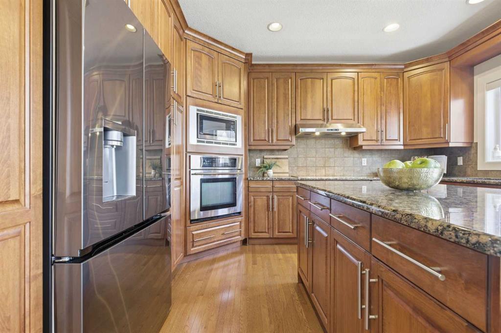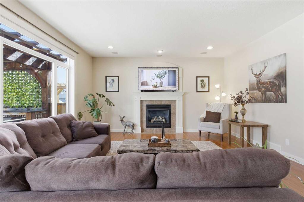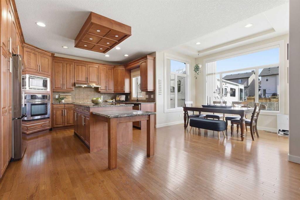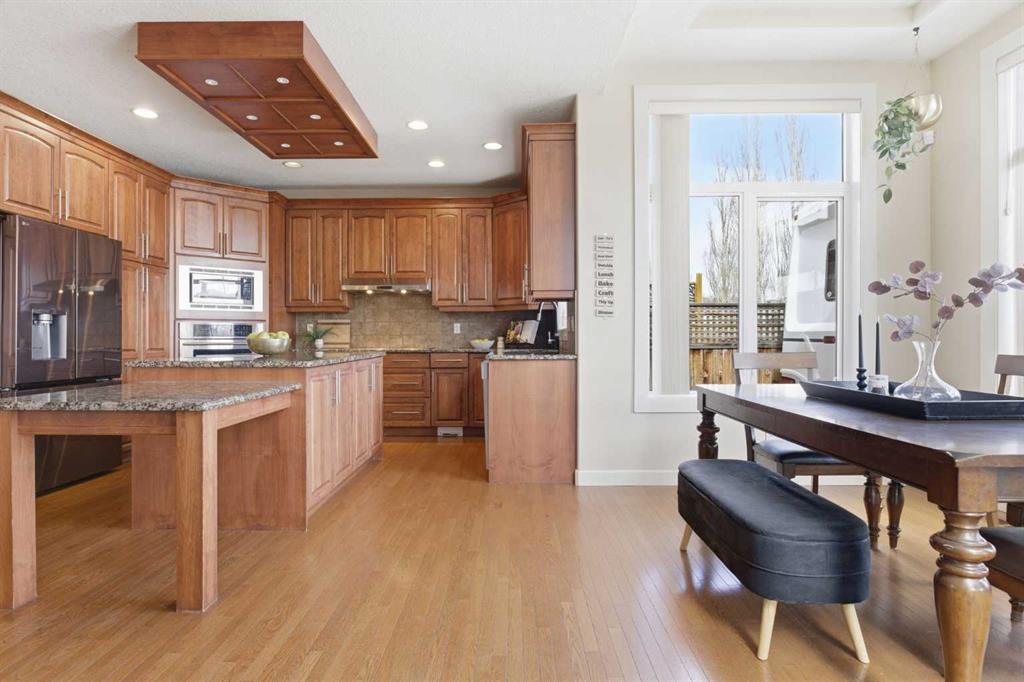 Welcome to this stunning 2490 above grade sq. ft. Landmark-built family home located in the sought-after community of Drake Landing. From the moment you step inside, you’re greeted by a dramatic foyer with soaring 18-foot vaulted ceilings, complemented by rich Sierra Oak hardwood and elegant ceramic tile flooring. The heart of the home is the gourmet kitchen, designed to impress with granite countertops, a massive island with eating bar, and full-height alder cabinetry offering exceptional storage. Outfitted with top-of-the-line appliances—including a convection wall oven, cooktop, and dishwasher—this space is perfect for both everyday living and entertaining. The inviting great room features a cozy gas fireplace and built-in CAT5 theatre sound, creating the perfect atmosphere for relaxing nights in. A versatile front flex room offers the ideal space for a home office or sitting area, while the spacious mudroom/laundry area and convenient 2-piece bath complete the main floor. Up the elegant spiral staircase, you’ll find a massive bonus/media room with vaulted ceilings and integrated CAT5 theatre sound—perfect for movie nights or family gatherings. The primary retreat is generously sized, featuring a walk-in closet and a luxurious 5-piece newly renovated ensuite with dual sinks, infloor heat, oversized glass/tile shower, and additional vanity storage. Two additional bedrooms, each with large closets, and a well-appointed 5-piece main bathroom provide plenty of space for a growing family. Additional highlights include dual-zone furnaces, central air conditioning, a brand new oversized 50 gallon hot water tank for ultimate comfort and efficiency, water softener, built in surround sound, master bath push button shower, heated insulated garage, RV parking pad, new fridge, huge pergola, and the list goes on! Step outside to enjoy the beautifully landscaped yard, complete with a massive deck and gas line hookup—ideal for summer BBQs and outdoor entertaining. Call your favourite realtor for a showing today!