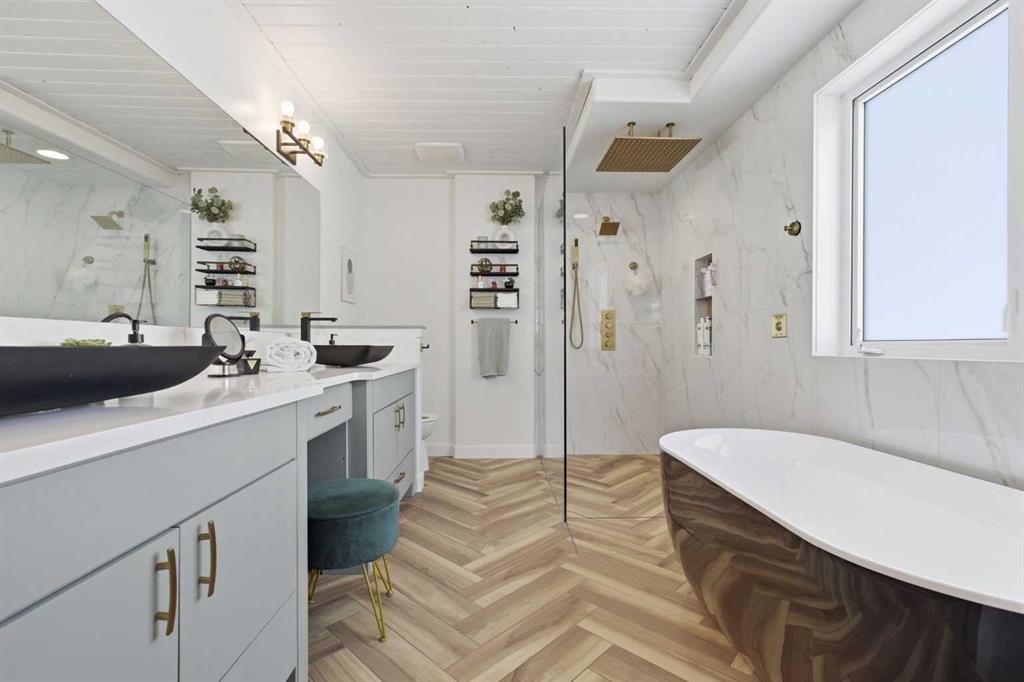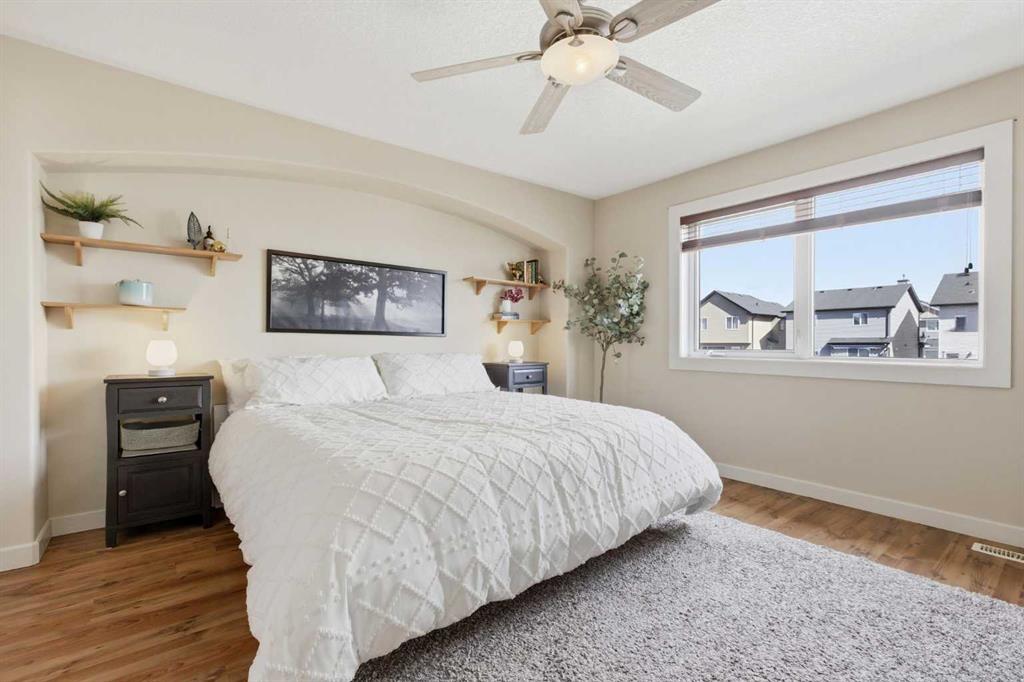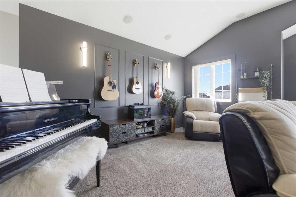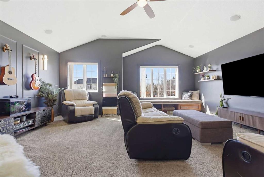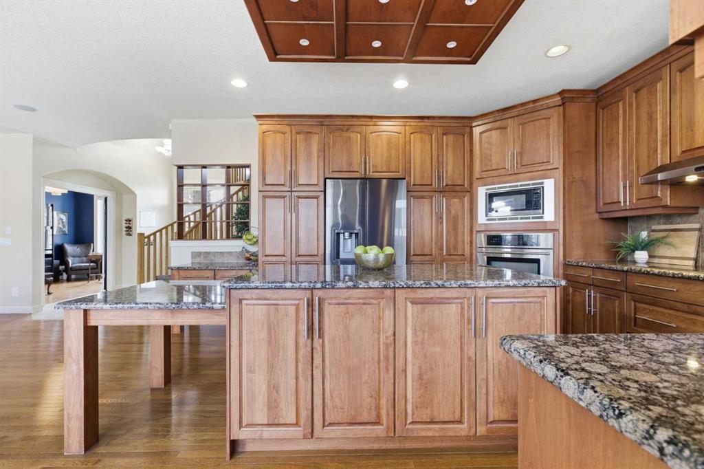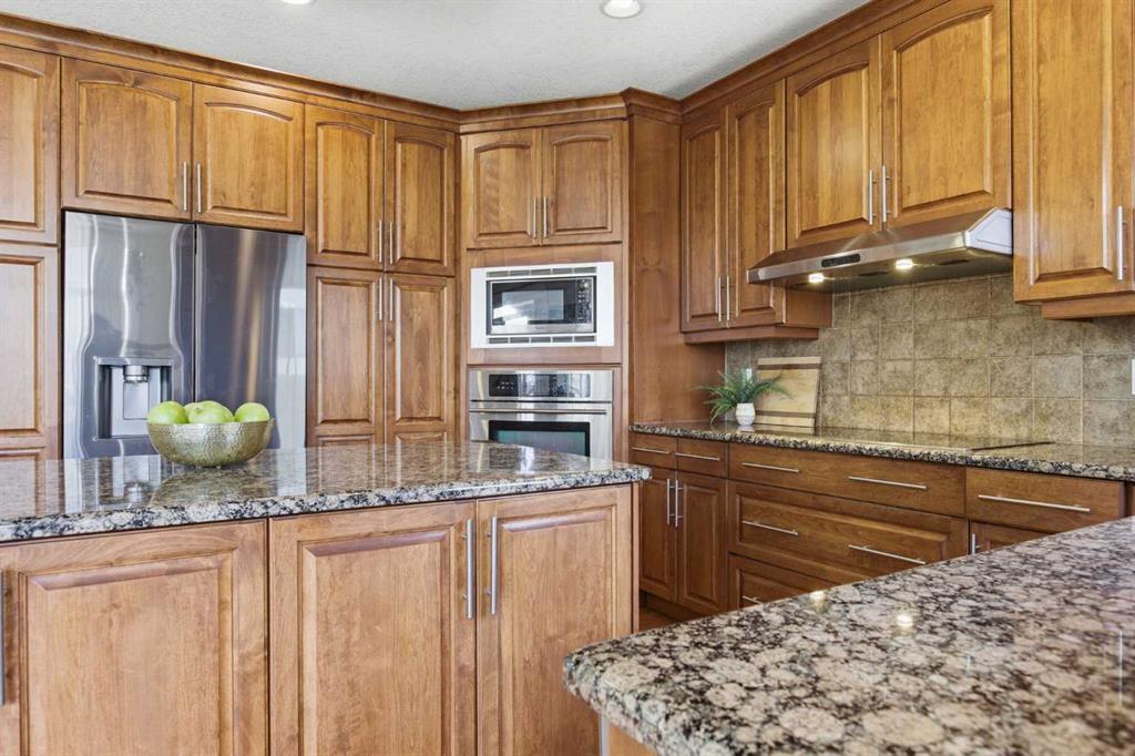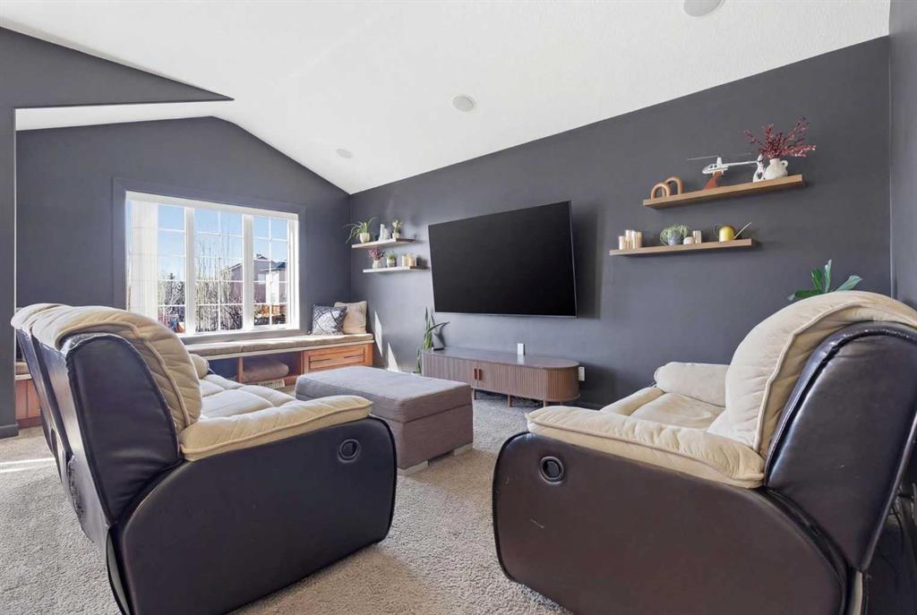 Welcome to this stunning 2490 above grade sq. ft. Landmark-built family home located in the sought-after community of Drake Landing. From the moment you step inside, you’re greeted by a dramatic foyer with soaring 18-foot vaulted ceilings, complemented by rich Sierra Oak hardwood and elegant ceramic tile flooring. The heart of the home is the gourmet kitchen, designed to impress with granite countertops, a massive island with eating bar, and full-height alder cabinetry offering exceptional storage. Outfitted with top-of-the-line appliances—including a convection wall oven, cooktop, and dishwasher—this space is perfect for both everyday living and entertaining. The inviting great room features a cozy gas fireplace and built-in CAT5 theatre sound, creating the perfect atmosphere for relaxing nights in. A versatile front flex room offers the ideal space for a home office or sitting area, while the spacious mudroom/laundry area and convenient 2-piece bath complete the main floor. Up the elegant spiral staircase, you’ll find a massive bonus/media room with vaulted ceilings and integrated CAT5 theatre sound—perfect for movie nights or family gatherings. The primary retreat is generously sized, featuring a walk-in closet and a luxurious 5-piece newly renovated ensuite with dual sinks, infloor heat, oversized glass/tile shower, and additional vanity storage. Two additional bedrooms, each with large closets, and a well-appointed 5-piece main bathroom provide plenty of space for a growing family. Additional highlights include dual-zone furnaces, central air conditioning, a brand new oversized 50 gallon hot water tank for ultimate comfort and efficiency, water softener, built in surround sound, master bath push button shower, heated insulated garage, RV parking pad, new fridge, huge pergola, and the list goes on! Step outside to enjoy the beautifully landscaped yard, complete with a massive deck and gas line hookup—ideal for summer BBQs and outdoor entertaining. Call your favourite realtor for a showing today!