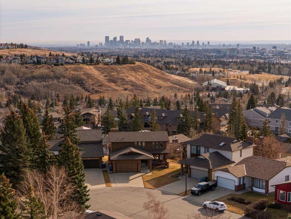 Welcome to 16 Edgeland Bay NW, a remarkable two-storey home in the prestigious community of Edgemont. Perfectly situated on a massive pie-shaped lot of over 11,100 sq. ft., this property enjoys a quiet cul-de-sac location and offers sweeping panoramic views of the city skyline—a true one-of-a-kind setting. The exterior showcases a timeless design with a striking blend of brick and wood siding, complemented by painted trim accents. A covered front porch creates a welcoming entrance and adds charm to the façade. Inside, the main level offers a thoughtful and spacious layout featuring a bright living area, a formal dining room, and a kitchen complete with appliances and plenty of cabinetry. Adjacent to the kitchen is a cozy nook and a family room highlighted by a classic brick wood-burning fireplace with a full mantel, creating the perfect spot for relaxing evenings. This level also includes a 3-piece bath, laundry room, and convenient access to the first balcony, where you can step outside to enjoy the breathtaking city views. Upstairs, the home provides ample family space with three bedrooms. The primary suite features its own 4-piece ensuite, walk-in closet, and a private balcony overlooking the city. While the second and third bedrooms are accommodated by a shared 3-piece bathroom. A spacious bonus room complete the upper level, offering multiple spaces to relax and enjoy the views. The walk-out basement extends the living space and is fully finished with a huge family/recreation room, a dining area, and a second kitchen—perfect for multi-generational living or entertaining. A 2-piece bath, plus an unfinished storage and utility room, provide both functionality and flexibility. Step outside to the concrete patio, an ideal setting for outdoor gatherings. The expansive backyard is beautifully maintained and features not one but two garden sheds for extra storage. With its size, privacy, and sweeping views, the yard is a true outdoor retreat. This home also features upgrades such as a new hot water tank (replaced in 2021), new furnace (replaced in 2012) and a new water softener (replaced in 2012). Located in the highly sought-after community of Edgemont, residents enjoy top-rated schools, abundant parks and pathways, and easy access to shopping, transit, and major routes. Don’t miss this rare opportunity to own a view property on an oversized lot in one of Calgary’s most desirable communities. 16 Edgeland Bay NW offers space, character, and unmatched potential—schedule your private showing today!
