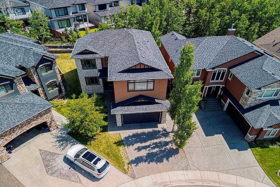 Location, location, location. This executive two-storey estate home is ideally situated in the sought-after community of Rock Lake Estates, cornering onto a treed green space and offering quick access to parks, walking paths, top-tier schools, and major routes including Crowchild Trail, Stoney Trail, and Highway 1A for easy mountain getaways. With over 3,700 square feet of developed living space, this home provides ample room for a growing family. Enter into a large foyer with soaring 20-foot ceilings and an open spiral staircase. Circular open staircase presents a very open-concept connecting the spacious living room, complete with a three-sided gas fireplace, to the dining area and gourmet kitchen. The kitchen features stainless steel appliances, a gas range, built-in oven and microwave, granite countertops, a large working island with eating bar, and a corner pantry. Maple hardwood flooring flows throughout the main level, which also features a private office with double doors, a walk-through mudroom with abundant storage connecting the front entry to the attached back landing going to the double garage, a generous laundry room, and a stylish two-piece bathroom. Step outside from the kitchen to a large deck, perfect for relaxing or entertaining while overlooking the fully fenced and landscaped backyard. Upstairs, you’ll find a spacious bonus room with a built-in entertainment centre and gas fireplace, offering mountain views on clear days. The master bedroom is it’s own private retreat , featuring a three-sided fireplace, private upper deck, and an ensuite with steam shower, jetted soaker tub, dual vanities, and a large walk-in closet. Two additional bedrooms and a four-piece bathroom complete the upper level, with new vinyl plank flooring in the upstairs bathroom and updated lighting in all bathrooms above grade. The fully finished basement adds even more livable space and offers excellent potential for future customization, featuring a large recreation area, two additional bedrooms, a three-piece bathroom, and durable vinyl plank flooring throughout. Thoughtfully designed and ideally located, this exceptional property presents a truly outstanding investment opportunity.