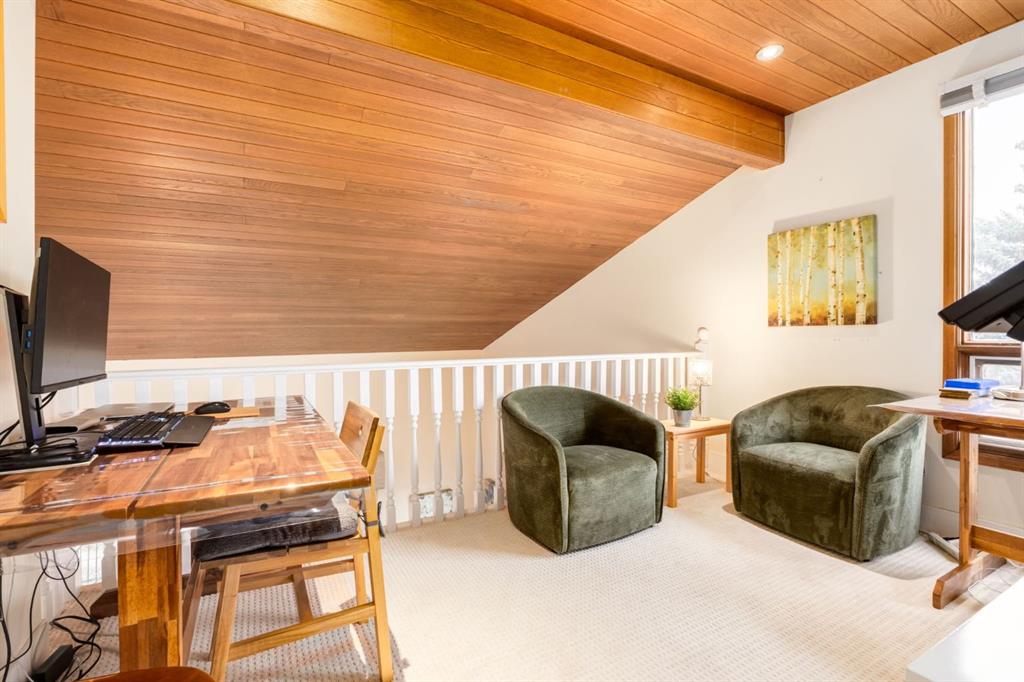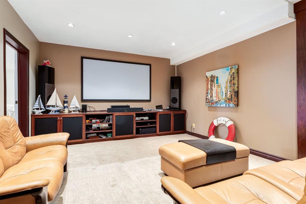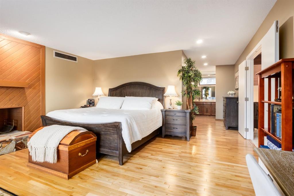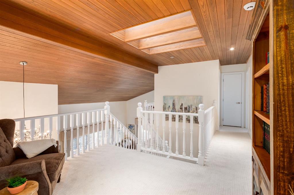 Perfectly positioned on a quiet cul-de-sac, this exceptional home captures breathtaking panoramic views of the mountains, COP and downtown while offering the privacy and serenity of a mature, beautifully landscaped setting. Situated on a large, spacious lot with towering trees and lush green space, the property provides a peaceful retreat just minutes from city amenities. The backyard showcases a hot tub with views of the valley and surrounding beautifully landscaped backyard with many perennials, a waterfall feature and rockwork. Step inside to discover a thoughtfully designed main floor featuring new carpet and an inviting layout ideal for both everyday living and entertaining. The spacious kitchen is truly the heart of the home, showcasing a large island with breakfast bar seating, quartz countertops, high-end stainless steel appliances including a Wolf cooktop, Sub Zero fridge, Miele dishwasher, and abundant counter space and cabinetry. Two bright eating nook areas provide flexible dining options and seamless access to the sprawling screened-in back deck—perfect for enjoying warm evenings while overlooking the expansive backyard. Just off the kitchen, the welcoming family room offers a cozy fireplace with tile surround and large wraparound windows that fill the space with natural light. The great-sized living room features a stunning vaulted beamed ceiling and a large front-facing window overlooking the charming patio space, creating an elegant yet comfortable setting for gatherings. A convenient main floor laundry room and 2pc powder room adds everyday functionality. Upstairs, skylights flood the upper level with natural light. The primary suite is a true sanctuary, complete with its own wood-burning fireplace and mantle, picturesque mountain and COP views, and a spacious walk-in closet. The luxurious 5-piece ensuite includes a dual vanity, standalone shower, and deep soaking tub. Two additional bedrooms, a full 5-piece bathroom, and a versatile loft space complete the upper level. The fully finished walkout basement expands your living space with incredible versatility. This level features a lower den ideal for a home office or play area, a fourth bedroom, and a 4-piece bathroom with a soaking tub and standalone shower. The generous recreation room includes a wet bar and home gym space with floor to ceiling mirrors, while a dedicated theatre room creates the perfect space for movie nights and entertaining. Numerous thoughtful upgrades include new carpet on the main and upper floors, freshly painted upstairs ceilings and rooms, new window coverings, updated bathroom faucets and toilets, and the addition of a fourth bedroom in the basement. The garage has been enhanced with a heater and newly painted floor, and the exterior boasts a new fence, irrigation, and a dedicated dog run. Steps to Silvercreek Park which leads directly into Bowmont Park that boasts 164 hectares of river front pathways, hiking trails, bridges, and sandy shores!