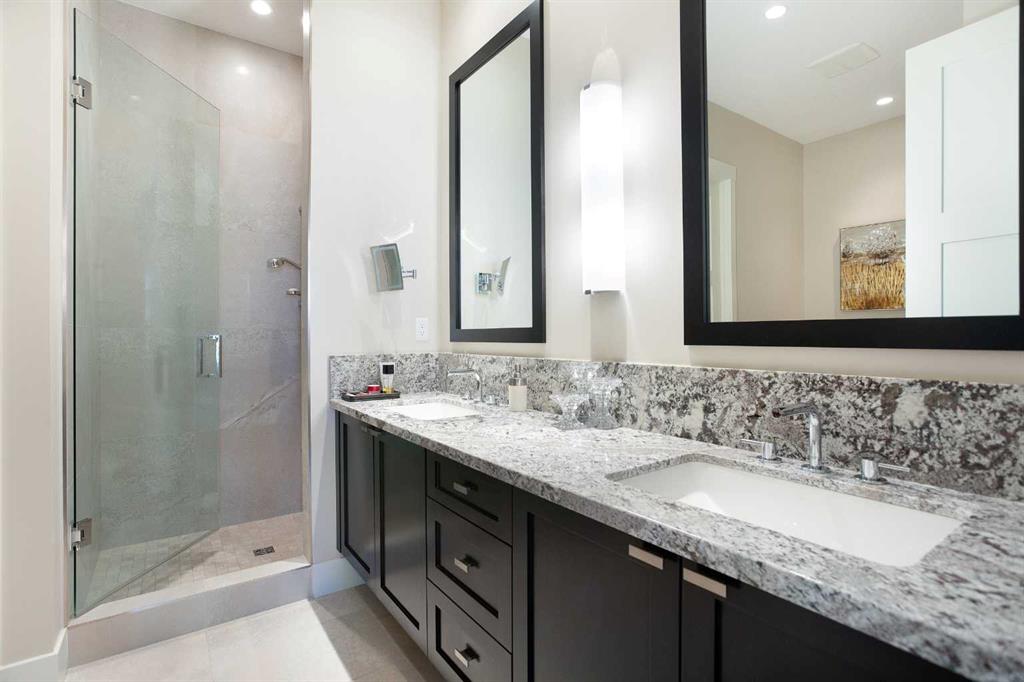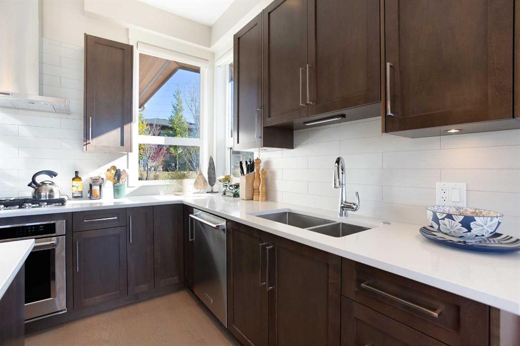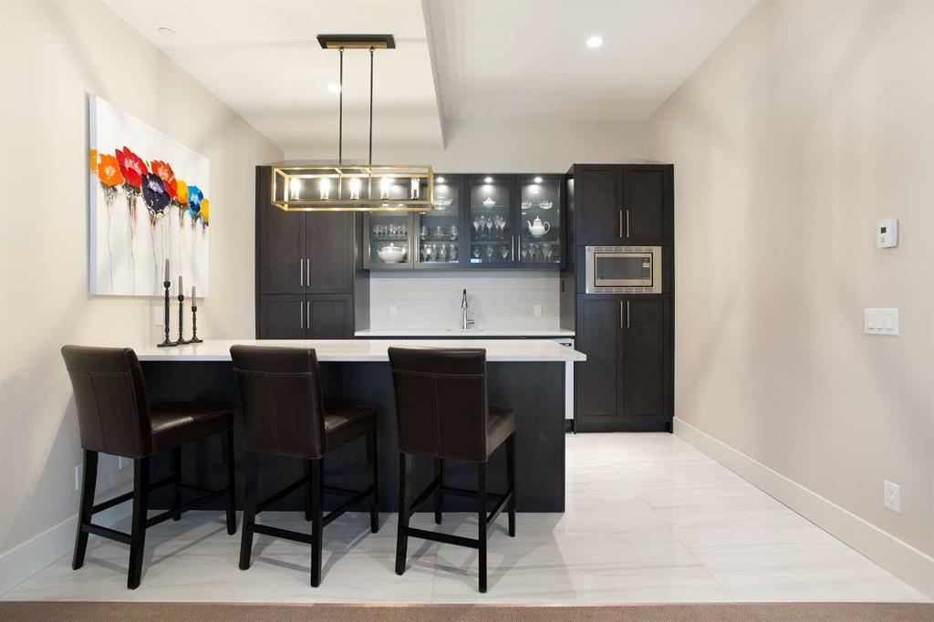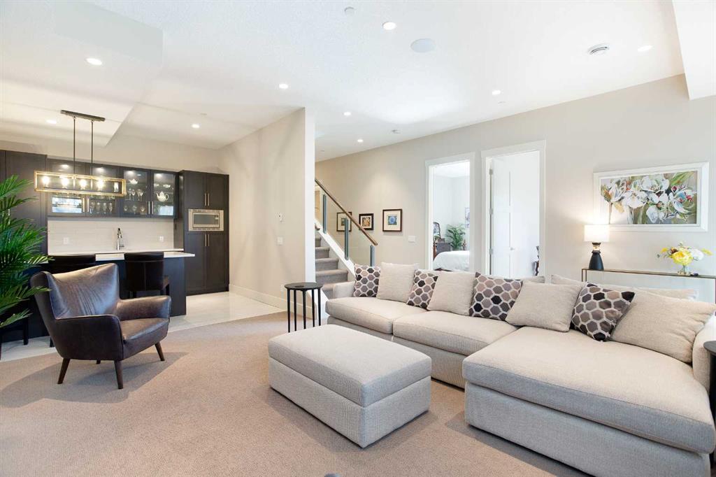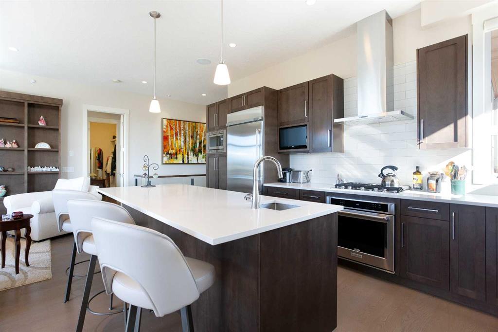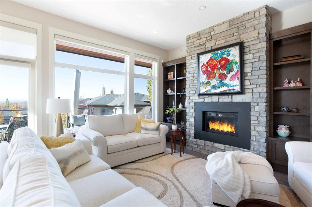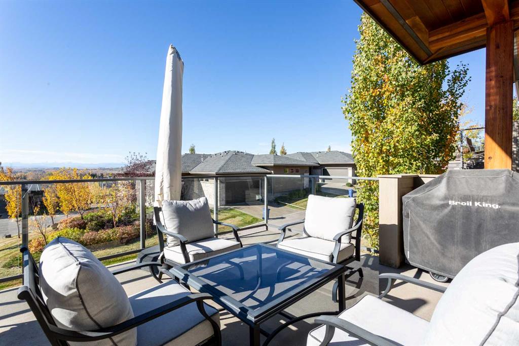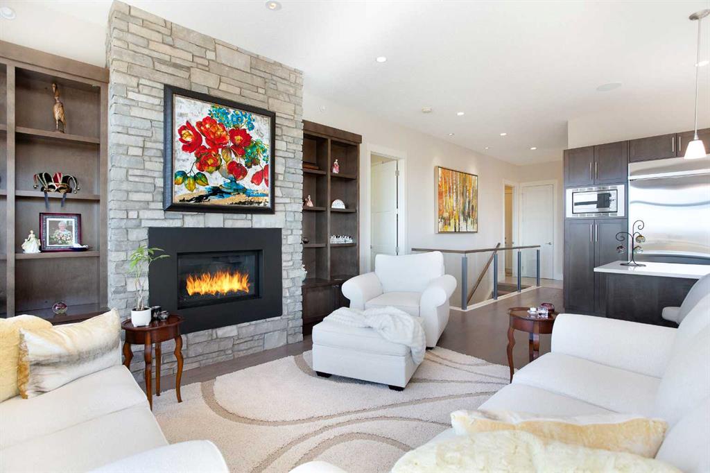SUNSETS + SERENITY IN WATERMARK | An exceptional opportunity to own the property of desire in the Villas at Watermark! An elegant, sophisticated private Luxury Villa on the West side of Calgary. This unit boasts exclusive upgrades and views, and is the largest floorplan that was constructed in the development! Thoughtfully designed to capture the unparalleled, expansive views of the Golden Foothills and incomparable Rocky Mountains! From every room you are able to enjoy this landscape, ensuring that you feel at one with nature while enjoying the elegant amenities of this home! Soaring 10′ ceilings and massive windows throughout create an uncommonly bright and airy living space that blends harmoniously with the warm and contemporary finishes. The main floor is thoughtfully laid out with a large open concept kitchen and living area. Modern, clean finishes for the kitchen with quartz counters, oversized island, extra windows, Stainless Steel professional grade appliances that provides everything for inspired home chefs. Form and function converge to perfection with the interior that showcases a main living space that features a gas fireplace with with stunning stone facing and custom built-in millwork shelving to feature books, art or other ornamental design details. Also included is a very ample dining space for the more formal affairs of entertaining. Take a short stp outside and you are now able to enjoy a large raised westerly facing deck, to enjoy a higher standard of indoor/outdoor living. Includes maintenance free decking and natural gas line for your barbecue. The Master Bedroom is a spacious place to enjoy private time, and is west facing, allowing to continue to enjoy the incredible views. A walk-in closet and 5 piece spa-like ensuite complete this level. This unit also boasts a main floor office that allows an executive at home professional work space, a large main floor laundry space removed from the main living area and attached double garage. The professionally developed walkout basement features in-floor radiant heat, a large open media/entertainment space and a custom built wet bar. Includes a dishwasher and bar fridge as well as custom cabinetry and built-ins. Two spacious bedrooms are included in the basement as well, with a second 4 piece ensuite bath and full 4 piece main bath. Step outside again and enjoy a covered patio with westerly facing views and professionally landscaped yard. This beautiful unit also includes central air conditioning to help enjoy the space even more. Other features to enhance your lifestyle at the Villas at Watermark include a private clubhouse with fitness centre and recreational party room – yours to use for special celebrations or to partake in the ongoing community events. This connected ‘town and country’ location is within a 5 minute drive to all amenities, transit and major routes, making it quick and easy to get anywhere in the city. A rare opportunity in this sought after development, call to view today!