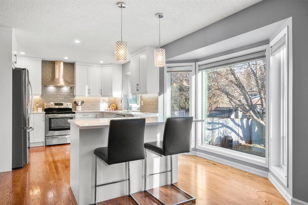 Rare opportunity in SW Calgary — 5 bedrooms above grade and 6 beds total!!!! Designed for BIG families, this spacious home offers an exceptional layout with five bedrooms upstairs, a fully finished lower level & unbeatable walkability to Woodbine School, athletic fields, playgrounds & parks — a combination rarely found. Ideally located just down the road from Fish Creek Park – one of Canada’s largest urban parks = year-round recreational opportunities like walking, hiking, biking, fishing, swimming, wildlife viewing. Proximity to this park facilitates a lifestyle focused on nature, offering a quiet, scenic escape from busy lives! Quick access to Stoney Trail, Costco & everyday amenities, this is a neighbourhood families love for lifestyle & convenience! The bright main floor features HW flooring throughout. Lovely large FOYER with sitting area that doubles as storage. Front living area/dining area for those big family gatherings. Fully renovated WHITE kitchen with stone countertops, SS appliances, hood fan, Lovely Island with room for up to 5 stools! Lovely sunny area for plants. Great flow into the large family room with wood burning fireplace — perfect for daily life and keeping everyone connected. Door here leads you directly out to your deck! Beautiful EAST light fills the home with SUN in the morning! 2 piece bath & laundry on this level. Upstairs includes all 5 bedrooms on ONE level. One used as office now. Bedroom at top of stairs – large enough to be a BONUS room as well! Generous primary retreat with vaulted ceilings & 5 piece ensuite with private toilet closet. HUGE walk in closet. The fully finished basement adds flexibility with a large rec room, fireplace, wet bar, full RENOVATED bath, sixth bedroom (window not egress) & TONS of storage! Two fireplaces, good sized rooms & multiple living spaces – make this a home built to grow with your family. Windows new in 2014 (top 2 levels), Roof new shingles in 2018, Furnaces (2) original but serviced regularly, 2 HWT (2025, 2022). NO poly B. AC. Kitchen reno completed in 2020 – all new appliances. Woodbine offers SO much. Shops and more schools in area, amenities, fun places to dine, soccer fields and hockey rinks and even riding stables. 24 min drive downtown and 35 min drive to the airport. Head to the mountains in under an hour. What are you waiting for? Call today and book your showing!