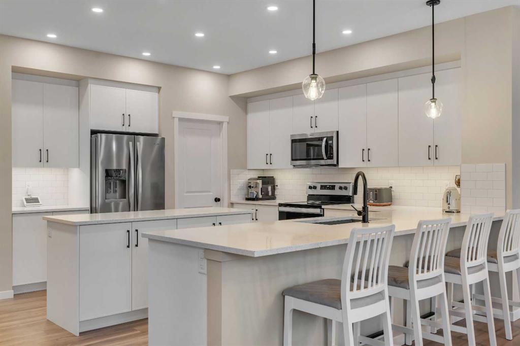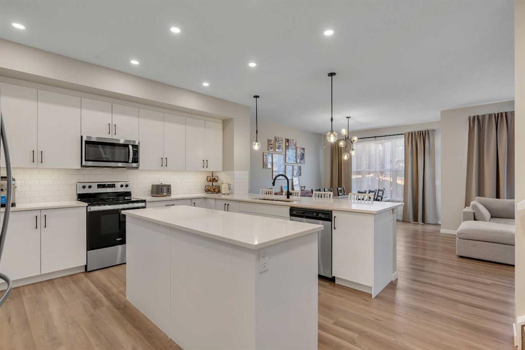 Welcome to 160 Magnolia Terrace SE. A stunning 5-bedroom, 3.5-bathroom home that perfectly blends luxury, comfort, and everyday functionality. From the moment you arrive, you’ll appreciate the pleasant curb appeal and inviting presence of this beautifully maintained residence. Step inside to a spacious front entry with extra closet space, setting the tone for a thoughtfully designed home. Luxury vinyl plank floors flow throughout the main living areas, complemented by a current, modern colour palette that feels both warm and timeless. The heart of the home is the large gourmet kitchen, featuring quartz countertops, a centre island, breakfast bar, ample cabinetry, and a walk-through pantry connecting directly to the mudroom—perfect for busy family life. The living room is anchored by a cozy gas fireplace, while the spacious nook easily accommodates family meals and entertaining. The main floor also offers a dedicated office/flex room, ideal for working from home. Upstairs, you’ll find an impressive layout with four bedrooms, a full laundry room, and still plenty of space for a large bonus room—a rare find in homes of this size. The primary retreat is a true escape, complete with a luxurious 5-piece ensuite, walk-in closet, and the added privacy of a separate door to the toilet—an uncommon and highly desirable feature. Three additional generously sized bedrooms share a well-appointed 4-piece bathroom. The 9-foot basement ceilings open up endless possibilities. Enjoy a finished recreation room, plus an additional bedroom and bathroom, making it ideal for guests, teens, or extended family. Outside, the spacious backyard invites you to relax, entertain, and enjoy the outdoors. Added comforts include central air conditioning, ensuring year-round comfort. Located in the sought-after lake community of Mahogany, residents enjoy access to two private beaches, scenic wetlands, walking pathways, and an abundance of nearby schools, parks, playgrounds, shopping, and dining.