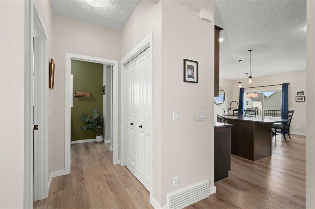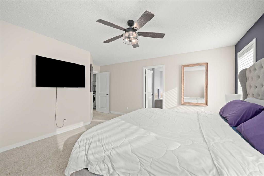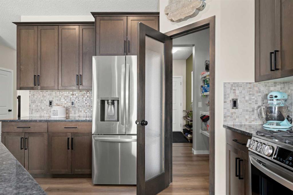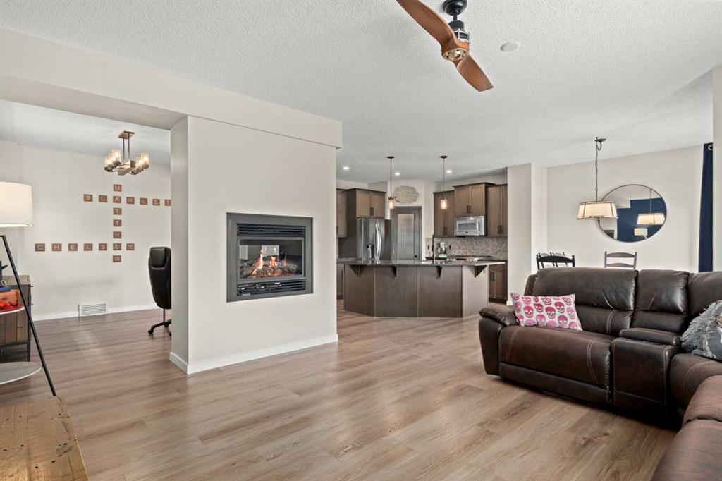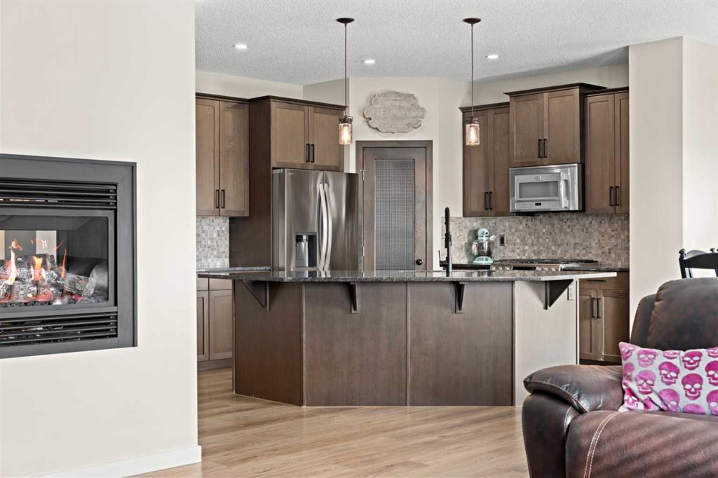 5 BEDROOMS. WALKOUT. SEPARATE LOWER LEVEL. MEANINGFUL UPGRADES. This five-bedroom walkout in Reunion offers over 3,300 square feet of finished living space across three levels. Updated where it counts and maintained with meticulous care, this home is complete, functional, and ready. The 2024 roof carries one of the highest available hail resistance ratings, a meaningful upgrade in this market. The heated garage goes beyond parking, with high ceilings, tire racks, and overhead shelving that keep seasonal items, sports equipment, and gear organized. Central air conditioning, a gas water heater, and a water softener keep the home comfortable year round. Inside, the main floor opens with an open-to-above foyer fitted with an automatic blackout blind, a small detail that makes a noticeable difference on hot summer afternoons. Nine-foot ceilings stretch across the rest of the level. The kitchen is anchored by granite countertops, a large centre island with bar seating, a gas range, and a walk-through pantry that connects directly to the mudroom. Stainless steel appliances have been updated within the past year, and additional pot lights brighten the space. A breakfast nook off the kitchen opens onto the balcony, equipped with a gas line for the BBQ. The mudroom connects directly to the garage and features a sink and built-in bench seating with storage underneath. New luxury vinyl plank flooring runs throughout the main level, and select windows are fitted with custom coverings. Upstairs, the bonus room offers a flexible space for a media room, playroom, or casual family lounge. The primary bedroom has a walk-in closet and an ensuite with dual vanities, a soaker tub, and a separate shower. Two additional bedrooms, a main bathroom with updated countertop and cabinetry, and upper-level laundry with a brand new washer and dryer complete this floor. The lower level adds nearly 1,000 square feet of fully finished living space, complete with two bedrooms, a den, a full 4-piece bathroom, a gas fireplace with blower fan, and a separate laundry hookup for a future washer and dryer. With walkout access to the backyard, this illegal suite functions independently. Whether used for extended family, older teenagers, long-term guests, or generating additional income, it offers flexibility that is increasingly hard to find. The backyard reflects the same level of care. A generous concrete pad, walkways, and steps along both sides of the home create a clean and functional flow from front to back. The covered patio below has been retrofitted with weather shielding that redirects rain to the sides, allowing the space to be used comfortably even on stormy days. Reunion is one of Airdrie’s most established communities. Herons Crossing School is walkable, Genesis Place recreation centre is nearby, and Nose Creek Park and its pathways are woven throughout the neighbourhood. QE II keeps Calgary within easy reach. This is a home that has been lived in with care and maintained with intention.