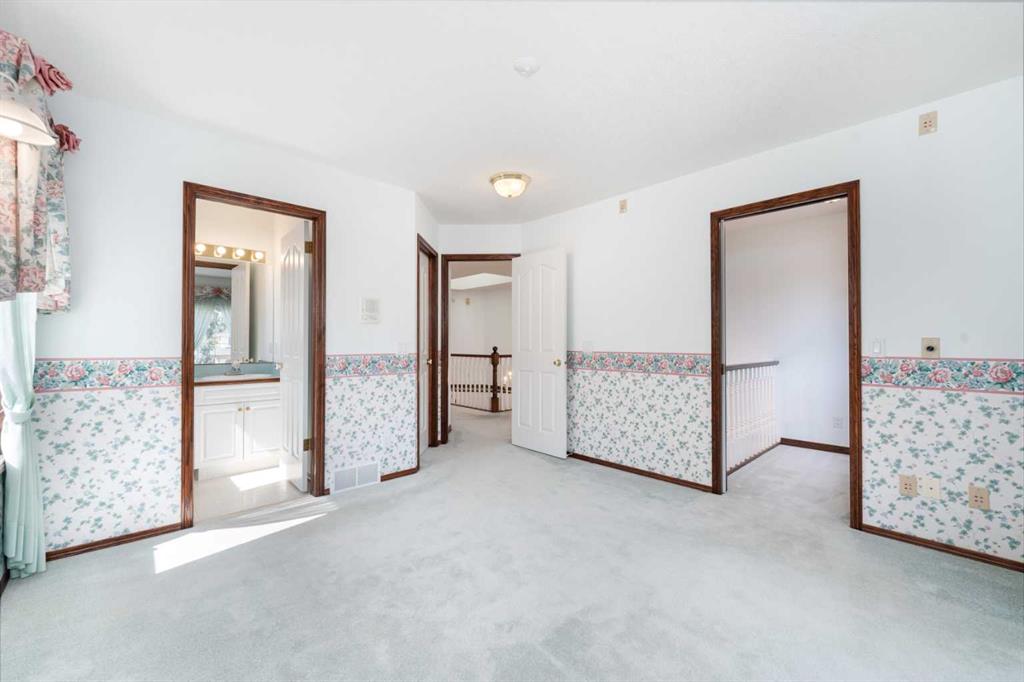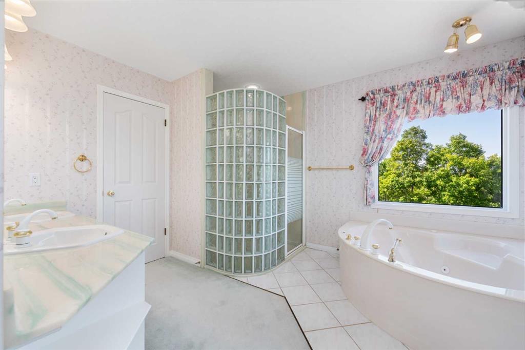 Welcome to your new, perfectly located home! These homes on the ridge don’t come onto the market often so this is your chance to get into a home that is in one of the best locations in the estate area of Evergreen! Unmatched views, luxury, privacy, peace and quiet and a custom built home await you with an abundance of nature right outside your back yard! This home was carefully custom built by a European master craftsman and is offered for sale by the original owner. As you enter, you are greeted by soaring ceilings, generous sized entryway with a den/flex room at the front of the house and a dining room with a built in china cabinet on the other side of the entryway. As we make our way through the entry you have a formal dining room (could double as a den with glass doors for privacy) through to the main living areas you have a gorgeous living room with a fireplace, custom built ins and THREE skylights! The kitchen offers the best views to the west of the yard and Fish Creek, ample counter and cabinet space, gas cooktop, wall oven, corner pantry and tiled backsplash! The main floor is completed with a half bath, mud room with laundry and a sink and access to the MASSIVE double garage that can easily accommodate 3-4 vehicles (and it has heated flooring and a drain!) Let’s make our way up the elegant curved staircase to the Primary suite that has a walk in closet, a double sided fireplace, dual sinks in the vanity, separate shower and tub with the most amazing views! (You will fall in love!) In addition to the primary bedroom there are THREE more bedrooms and two of them have ensuite bathrooms and there is also a full bathroom upstairs! The huge basement is awaiting your creative ideas and has plenty of room for future development! Other amazing features are the hail resistant upgraded shingles, the 1 year old massive deck, low maintenance yard (no grass), gas firepit in the back yard, custom woodwork throughout this home, heated floors in the basement and garage, 2 furnaces and 2 hot water tanks, Fish Creek and Mountain views and gleaming hardwood flooring on the main floor! You are also just minutes away from Stoney Trail, tons of the areas amenities, parks, playgrounds and schools! This home offers the perfect blend of luxury custom built finishes, functional upgrades and an unbeatable location! Whether you enjoying a quiet morning coffee with park views, hosting a summer BBQ by the firepit or warming up by one of the fireplaces – this property is thoughtfully designed for comfort, style and a wonderful home to raise your family in!