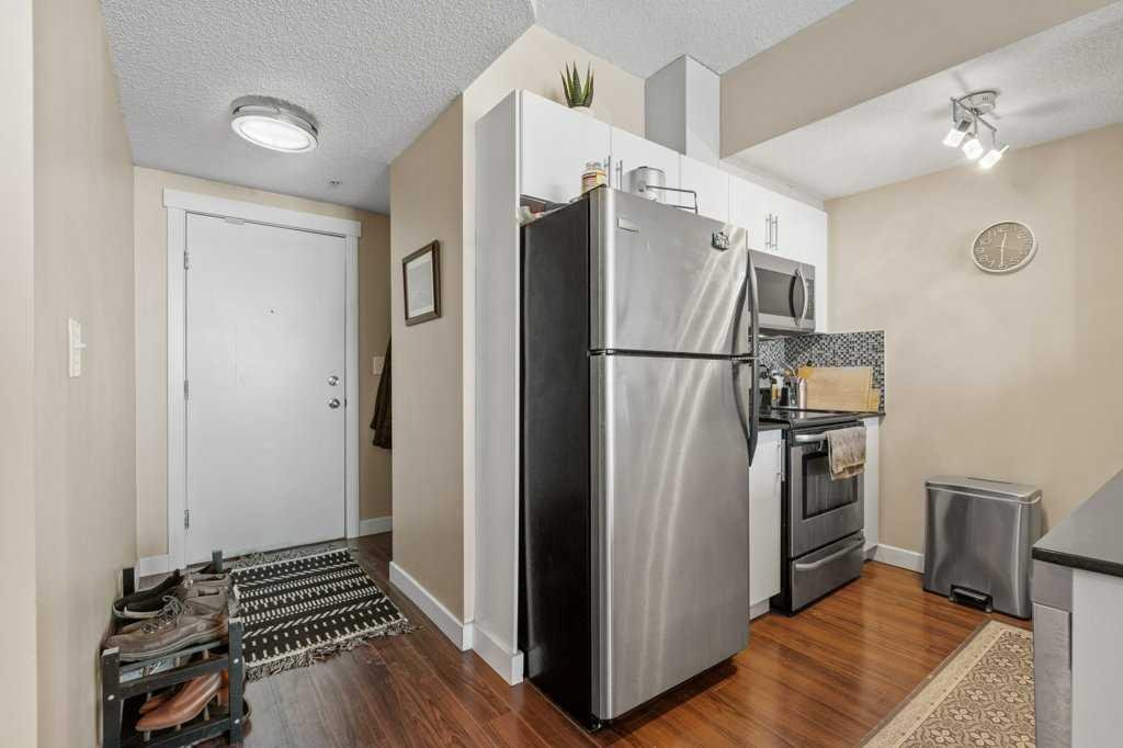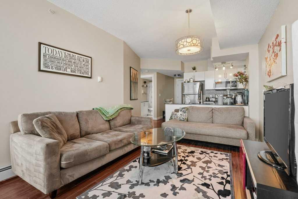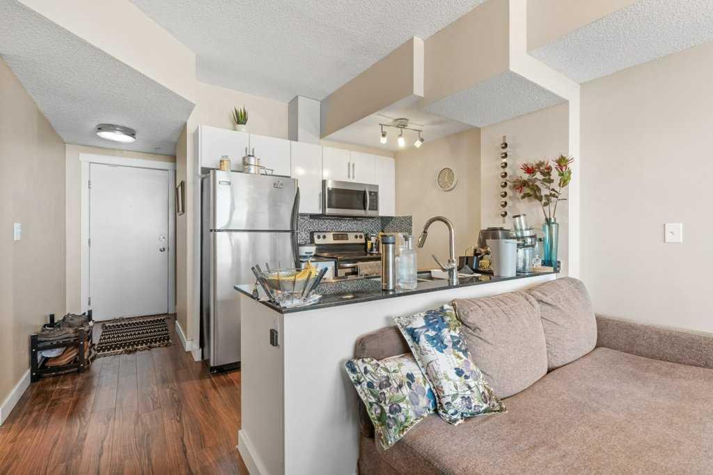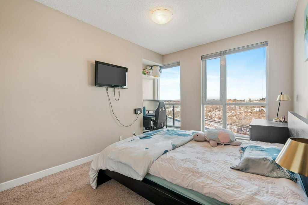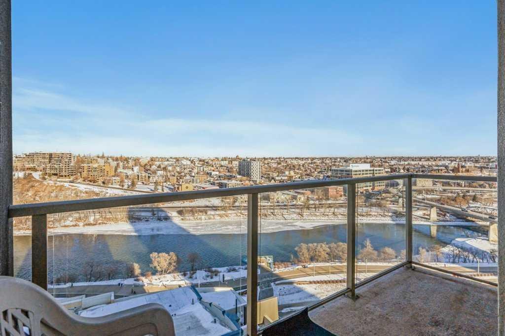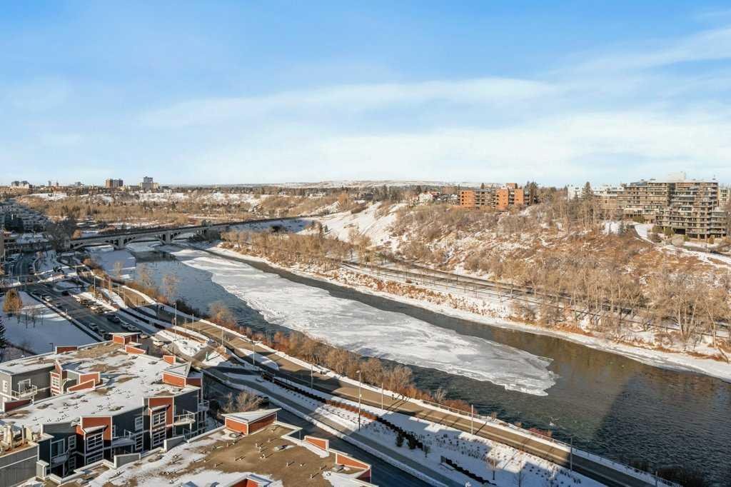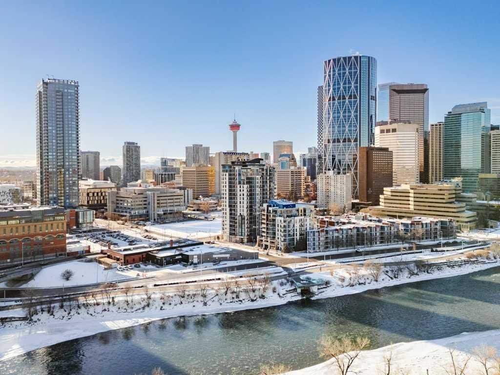 Welcome to Unit 1601 in the 325 building of Riverfront Pointe, a thoughtfully designed property offering the perfect balance of vibrant inner-city living and peaceful riverside serenity, just steps from the Bow River and minutes from the city centre. Upon entry, you’re greeted by a spacious foyer complete with a large coat closet and convenient in-unit laundry. The open-concept kitchen, dining, and living area is ideal for entertaining, enhanced by 9-foot ceilings and an abundance of natural light. Floor-to-ceiling windows frame stunning views of the Bow River, Centre Street Bridge, Reconciliation Bridge, St. Patrick’s Island, and the surrounding communities of Bridgeland and Crescent Heights. A private balcony captures these views beautifully, offering a front-row seat to Calgary’s seasons year-round. The well-appointed primary bedroom features two generous closets and a private 3-piece ensuite. A spacious secondary bedroom with ample natural light, along with a full 4-piece main bathroom, completes the functional layout. The efficient floor plan maximizes space, with thoughtful built-in shelving throughout the living room, bedrooms, and utility space adding both style and practicality Additional highlights include one titled underground parking stall and access to a fitness facility located in Tower C, conveniently reached through the parkade or at street level. Located in the heart of East Village, you’re within walking distance to grocery stores, coffee shops, restaurants, the Calgary Public Library, public transit, river pathways, and nearby green spaces including St. Patrick’s Island, Sien Lok Park, and Prince’s Island Park. Whether you’re an investor or an urban buyer seeking lifestyle and location, this riverfront home delivers exceptional value and everyday enjoyment.
