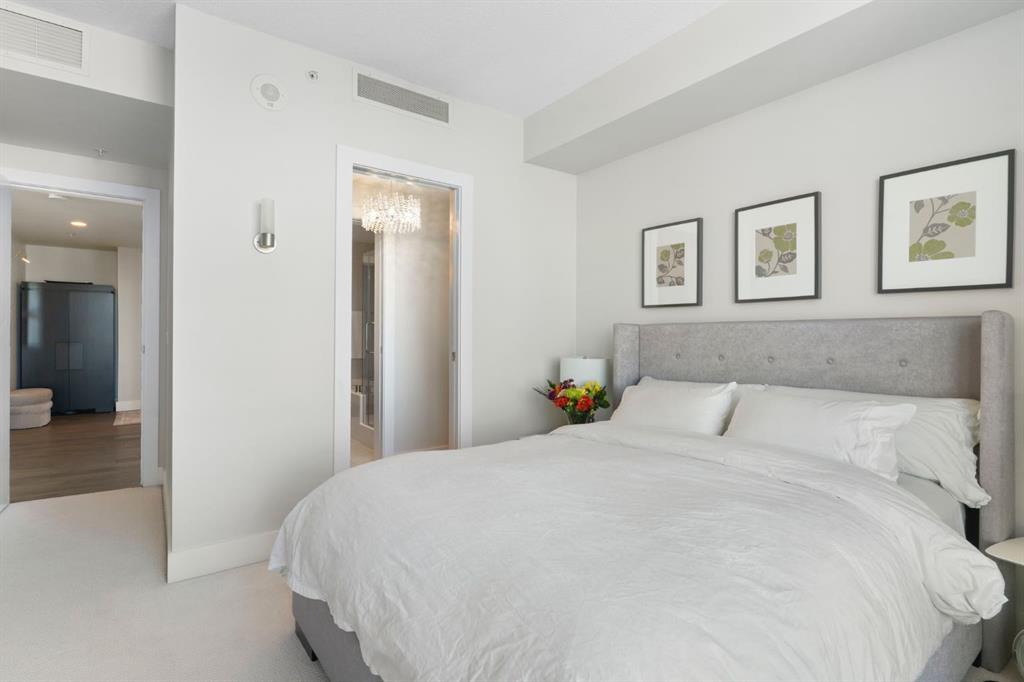Experience elevated downtown living in this stunning 16th-floor residence at the iconic Arriva Tower. Spanning 1,367 sq. ft., this bright and airy corner unit offers 2 bedrooms, 2 bathrooms, and uninterrupted east facing views through floor to ceiling windows that capture the morning light and stretch across the city skyline and Bow River valley. The orientation provides an incredible sense of privacy and tranquility, paired with sweeping, ever changing vistas.