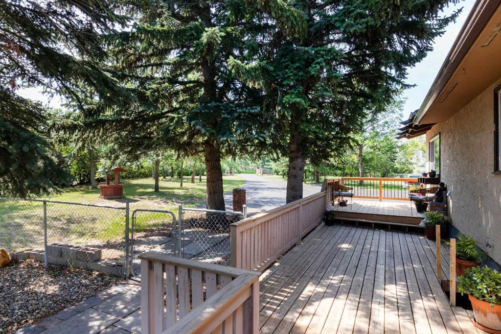 Welcome to this ‘close in’ charming starter acreage with quick highway access to south Calgary’s numerous amenities in Shawnessy & Seton including the South Calgary Hospital. Approx. 4 minutes to Seton and 10 minutes to Shawnessy. Situated on 4.1 acres the property has a private country feeling and is beautifully treed with mature vegetation and is fenced and cross-fenced with 2 large pastures inter-connected at the side and back of the property suitable for horses. The entry is gated and driveway paved including being resealed. The acreage also features a 14’ x 22’ heated studio perfect for an artist, separate office space or kids’ play area as well as a 22’ x 36’ workshop. This character filled home has been well-maintained with 2,200 sq. ft. of developed space with 1,361 sq. ft. on the main floor. There is a 2-car attached garage for colder nights, newer large front and rear decks ideal for outdoor relaxation, as well as a fenced area for the fur babies or kiddos. With a total of 4 bedrooms and 2 bathrooms this bright home is an ideal young family acreage or for those looking to have their first acreage. The main floor has a cozy sunken family room with brick faced fireplace, exposed beams and vaulted ceiling, with a somewhat Spanish influence feel dining nook off to the side. The kitchen is bright and has a traditional feel with good counter space. Three bedrooms on the main floor and 4-piece bathroom and an extra flex living space complete that level. The lower level is fully finished and is set-up as an illegal suite with full kitchen, bedroom, spacious 3 pce bathroom/laundry room combination and a cozy living area. Could also be a great teenager or mutli-generational living space. Over recent years since purchasing the owner has maintained the home and added or replaced various items. A significant addition was having a new well drilled in 2025 improving the pumping rate. Other work has included new vinyl windows, replacing the vacuum system, adding vents, newer toilets, newer appliances in the basement, newer fixtures in bathrooms, ceiling fans, carpets, painting, attic insulation, updating of some wiring, replaced eavestroughs & gutters, new man door in garage, new hot water tank 2025, new carpet in the basement, added kitchen hood vent, newer ceiling fans and other items.
