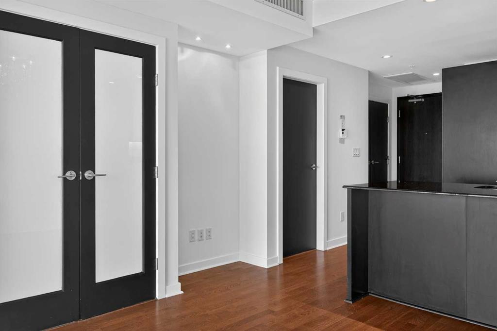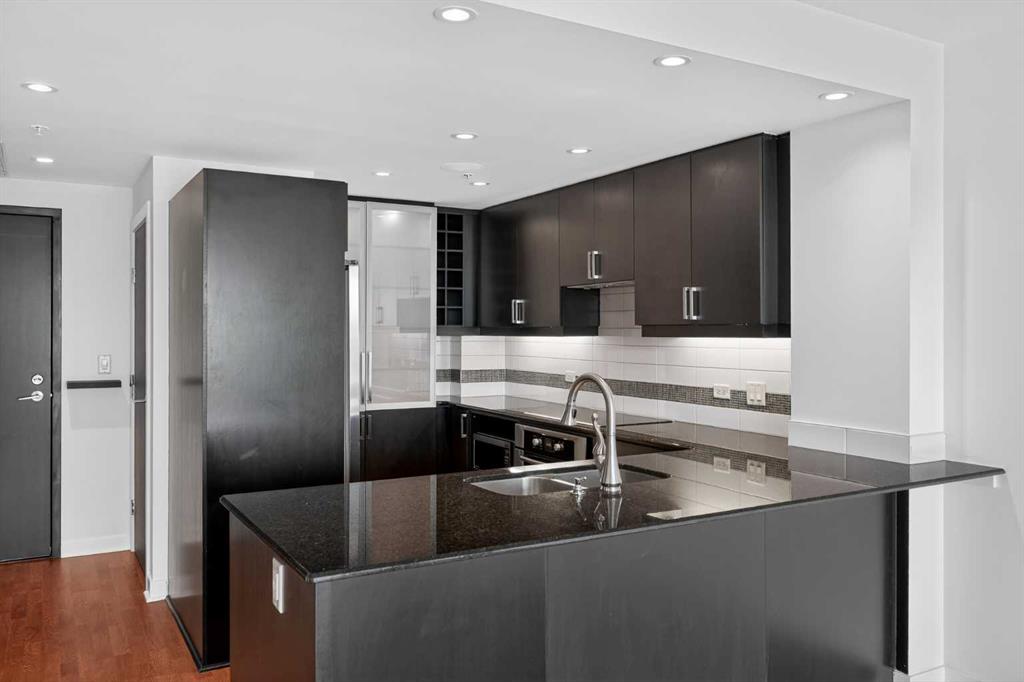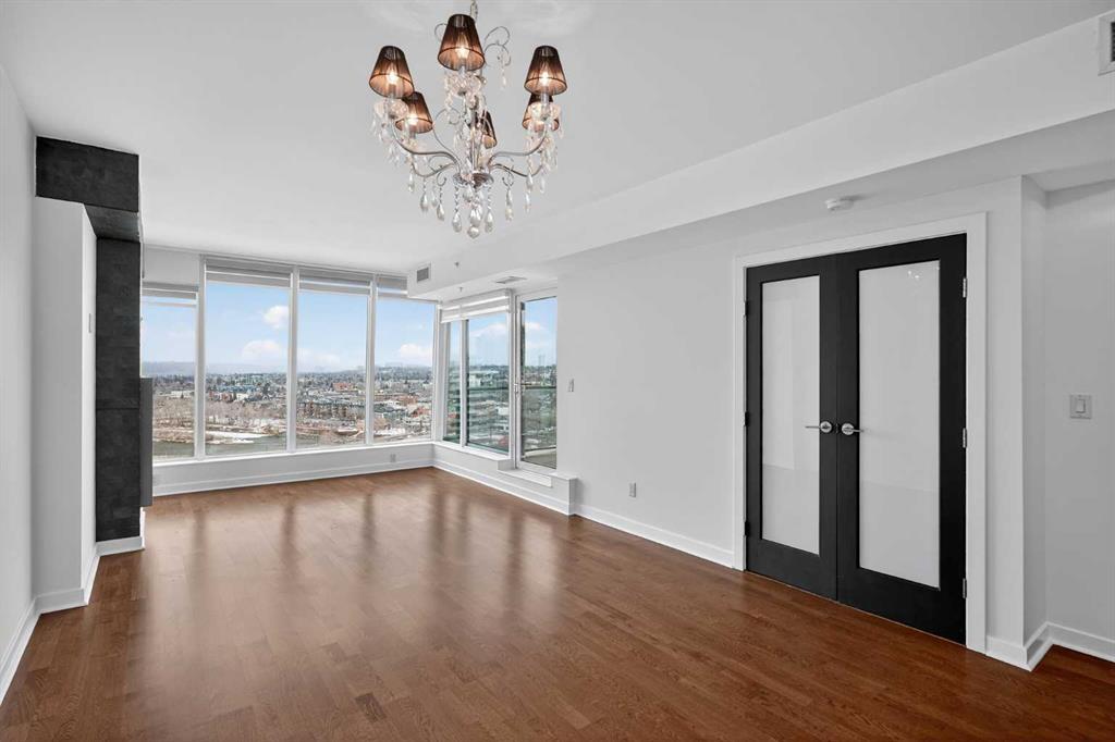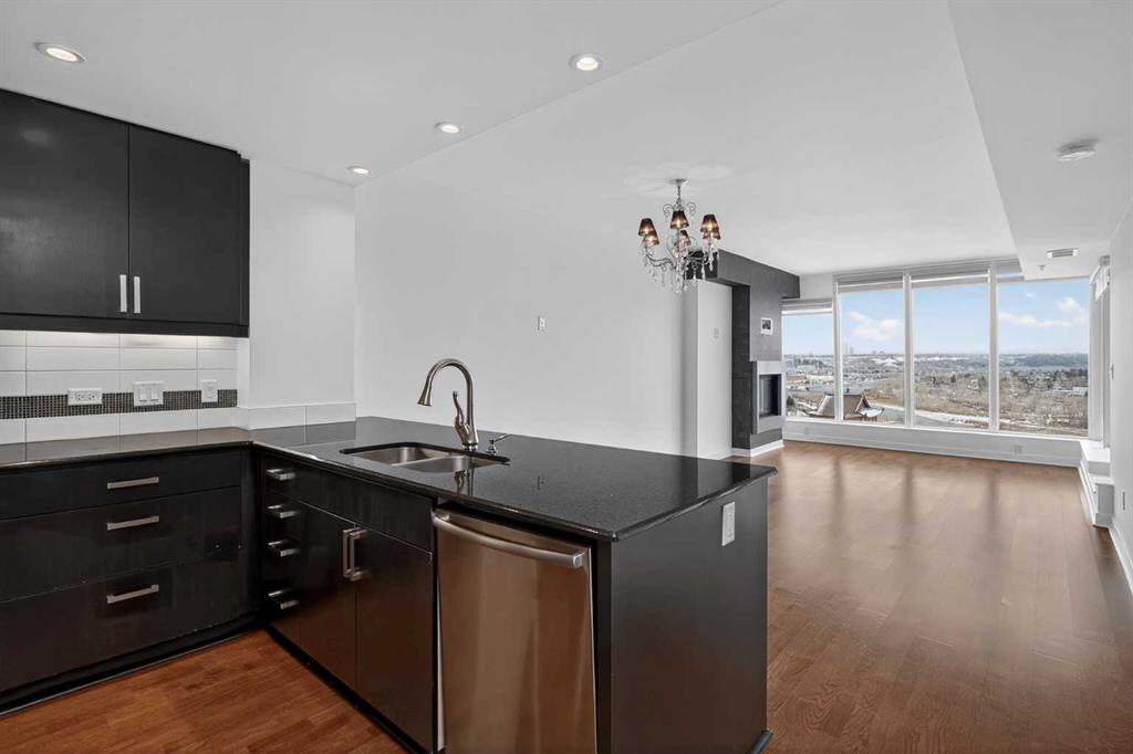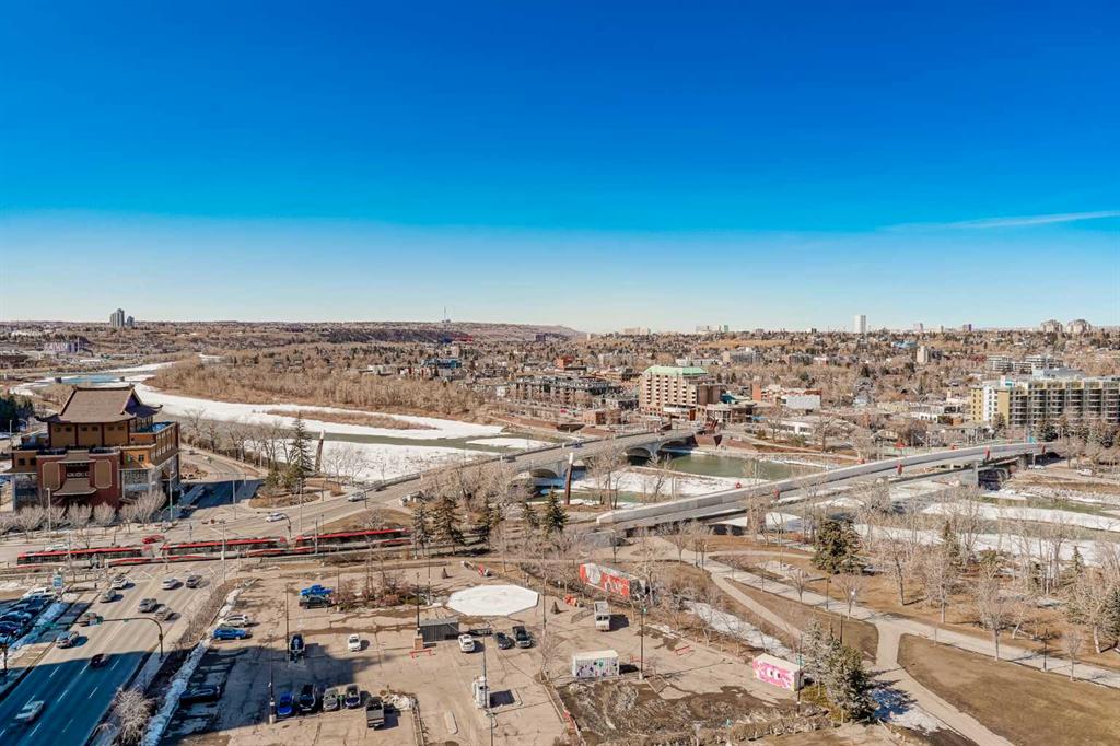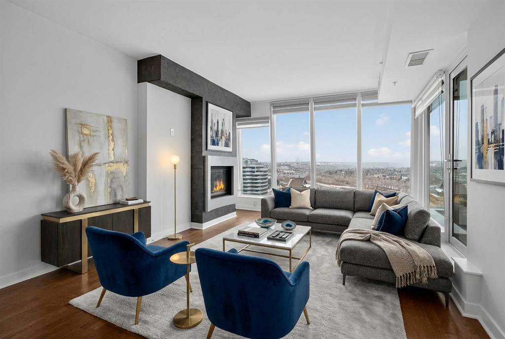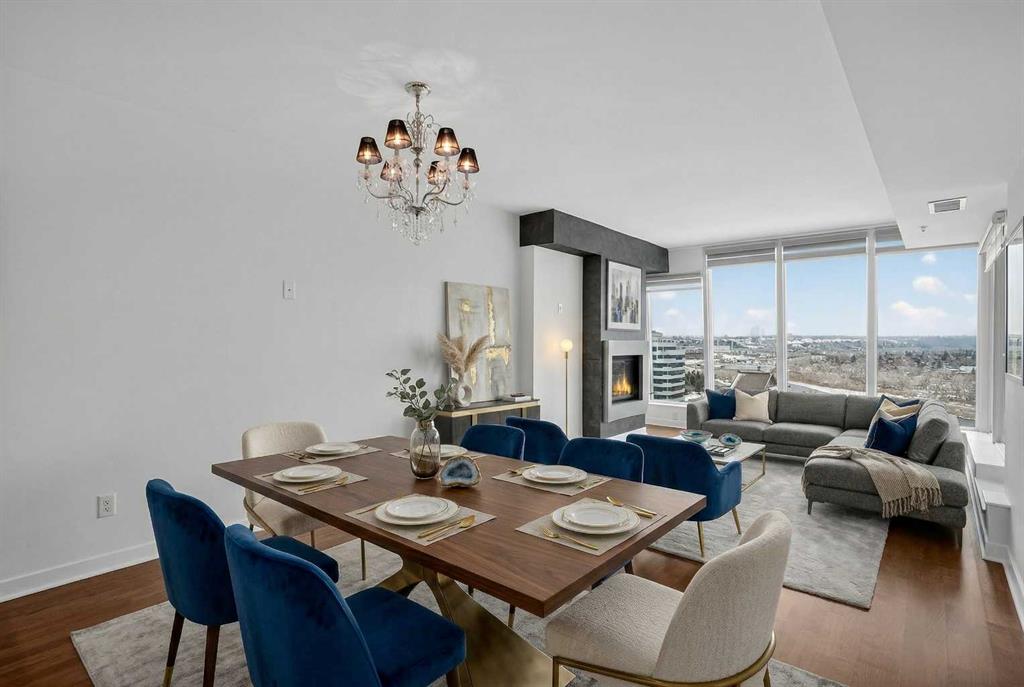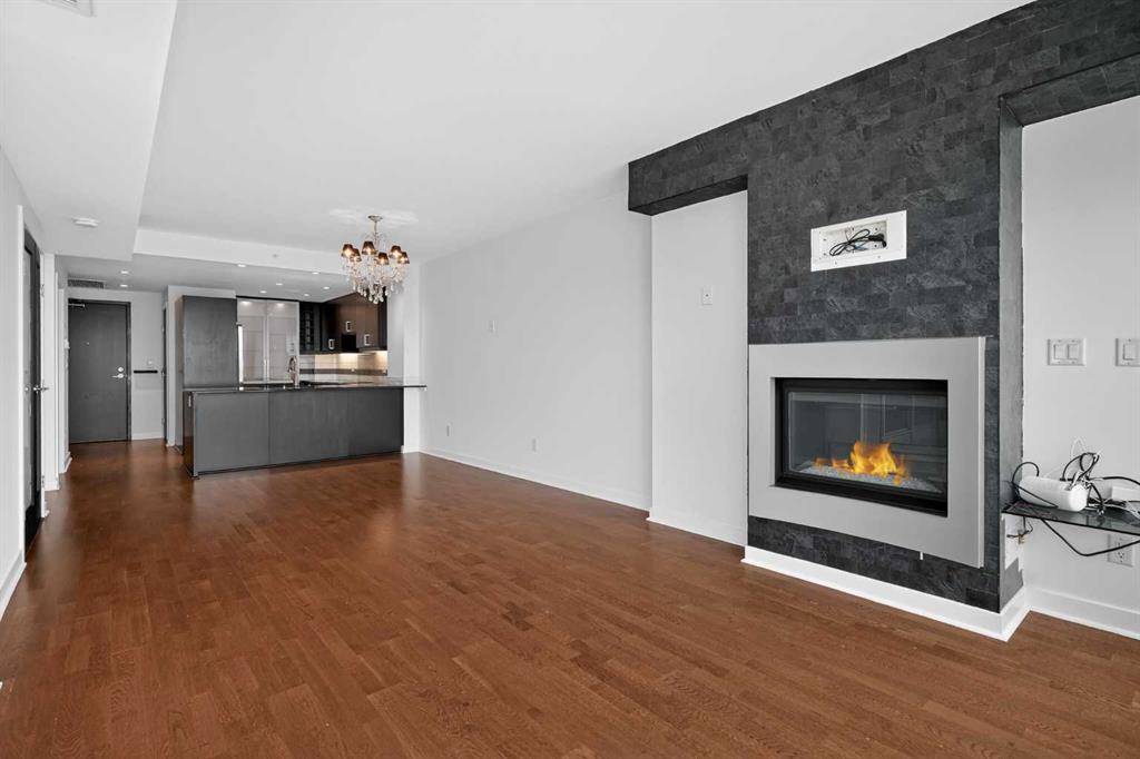 Welcome to Solaire, where elevated design meets an unbeatable Eau Claire lifestyle. Perched on the 16th floor, this beautifully upgraded 1 bedroom, 1 bathroom residence offers a refined, boutique luxury feel the moment you step inside. Floor to ceiling WINDOWS flood the space with natural light, creating a bright and open atmosphere that feels both modern and inviting, while showcasing uninterrupted west facing views. The thoughtfully designed layout seamlessly connects the kitchen, dining, and living areas, perfect for entertaining guests or enjoying a quiet night in. The kitchen is finished with high end cabinetry, sleek surfaces, and premium Bosch appliances, delivering both performance and a clean, sophisticated aesthetic. The living area is anchored by a cozy GAS FIREPLACE, adding warmth and ambiance, making it the perfect place to unwind while taking in the incredible views. The bedroom is a true retreat, featuring elegant glass French doors that enhance the open feel while still offering privacy, along with a walk through closet that leads into a well appointed full bathroom. Every detail has been carefully considered to maximize both comfort and flow. What truly sets this home apart are the west facing views, offering breathtaking sunsets over the MOUNTAINS and the BOW RIVER, a rare combination that brings a sense of calm and escape right into your everyday life. This unit also includes UNDERGROUND TITLED PARKING, adding everyday convenience and long term value in a premier downtown location. Step outside and you’re immediately connected to everything that makes Eau Claire one of Calgary’s most desirable communities, from the Bow River pathways and green spaces to local cafés, boutique shops, and some of the city’s best restaurants, all just moments from your front door. Whether you’re a professional looking for a polished downtown residence, an investor seeking a premium rental in a high demand location, or someone who simply values lifestyle and convenience, this is a rare opportunity to own a standout unit in one of the city’s most sought after buildings. Opportunities like this, with this level of finish, view, and location, rarely come to market at this price point.