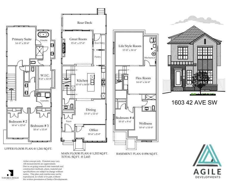 Stunning new build by experienced inner-city builder Agile Developments! Perfectly positioned on a sunny, south backing oversized 30′ x 125′ corner lot in the heart of Altadore. A timeless, warm brick exterior creates exceptional curb appeal, while the corner orientation allows for additional east-facing windows that flood the home with beautiful natural light throughout the day. Offering over 3,300 sq ft of thoughtfully curated living space, this home showcases outstanding quality, craftsmanship, & a highly functional floor plan. The main level features 10-foot ceilings & wide-plank white oak hardwood floors, creating an airy & inviting atmosphere. A stylish front office is ideal for working from home & is accented by custom wrought-iron detailing that adds a contemporary edge. The dining area, complete with custom millwork & built-ins, flows seamlessly into the chef’s kitchen, outfitted with Miele appliances, including a 6-burner dual-fuel range, Miele refrigerator, Miele Speed Oven, & Bosch dishwasher. A well-designed walk-in pantry with extensive custom cabinetry includes a beverage fridge & ample storage for small appliances. The pantry connects directly to a generous mudroom with built-ins, helping keep busy families organized. The expansive living room is anchored by a striking custom gas fireplace & large sliding doors that open to the sun-filled south backyard & spacious deck, ideal for indoor/outdoor entertaining. The upper level enjoys 9-foot ceilings throughout. The primary retreat overlooks the backyard & features a large walk-in closet with furniture-grade cabinetry & custom built-ins. The luxurious 6pc ensuite includes a steam shower, deep soaker tub, dual vanity, private water closet, heated floors, & premium plumbing fixtures by The Royal Flush. Two additional bedrooms are bright & well-proportioned, while the thoughtfully designed main bathroom is designed to easily facilitate busy mornings. A convenient upper-level laundry room includes a sink, storage, & hanging space. The fully developed lower level offers a versatile media room, games area, fitness room, 4th bedroom, & full bathroom. Notably, there are no bulkheads, as ductwork is routed through open joists enhancing ceiling height & overall openness. In-floor radiant heating & high-performance triple-pane windows enhance energy efficiency, comfort, & sound attenuation ensuring year-round comfort. Ideally located half a block from Altadore Elementary School & Rundle Academy, & just one block from River Park, this home sits on a quiet street while remaining walking distance to the shops, cafes, & restaurants of Marda Loop. A rare opportunity for professionals & young families seeking refined inner-city living in one of Calgary’s most vibrant communities. Expected completion is May 2026. Contact today to discuss available customization options & secure this exceptional home!