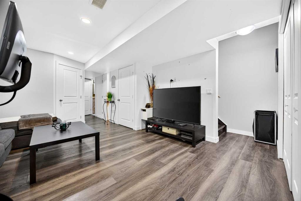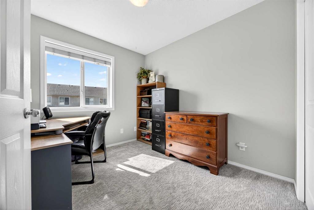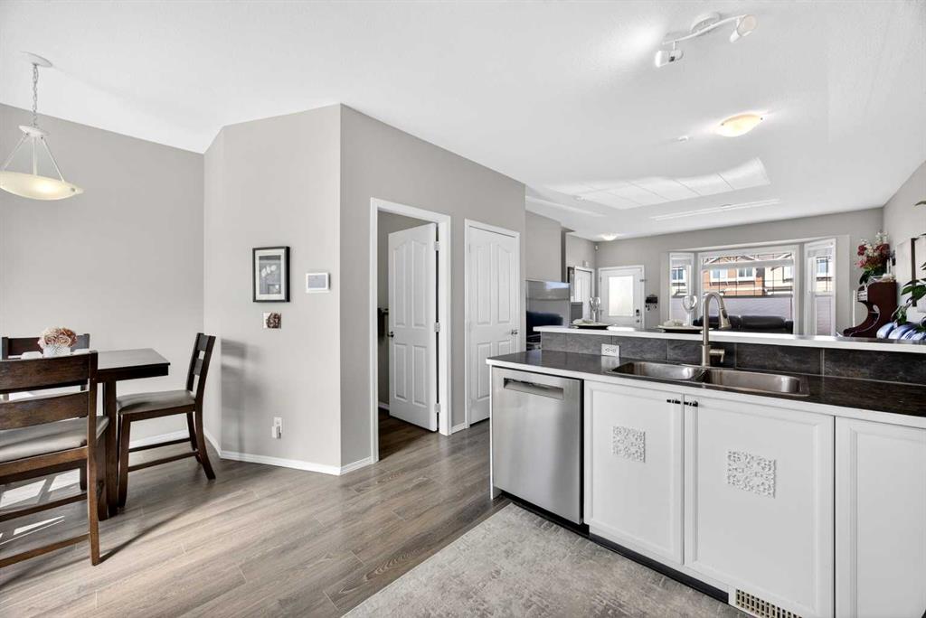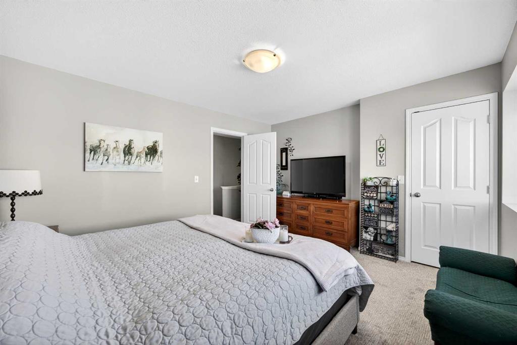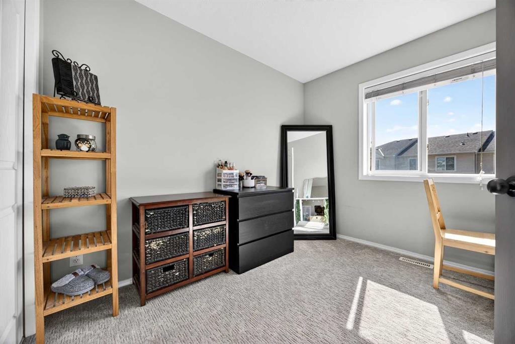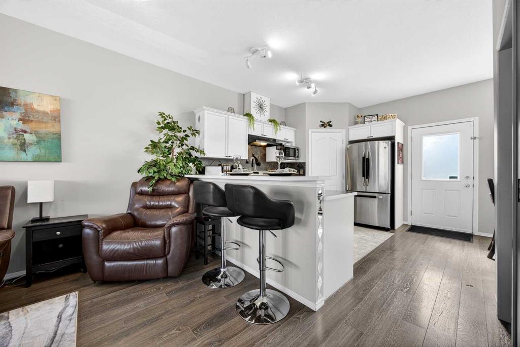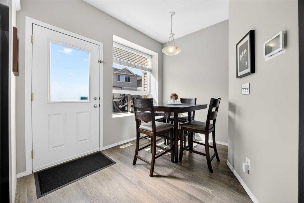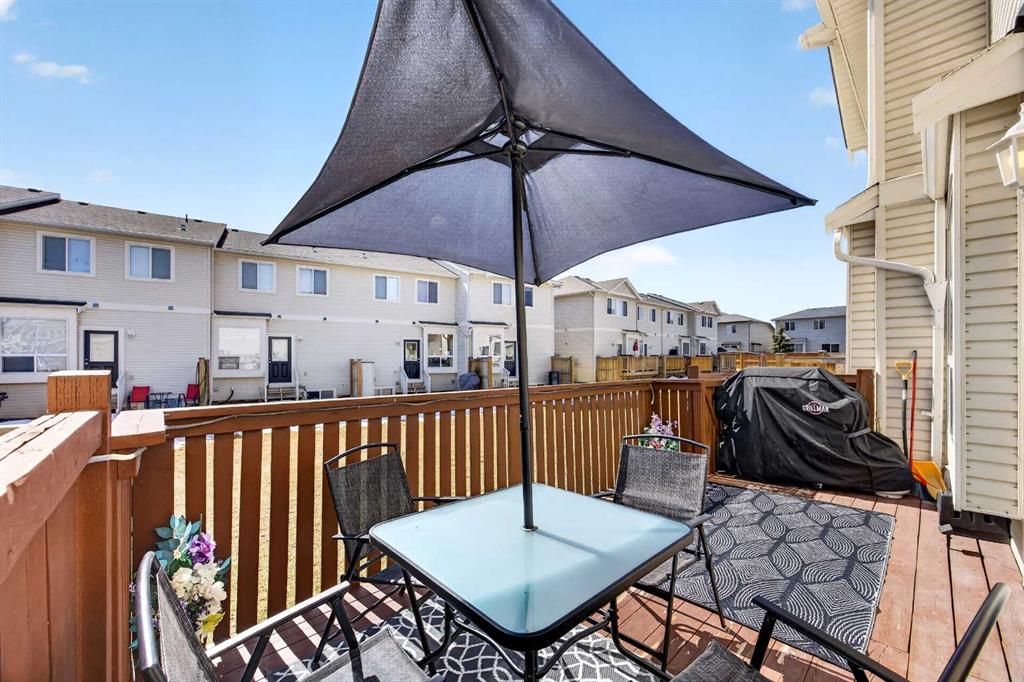Start each day in a home that balances comfort, space and a peaceful setting backing directly onto a green belt in the heart of Luxstone. Thoughtful design and move-in ready condition come together to create a layout that supports both daily routines and relaxed living. Step inside to an open-concept main level where durable laminate flooring carries throughout while natural light moves easily from front to back. Gather in the living area where a charming bay window with built-in bench seating creates a cozy spot for reading or unwinding at the end of the day. Continue into the kitchen where stainless-steel appliances, a pantry for added storage and a peninsula island with breakfast bar seating keep everything within reach for both quick meals and casual conversation. Share meals in the adjacent dining space that connects seamlessly to the outdoors, making it easy to transition from indoor dinners to summer evenings on the deck. Head upstairs to a well-balanced upper level that includes 3 bedrooms, including a spacious primary retreat with a walk-in closet designed to keep everything organized and accessible. Two additional bedrooms and a 4-piece bathroom complete this level, offering flexibility for family, guests or a home office. Make your way downstairs to a fully finished basement where a large recreation area sets the stage for movie nights, games or quiet downtime. A 4th bedroom and 3-piece bathroom add versatility for visitors or extended family living. Step outside to a sunny south-facing backyard where an expansive deck invites barbeques, outdoor dining and time spent enjoying the open green space beyond. The greenbelt creates a sense of privacy while still maintaining connection to the surrounding community. Enjoy the convenience of 2 assigned parking stalls directly outside the home along with nearby visitor parking for guests. Located in the established community of Luxstone, this home places schools, shopping, dining, pathways and everyday amenities within easy reach while offering quick access to Calgary, CrossIron Mills, Costco and the airport for effortless commuting.