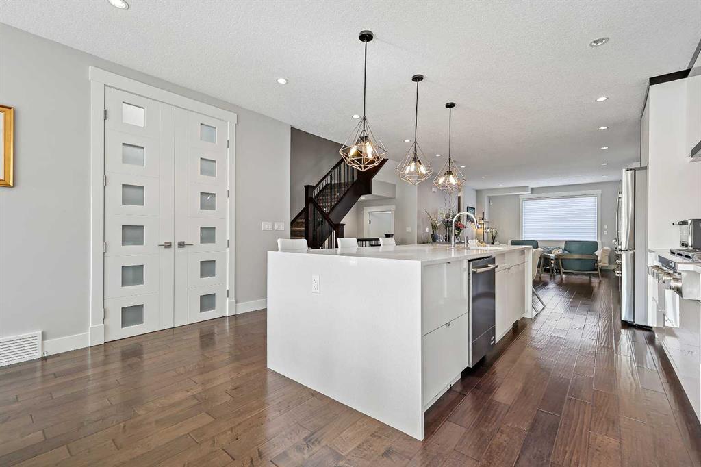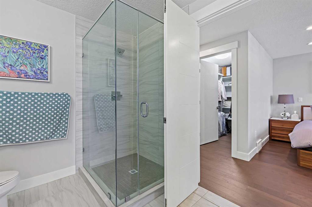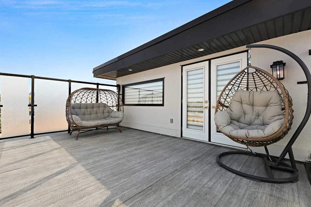 A rare opportunity in Montgomery — semi-detached home stands out with four fully finished levels, nearly 4000 sqft of developed living space, a private balcony, and a long list of premium upgrades. Steps from the Bow River pathway, Shouldice Park, Market Mall, and minutes to both Foothills and Children’s Hospital, this location is as connected as it is private. Inside, the home is finished with luxury Canadian maple hardwood on all upper levels, layered lighting (including updated LED fixtures), and fresh paint throughout. The main floor showcases a sleek chef’s kitchen with JennAir stainless steel appliances, including a gas cooktop, built-in oven, chimney hood fan, and integrated microwave. A full walk-in pantry, with double doors, and extended island with waterfall quartz complete the space. The spacious living area offers floor-to-ceiling windows and a gas fireplace framed by custom tile. The second level hosts dual primary suites, each with walk-in closets and five-piece ensuites featuring full tile, deep tubs, and separate glass showers. A bonus room with custom built-in shelving and a full laundry room with storage complete this level. On the top floor, a third bedroom, with its own 5 pc ensuite, walk in closet, and dedicated office that’s open to a private rooftop balcony with unobstructed views. The fully developed basement includes a fourth bedroom, full bath, in-floor heating, large rec room with wet bar and beverage fridge, and extra storage. Additional upgrades include: newer high-capacity heat pump system, Kinetico water softener, dechlorinator, purified drinking tap, security cameras (x4), dual doorbell cams, Hunter Douglas window coverings and a freshly painted interior. Detached garage and landscaped yard, with a large deck and beautifully tended garden complete the package.