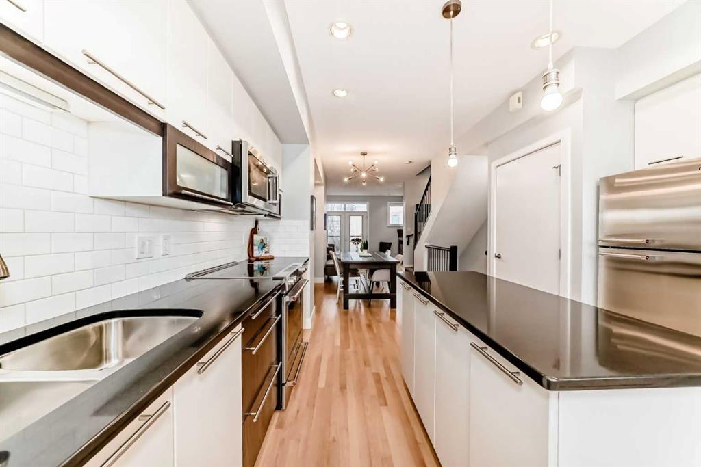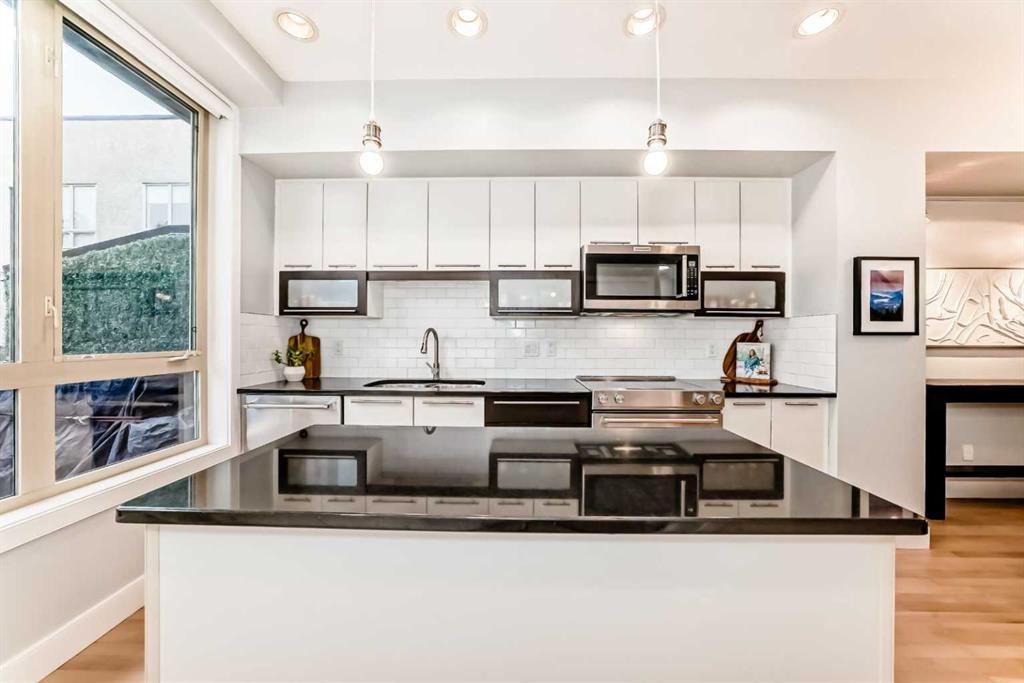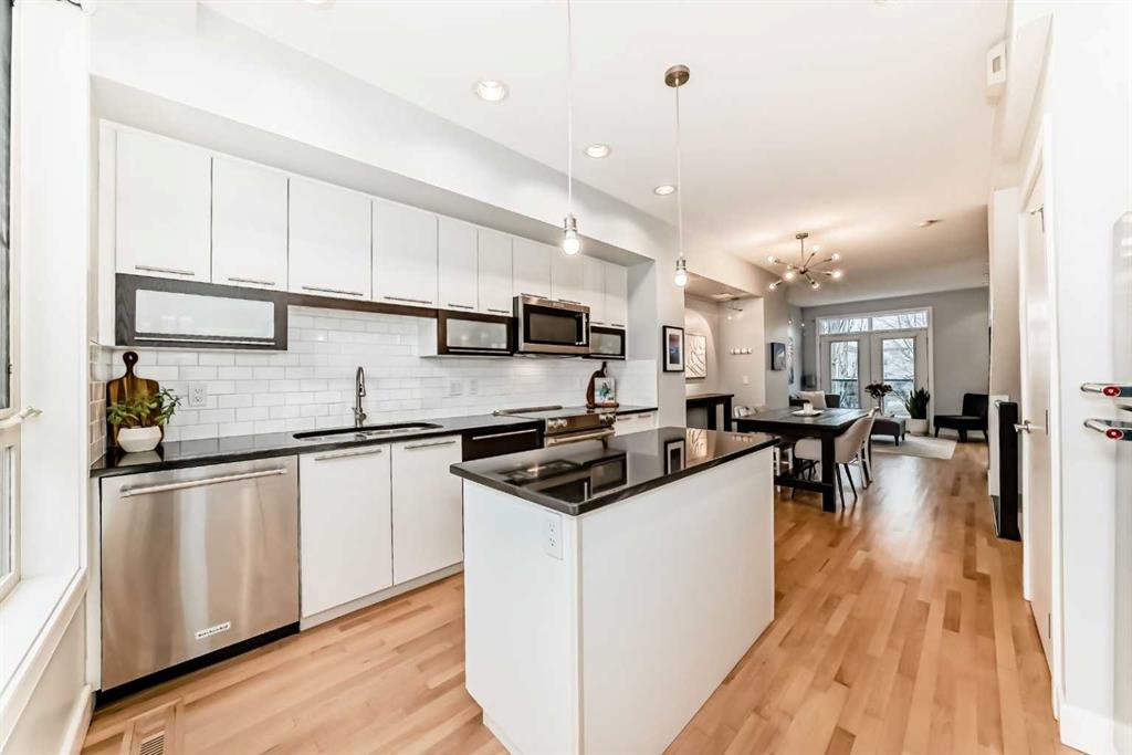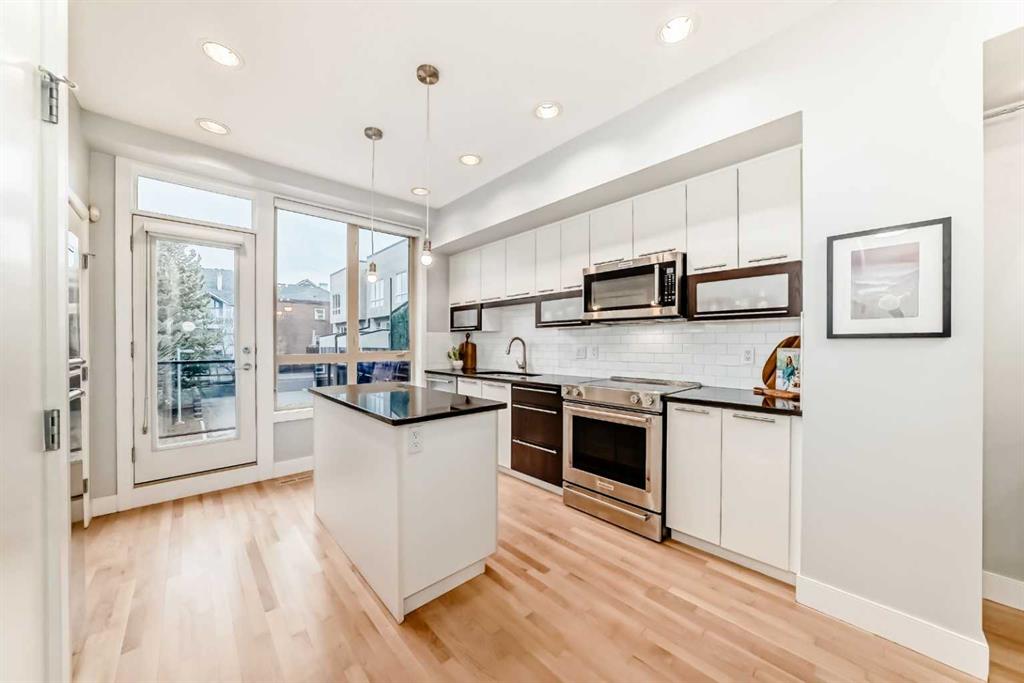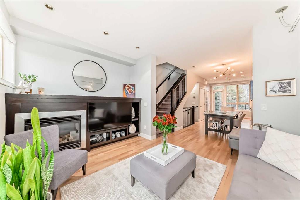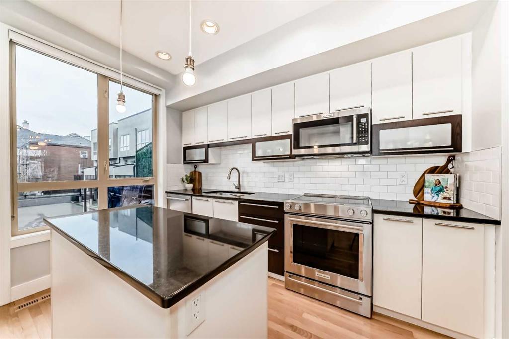 Click brochure link for more details** The Galleries of Altadore – One of the most sought-after townhome communities in the heart of Altadore/Marda Loop. Rarely do homes in this exclusive development come available on the resale market. This beautifully renovated, bright, and spacious 3-level townhome offers 2 bedrooms, 2 bathrooms, and a den. With both north and south exposure plus oversized windows throughout, the home is flooded with natural light. The main living level features dramatic 10-foot ceilings that enhance the open, airy feel. The show-stopping kitchen is a true highlight, featuring a granite island, premium stainless steel appliances, and sleek full-height modern cabinetry. It opens seamlessly to a private patio complete with a natural gas BBQ hook-up. The living room boasts a custom-built millwork entertainment unit and a cozy natural gas fireplace. Newly refinished walnut hardwood floors (2025) run throughout the main living areas, adding warmth and elegance. Off the main level, the custom-finished attached garage leads directly into a versatile den featuring porcelain tile flooring and comfortable in-floor heating. The Galleries is well-managed with a healthy reserve fund and a proactive condo board committed to keeping monthly fees reasonable. Ideally located, you’re just minutes from downtown Calgary, vibrant Marda Loop shopping and dining, River Park dog park, Sandy Beach, extensive pathways, and all the amenities this coveted community has to offer.