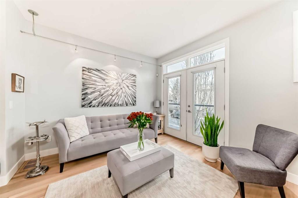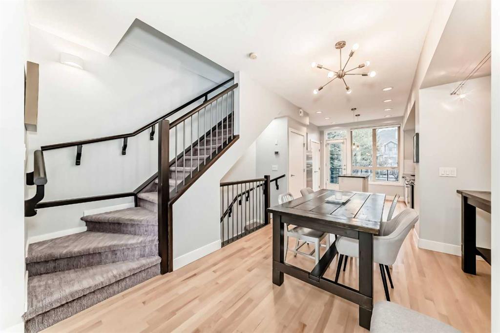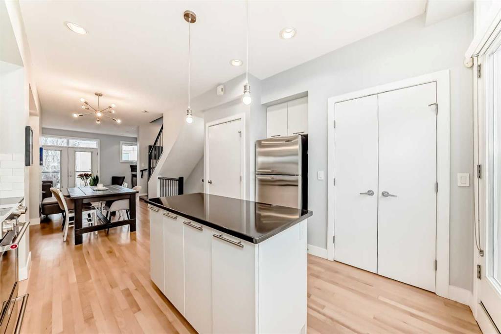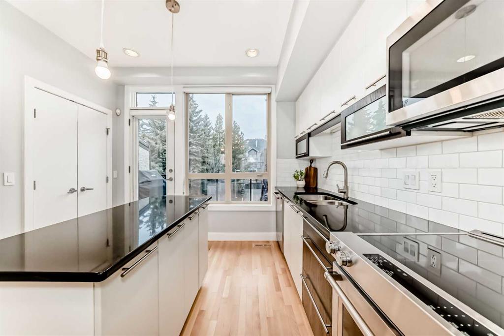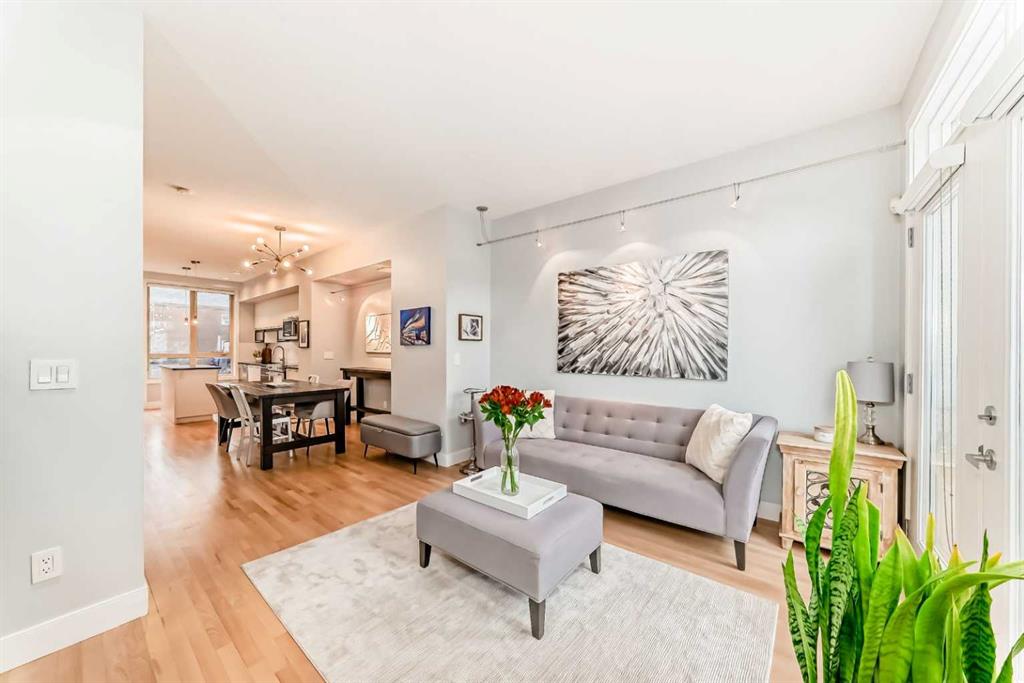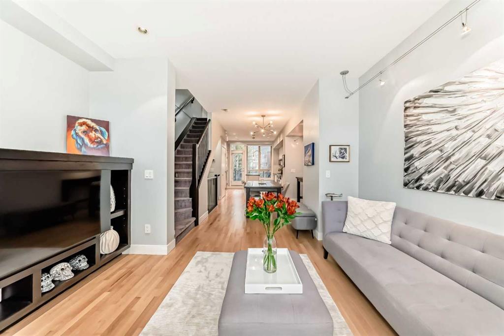 Click brochure link for more details** The Galleries of Altadore – One of the most sought-after townhome communities in the heart of Altadore/Marda Loop. Rarely do homes in this exclusive development come available on the resale market. This beautifully renovated, bright, and spacious 3-level townhome offers 2 bedrooms, 2 bathrooms, and a den. With both north and south exposure plus oversized windows throughout, the home is flooded with natural light. The main living level features dramatic 10-foot ceilings that enhance the open, airy feel. The show-stopping kitchen is a true highlight, featuring a granite island, premium stainless steel appliances, and sleek full-height modern cabinetry. It opens seamlessly to a private patio complete with a natural gas BBQ hook-up. The living room boasts a custom-built millwork entertainment unit and a cozy natural gas fireplace. Newly refinished walnut hardwood floors (2025) run throughout the main living areas, adding warmth and elegance. Off the main level, the custom-finished attached garage leads directly into a versatile den featuring porcelain tile flooring and comfortable in-floor heating. The Galleries is well-managed with a healthy reserve fund and a proactive condo board committed to keeping monthly fees reasonable. Ideally located, you’re just minutes from downtown Calgary, vibrant Marda Loop shopping and dining, River Park dog park, Sandy Beach, extensive pathways, and all the amenities this coveted community has to offer.